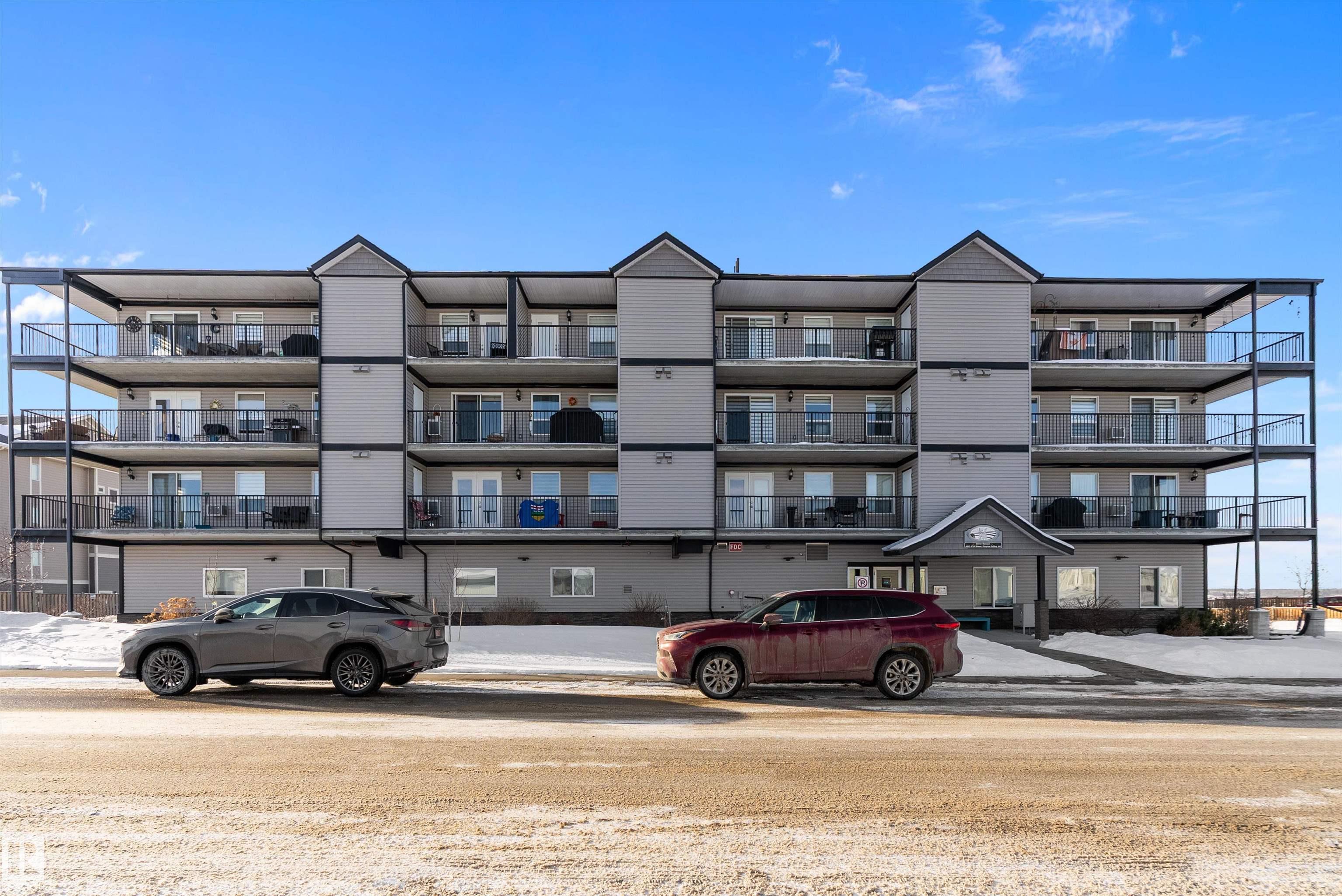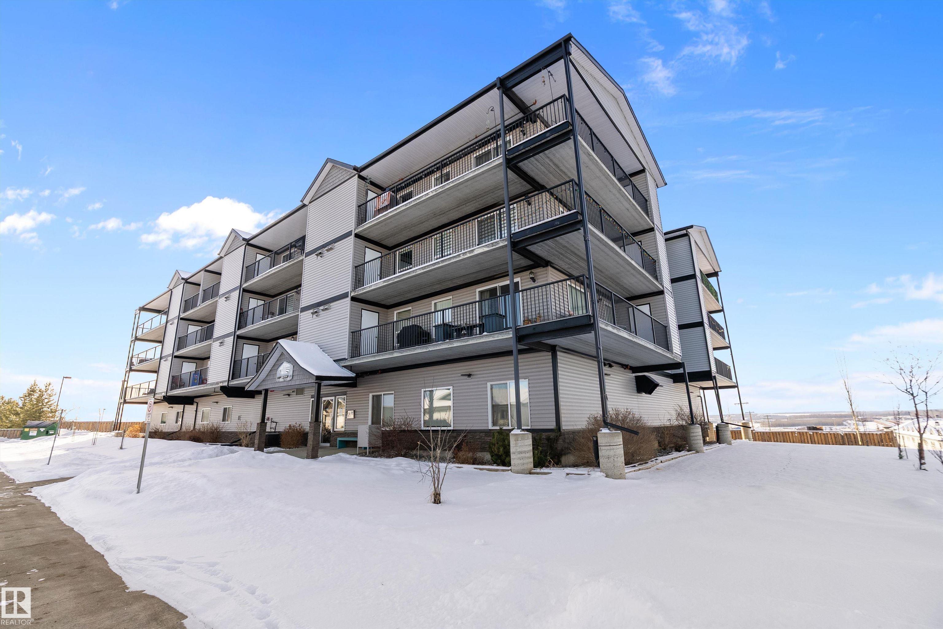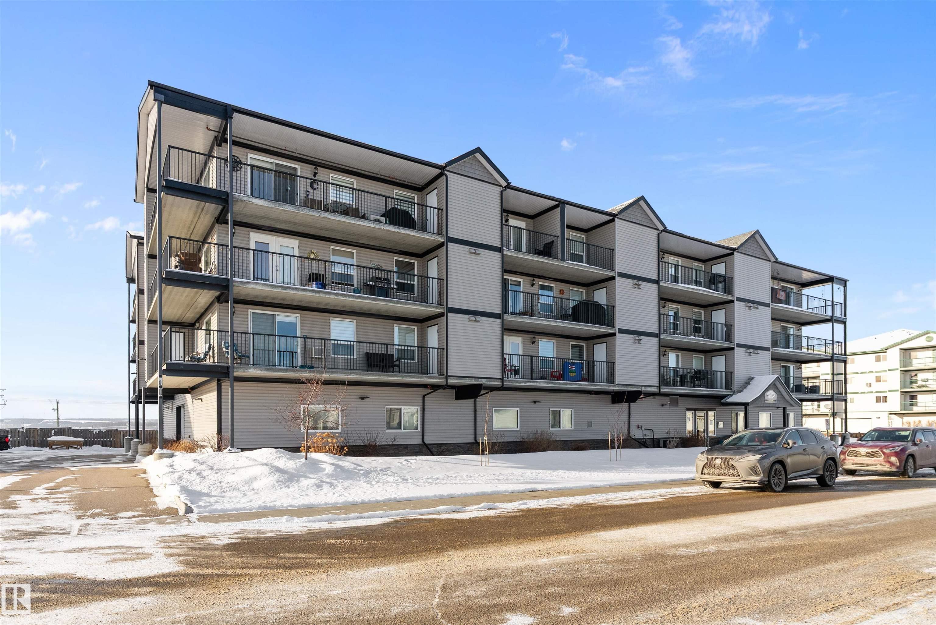 This unique two-bedroom, two-bathroom floor plan offers an airy, open layout designed for comfortable everyday living. Built for durability and quiet enjoyment, the building features 8-inch concrete hollow-core floors and steel stud construction. Inside, you'll find modern cabinetry, a chef's island, vinyl plank flooring, generous closet space, and a primary ensuite with a four-foot walk-in shower. Enjoy west-facing outdoor living on the finished vinyl deck balcony, complete with a gas BBQ outlet and dedicated storage shed. The unit also includes an under-building heated parking stall and benefits from some of the most competitive condo fees in the area, covering nearly everything except power. Bright, solid, and well-appointed, this home offers exceptional value for buyers seeking quality construction and low-maintenance living. Impeccably well cared for and ready to be called "Home" .