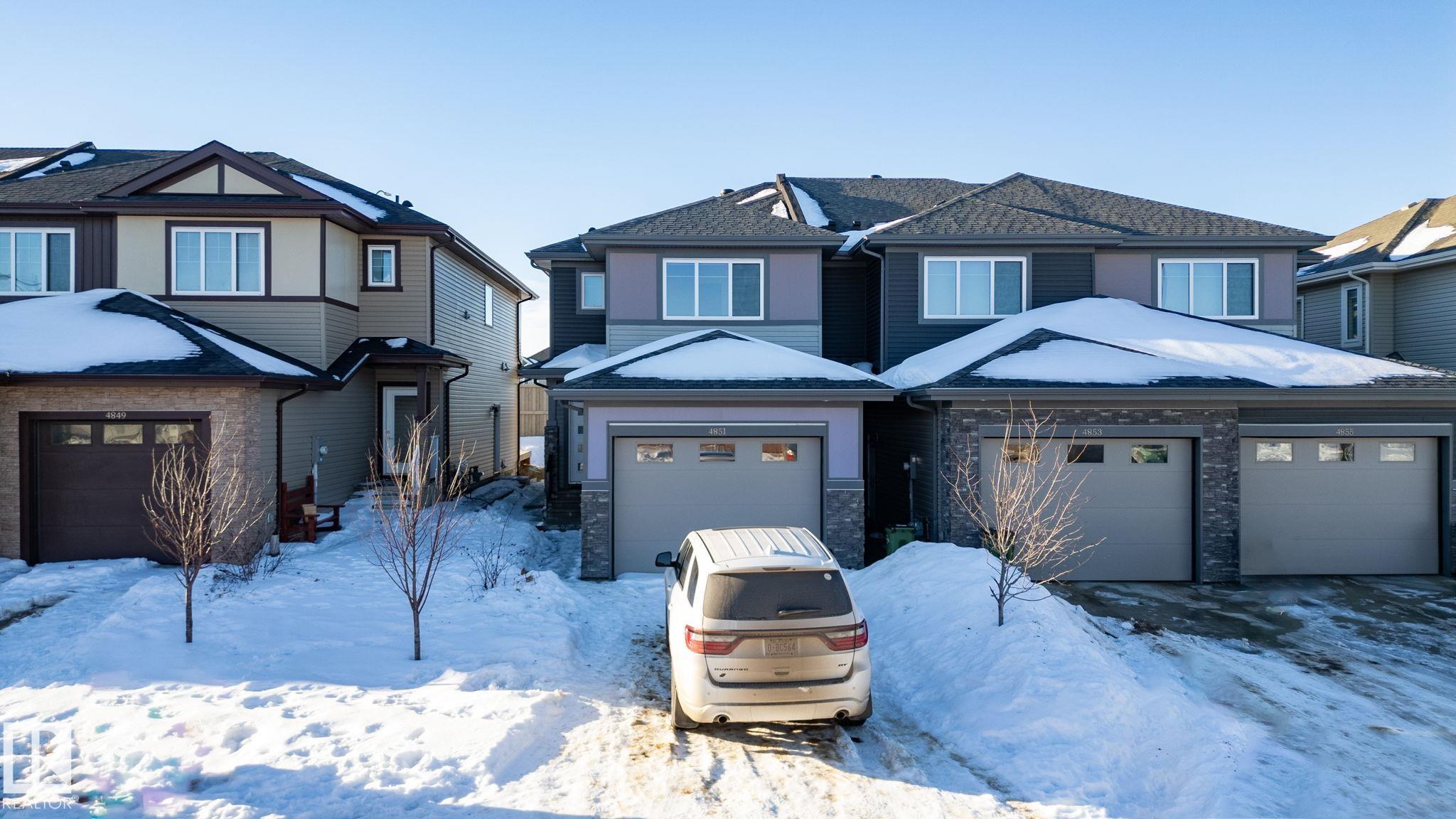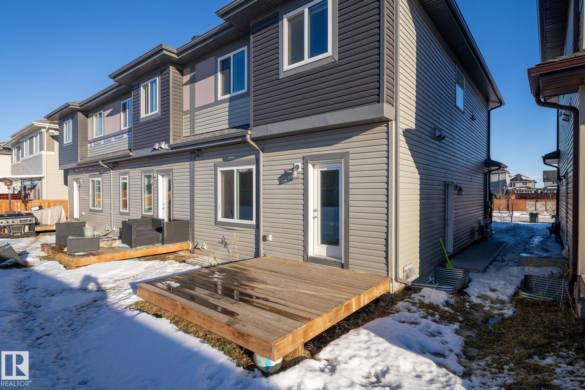 No condo fees!! Welcome to this legally suited townhome in the sought-after community of Allard, backing with no rear neighbours for added privacy. This home is ideal for families and investors, offering access to community skate rinks, walking trails, and close proximity to shopping, amenities, and major highways. The local school is just a few short blocks away, making it a great option for families. Inside, you'll appreciate the modern finishes and stainless steel appliances throughout. The functional layout includes an upstairs den/family room, a spacious primary bedroom that feels like a true retreat and two more additional bedrooms. The one bedroom legal basement suite provides an excellent mortgage helper or investment opportunity, helping offset monthly expenses while adding long-term value. A well-designed home in a growing community with strong lifestyle and income potential.
