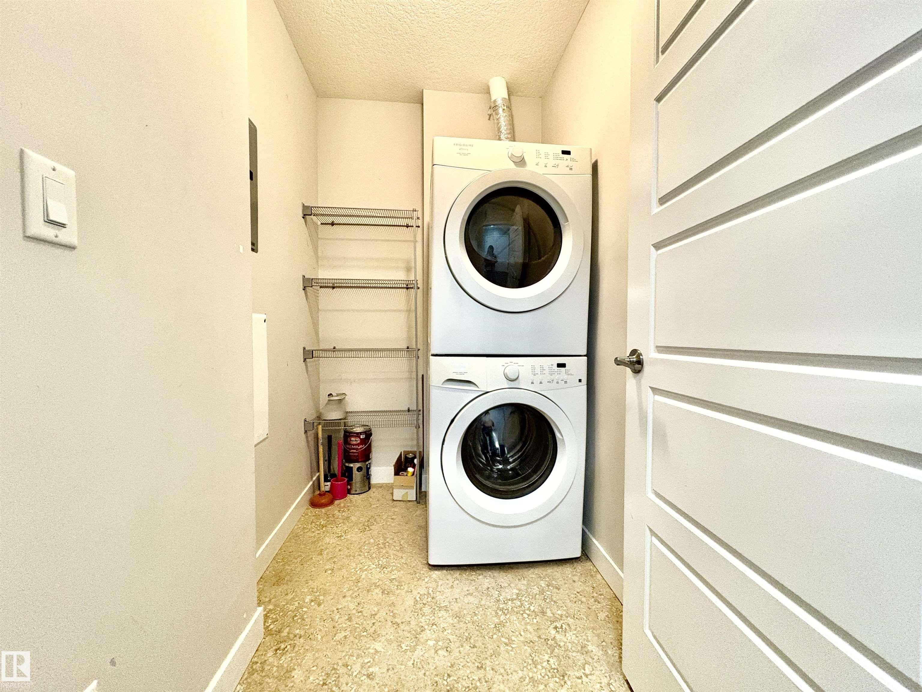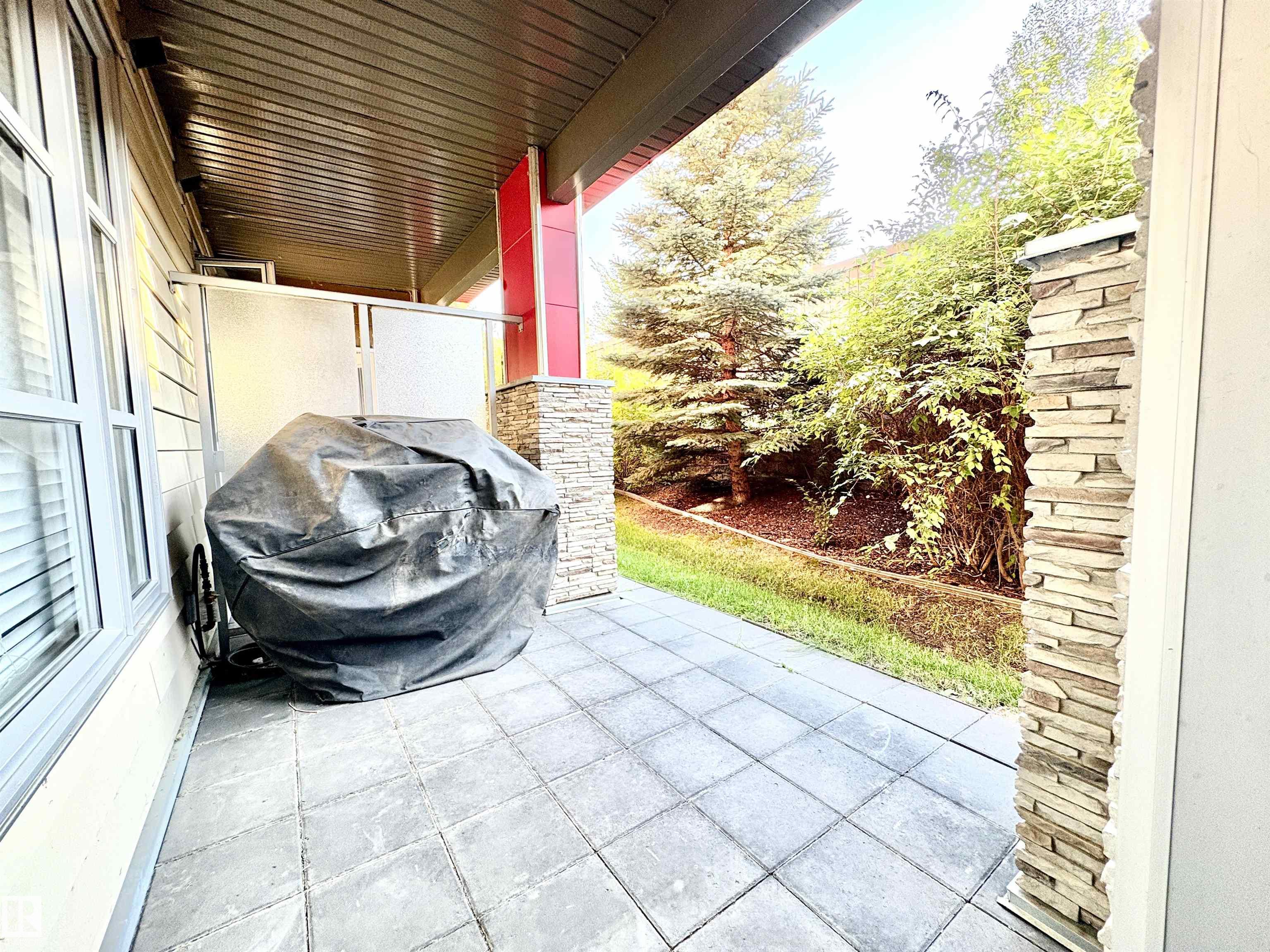 Welcome to The Ion in Ambleside, where trendy living meets unbeatable convenience with quick access to Anthony Henday, Whitemud, Downtown, and the airport. This former showhome features a spacious bedroom with large closet, versatile den/office, stylish peninsula kitchen with stainless steel appliances, and a bright living room with access to a private balcony and fenced green space--perfect for small pets. Complete with in-suite laundry, ample storage, and access to top-tier amenities including a fitness centre, media room, social/amenities room, guest suites, BBQ areas, and heated underground parking, all for low condo fees of just under $400 covering heat, water, sewer, and amenities, this home offers modern comfort in the upscale Ambleside community.