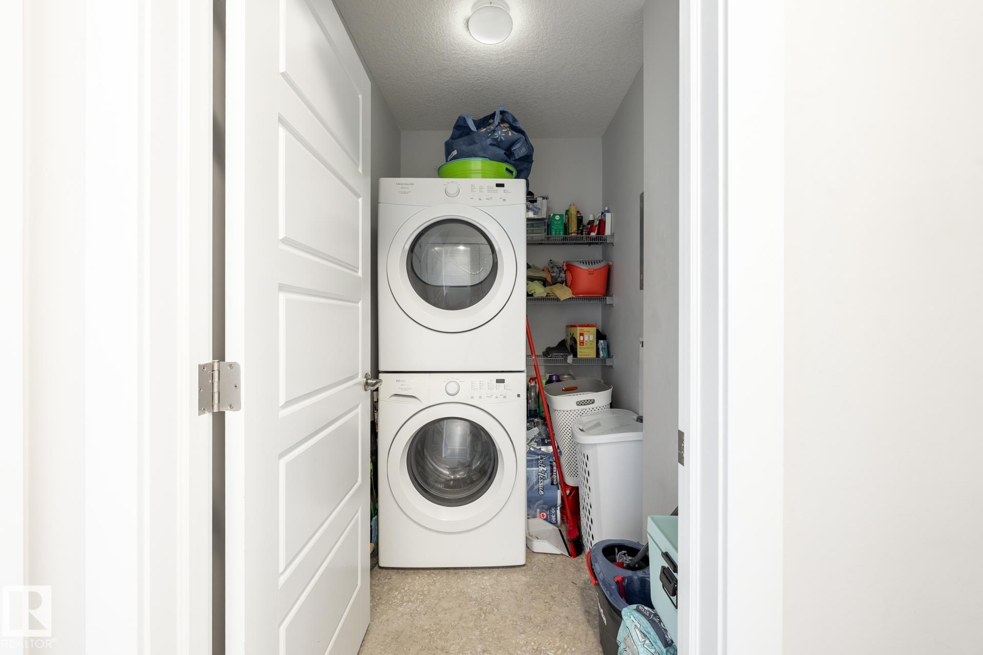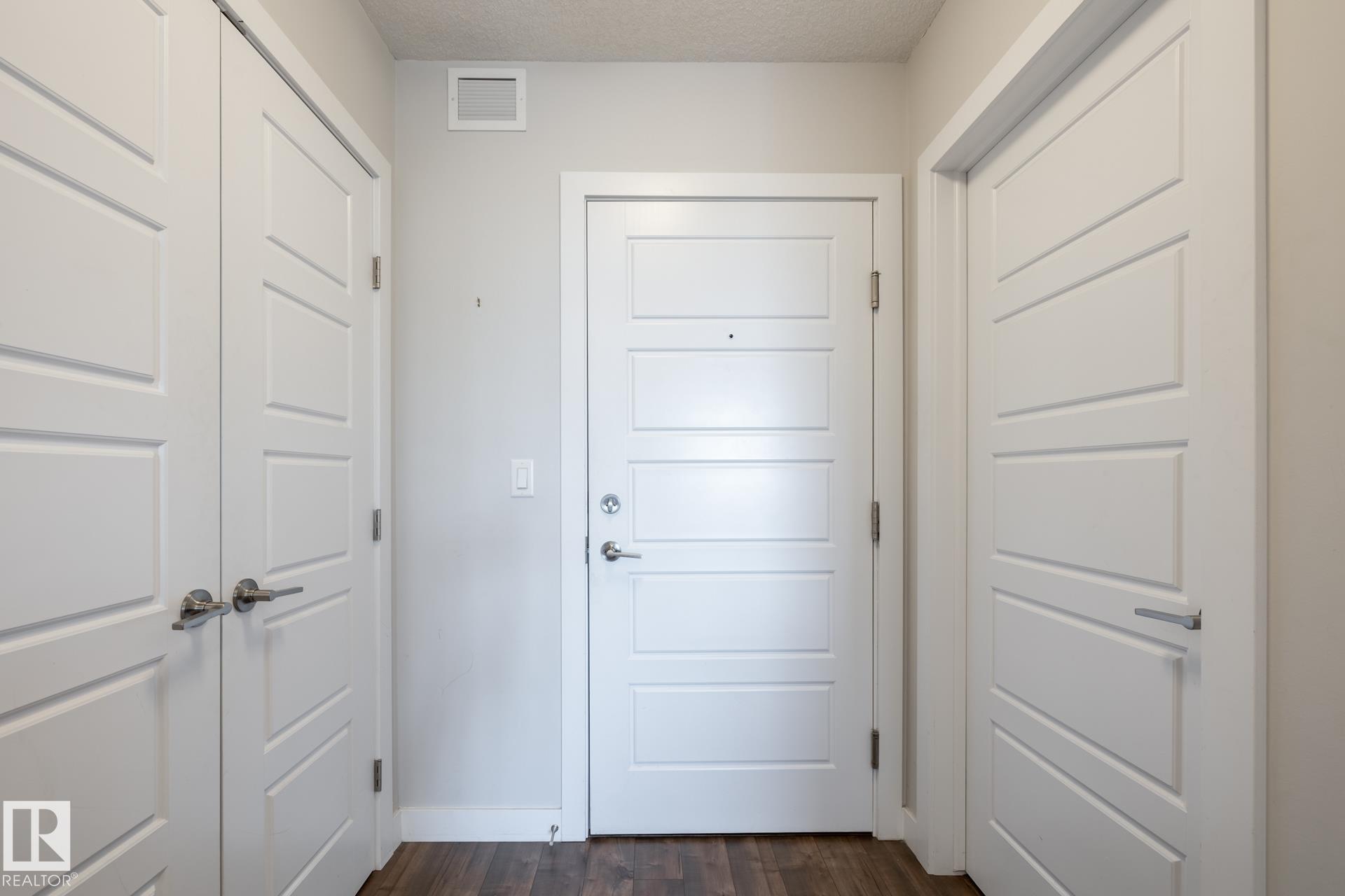 Welcome to life at The Ion in Ambleside, one of SW Edmonton's most loved communities, where you can enjoy trails and parks right outside your door along with endless shopping + dining at the Currents of Windermere. This recently updated 2nd-floor condo feels bright and inviting with 9-foot ceilings, engineered hardwood floors & a seamless open layout. The updated kitchen shines with white quartz counters, while the bathroom carries the same elevated finishes + a modern tile surround. Your east-facing patio offers leafy views + a perfect sense of privacy. The bedroom is spacious with a walk-in closet, the laundry room has extra storage, and the built-in desk is ideal for work-from-home days. With heated underground parking, a storage unit, and building amenities including a gym, social room, picnic gazebo, and BBQ gas line, this home truly offers the full package. Perfect for a first home, a stylish downsize, or as an investment property - currently rented at $1550 per month. An incredible opportunity!