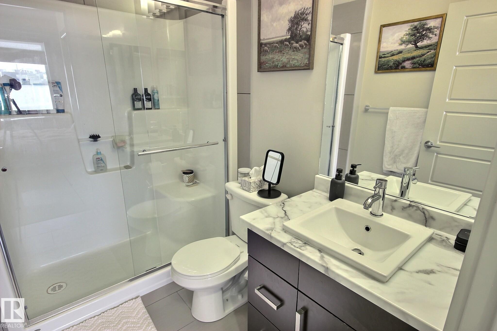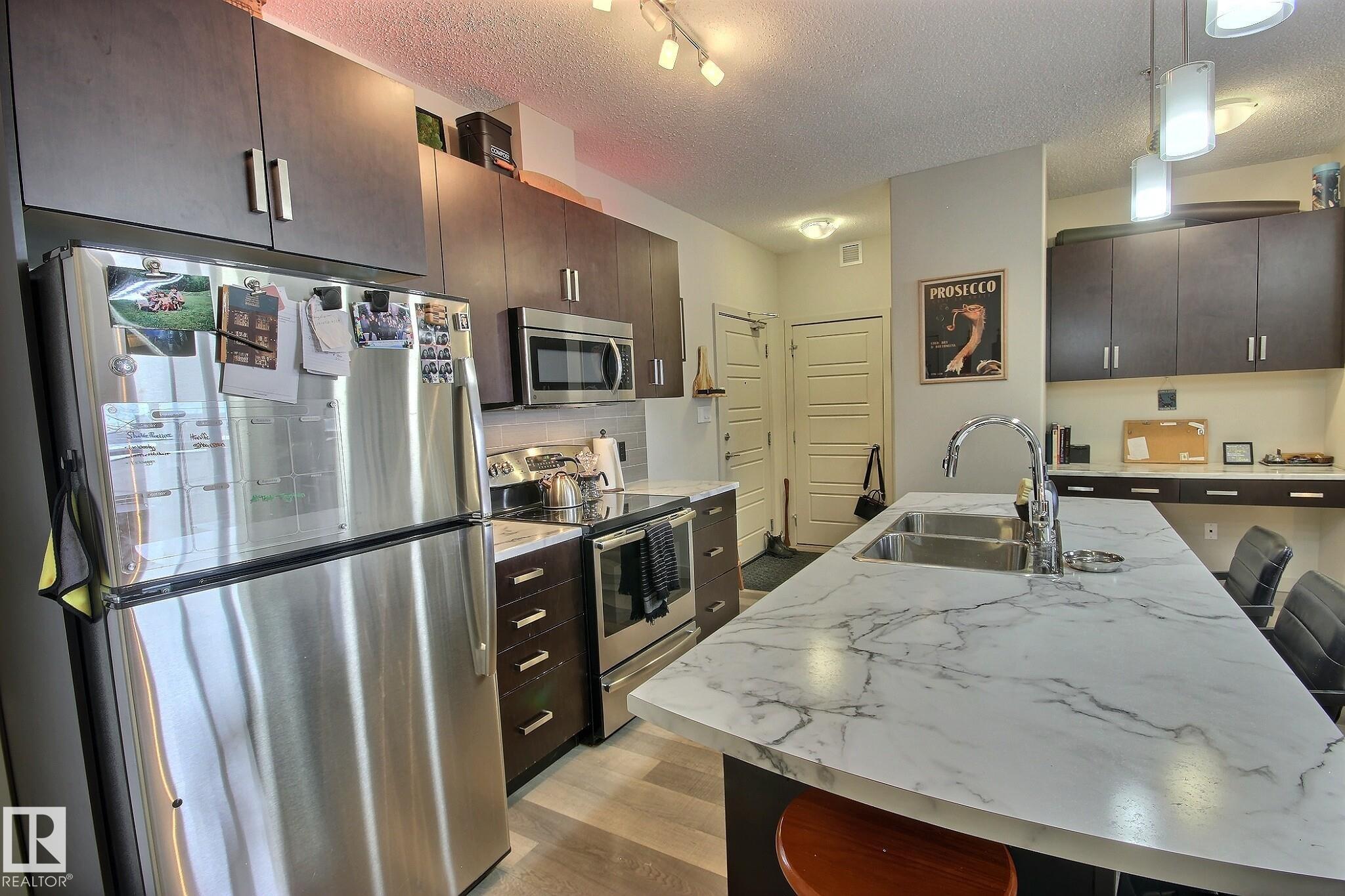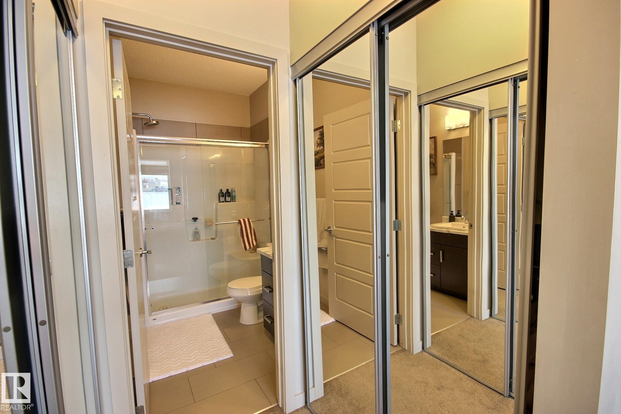 Double Master Suite with 2 titles parking stalls! This unit is the definition of convenience and flexibility. The location cannot be beat. Quick access to the Henday and Terwillegar, the safety and reputation of Ambleside/Windermere, then shopping/entertainment all within walking distance. The unit itself it very quiet situated on the main floor, beside the staircase (ie. no neighbor on that side) with exterior door access as well. Two parking stalls, one underground with storage locker and the other in front of your patio. Gorgeous open concept living space, high ceilings, loads of natural light, stainless appliances, office nook by the master bedroom and much more! In suite laundry with washer and dryer. Full ensuite's and walk through closet for BOTH BEDROOMS. Each closet has mirrored doors and ample storage space. Building amenities include a social room with kitchen, gym, and guest suite. Add this one to your favorites!