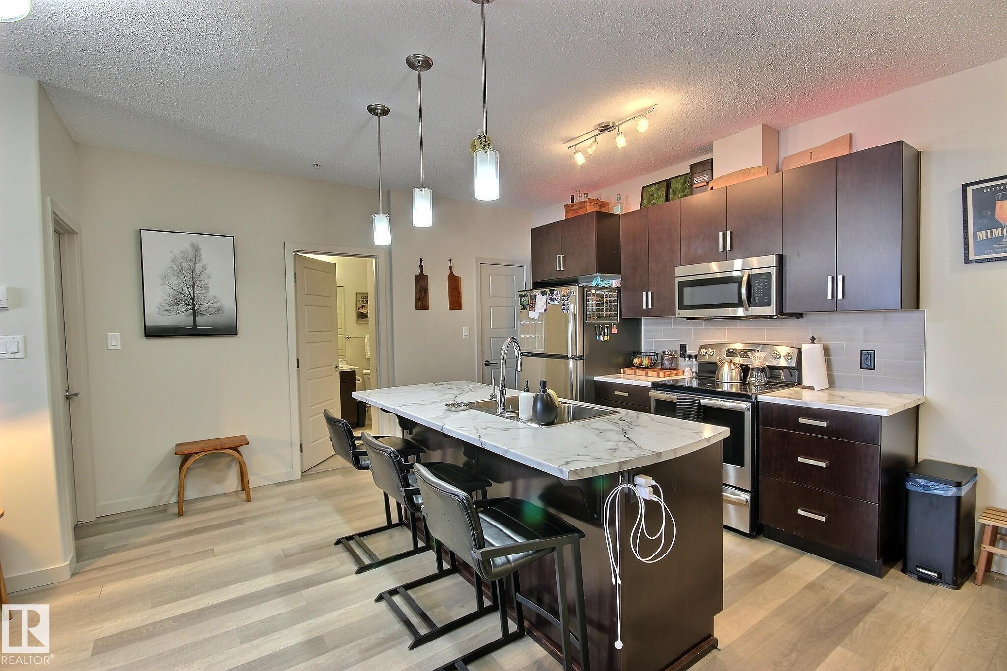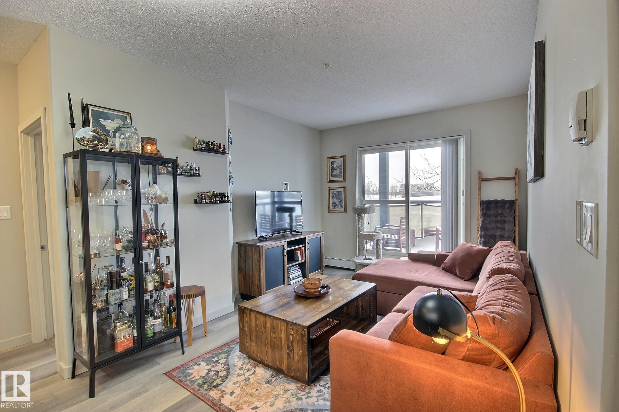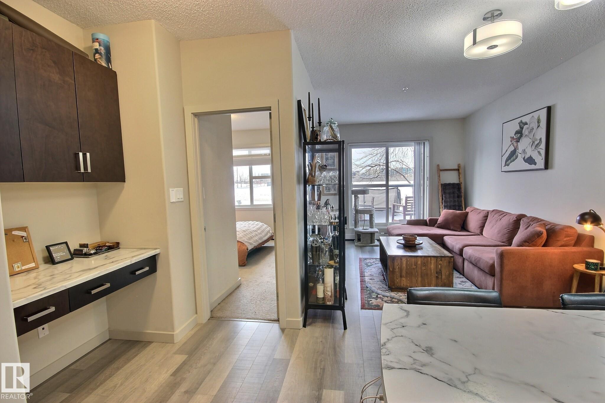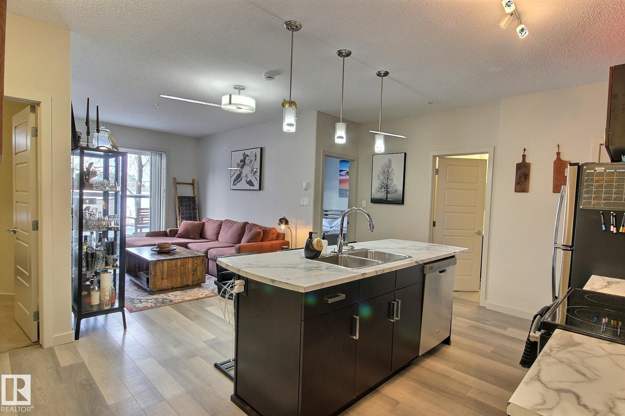 Double Master Suite with 2 titles parking stalls! This unit is the definition of convenience and flexibility. The location cannot be beat. Quick access to the Henday and Terwillegar, the safety and reputation of Ambleside/Windermere, then shopping/entertainment all within walking distance. The unit itself it very quiet situated on the main floor, beside the staircase (ie. no neighbor on that side) with exterior door access as well. Two parking stalls, one underground with storage locker and the other in front of your patio. Gorgeous open concept living space, high ceilings, loads of natural light, stainless appliances, office nook by the master bedroom and much more! In suite laundry with washer and dryer. Full ensuite's and walk through closet for BOTH BEDROOMS. Each closet has mirrored doors and ample storage space. Building amenities include a social room with kitchen, gym, and guest suite. Add this one to your favorites!