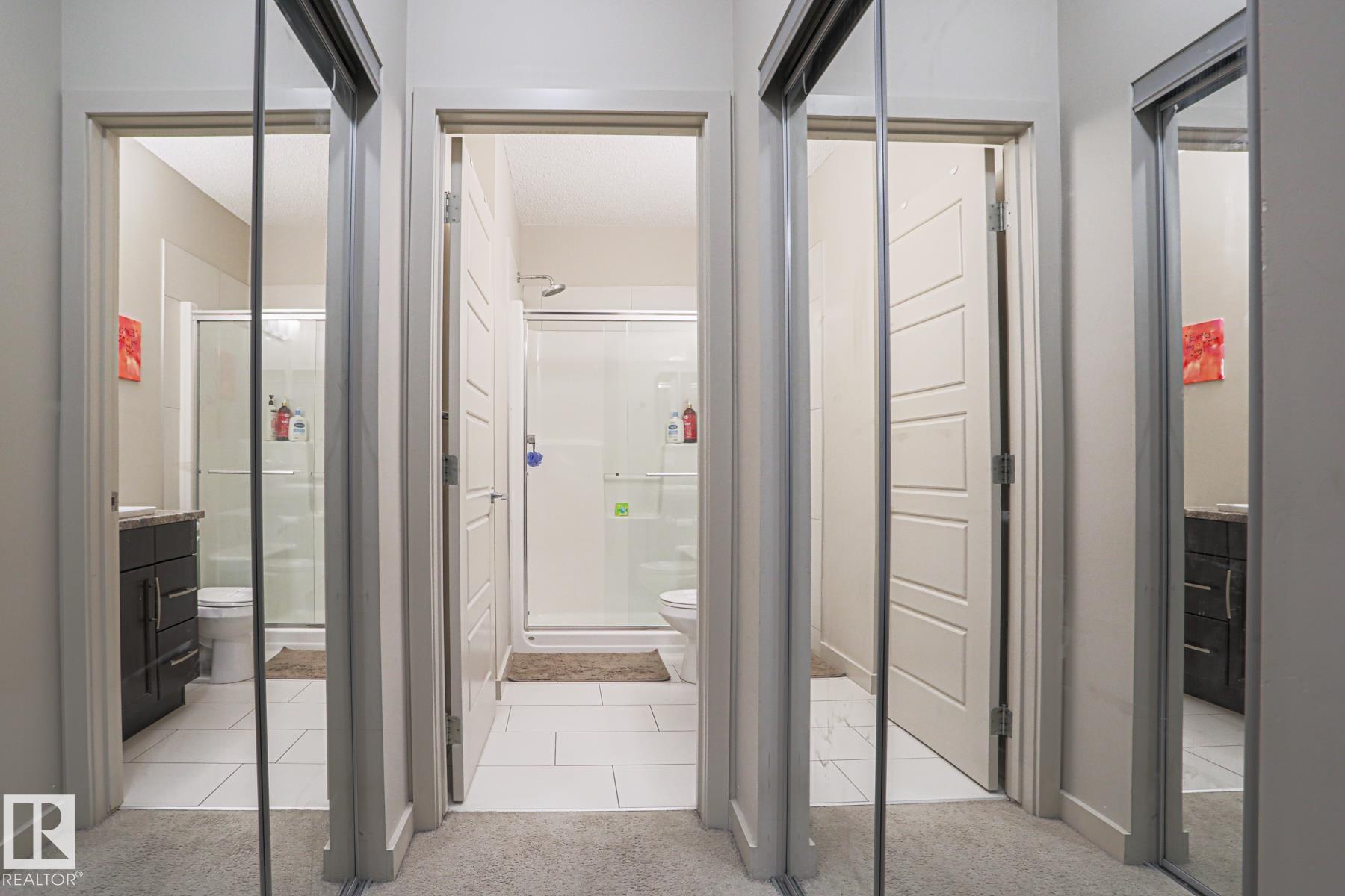 This spacious 2 bed 2 bath condo at Ambleside is conveniently located near many major amenities in top selling Windermere community. This unit offers TWO TITLED Heated Underground Parking stalls and a storage cage. This unit comes with an open concept floor plan, two spacious bedrooms on either side of living room for added privacy, 9-ft ceiling, stainless steel appliances (only unit in building with water line to fridge), walk-in pantry, in-suite laundry, big west facing balcony with a gas line for BBQ and unobstructed views. Spacious primary bedroom includes a 3-pc Ensuite with a standing shower as well as walkthrough his and hers closets! Heat and water/sewer are included in the monthly condo fees. This modern building includes a guest suite, a fitness room and a social room. Move in ready!