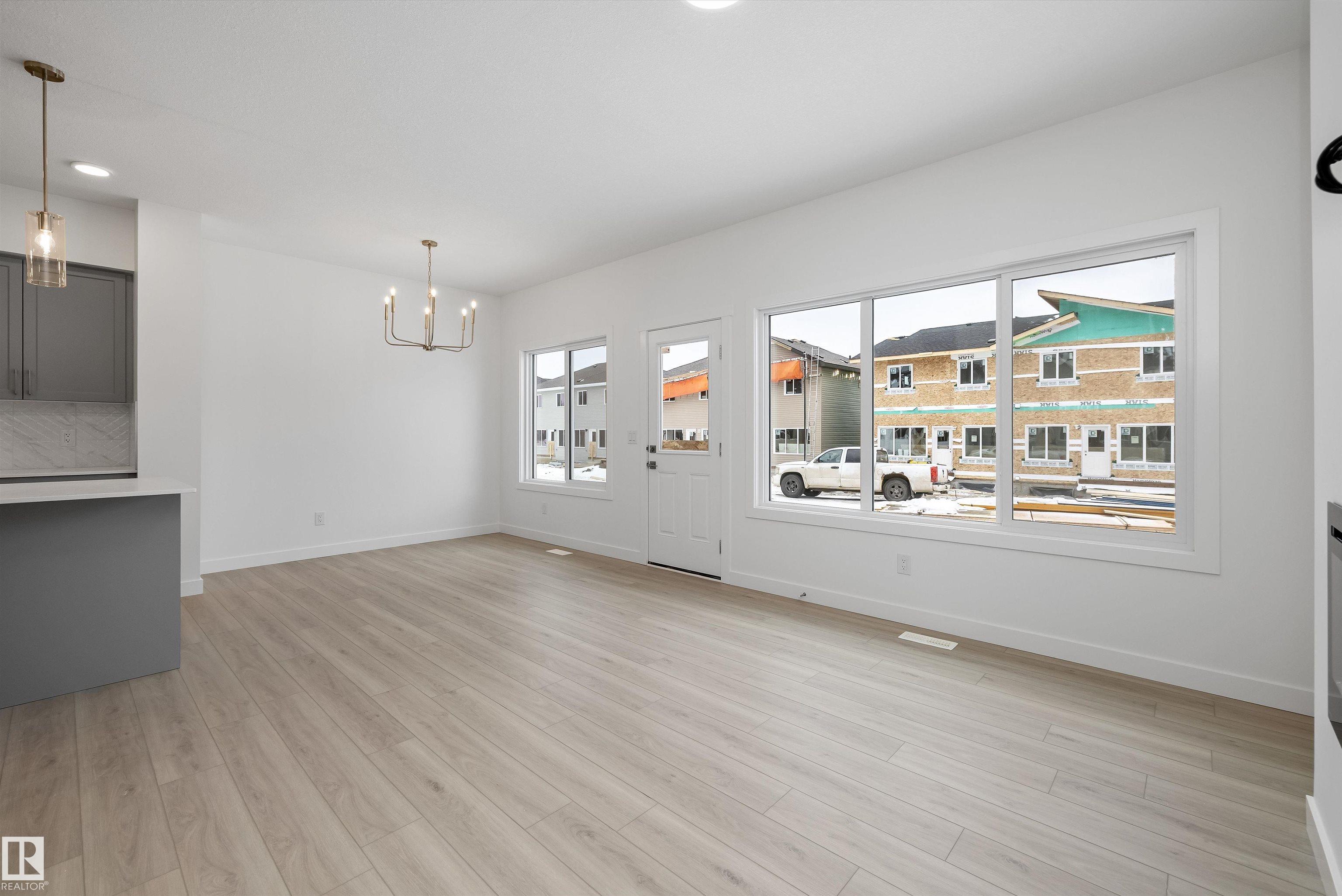 Experience the perfect blend of style and function in The Renew, a sophisticated half-duplex featuring 9-foot ceilings on both the main floor and basement levels. This open-concept home is finished with luxury vinyl plank flooring and a welcoming foyer that leads into a gourmet kitchen. The kitchen is a standout with upgraded soft-close Thermofoil cabinetry, quartz countertops, a corner pantry, and a central island with a Silgranit undermount sink. High-end touches include a chimney-style hood fan, built-in microwave, and elegant pendant lighting. The great room, anchored by a modern electric fireplace, offers large windows and access to the future deck. Upstairs, you will find a versatile bonus room, dedicated laundry, and three spacious bedrooms, including a primary suite with a walk-in closet and private ensuite. Complete with a separate side entrance, a double attached garage with a floor drain, and brushed nickel accents throughout, this home is move-in ready.