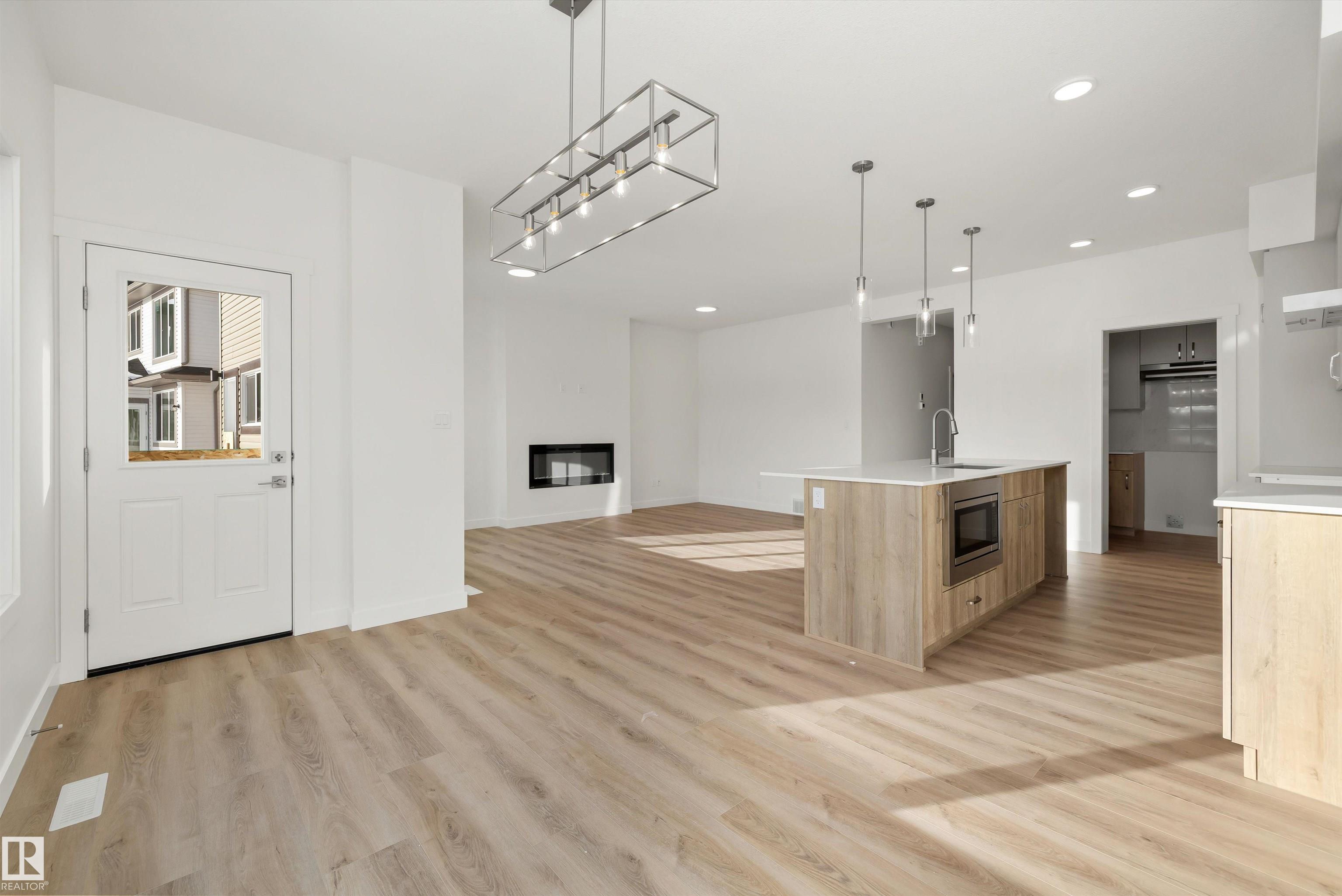 The Accolade is a well-designed family home featuring a double attached garage, separate side entrance, 9' ceilings on the main and basement levels, and luxury vinyl plank flooring on the main floor. A bright foyer with coat closet connects to a mudroom and powder room, while a main-floor den with walk-in closet leads into the open-concept kitchen, dining nook, and great room. The kitchen offers quartz countertops, an island with eating ledge and built-in microwave, undermount composite sink, chimney-style hood fan, soft-close cabinetry, and a dedicated spice kitchen. The great room features an electric fireplace, large windows, and garden door to the backyard. Upstairs includes a primary suite with walk-in closet and 5-piece ensuite, plus a bonus room, upper laundry, a main 3-piece bath, and three additional bedrooms. Brushed nickel fixtures, basement rough-in, and Sterling Signature Specifications are included.