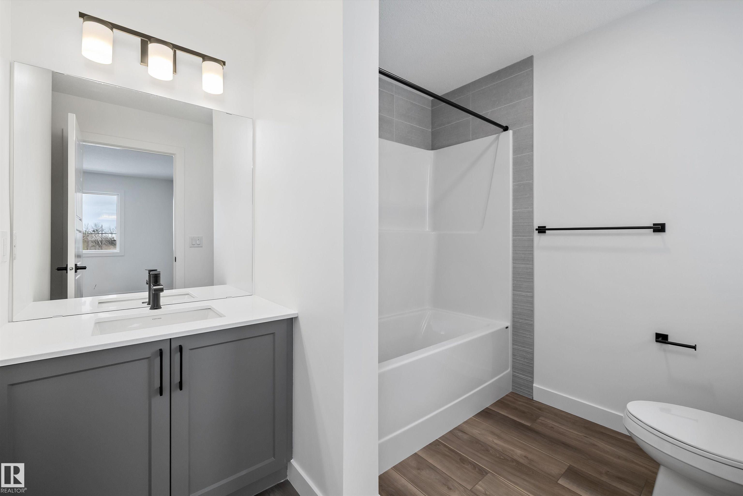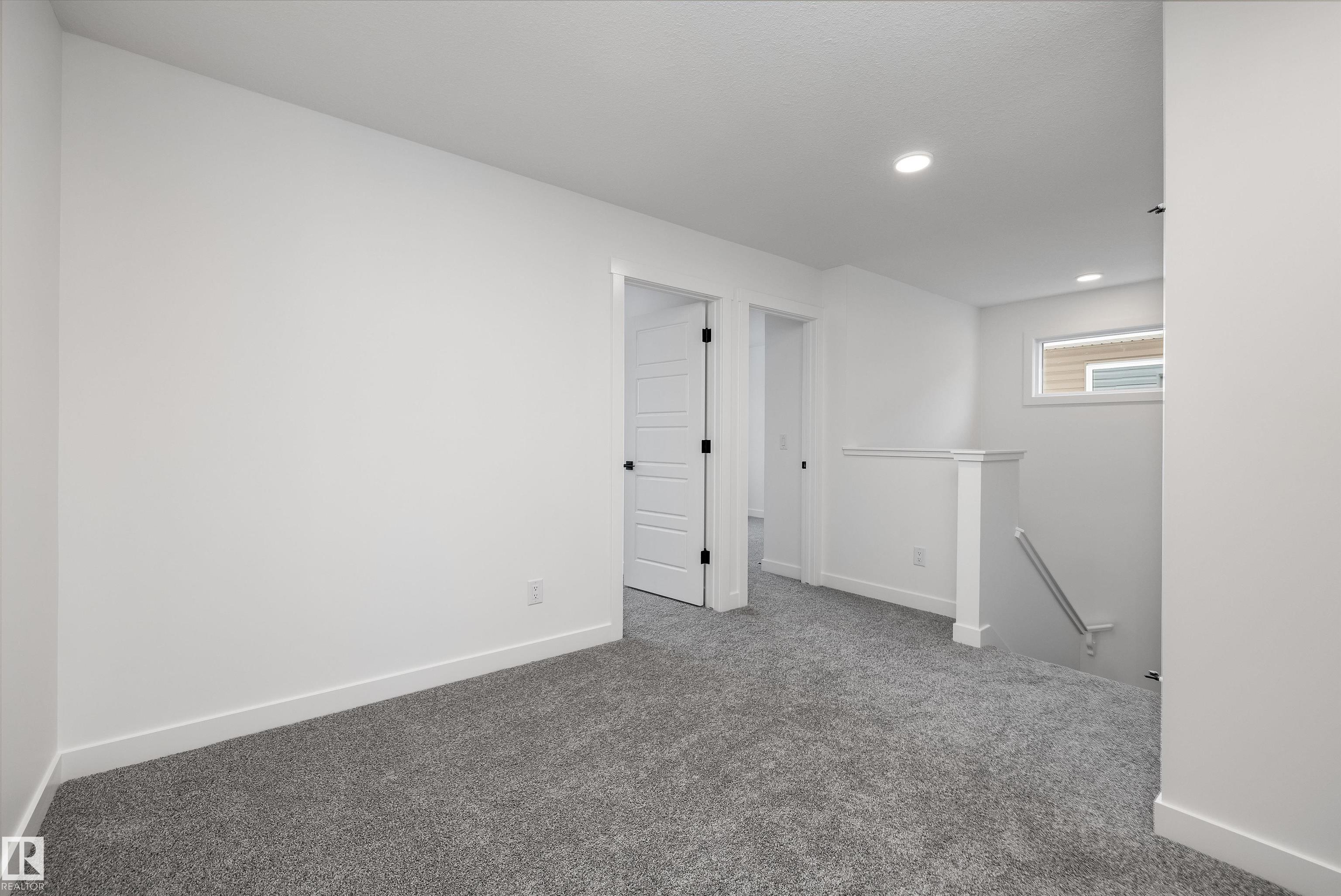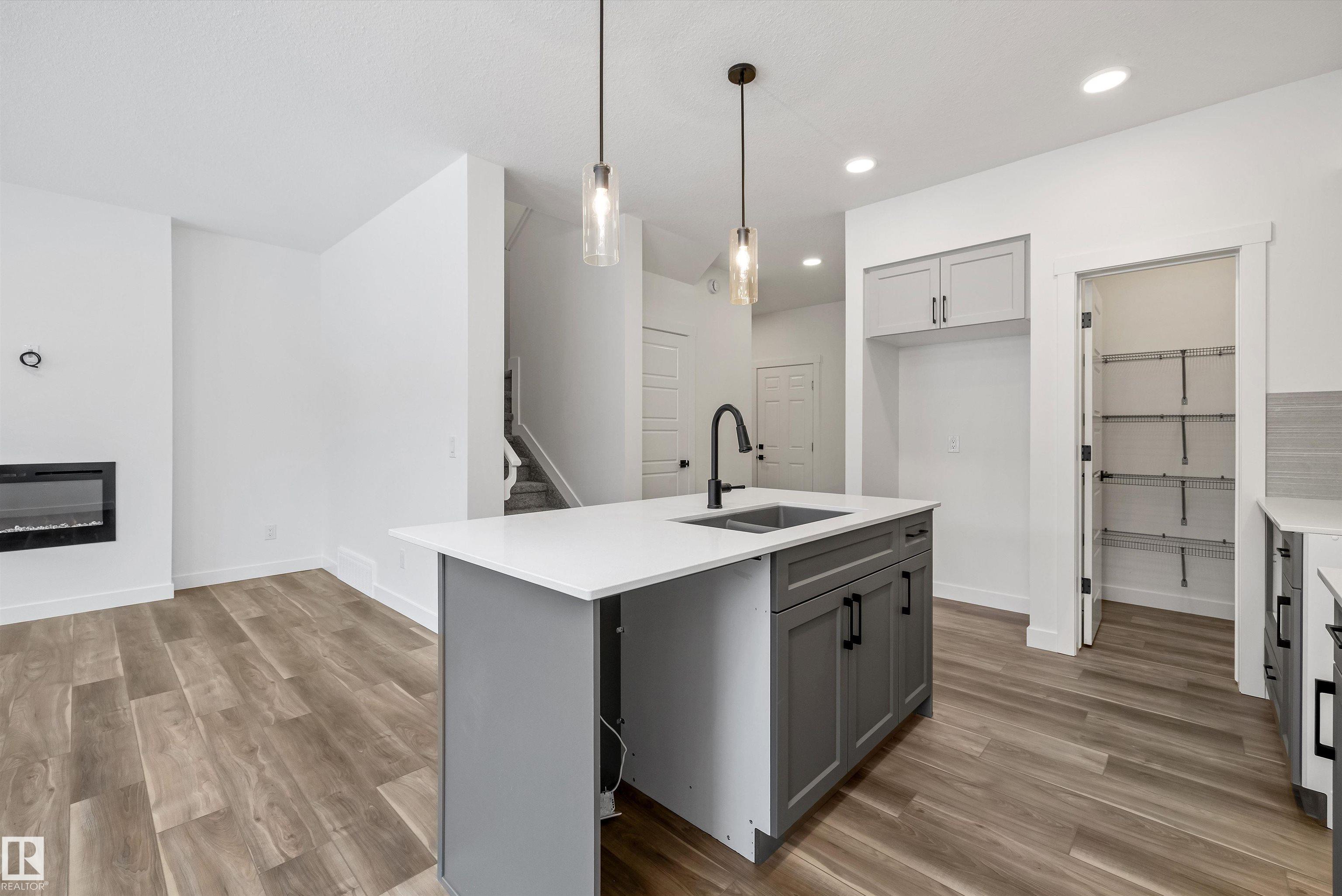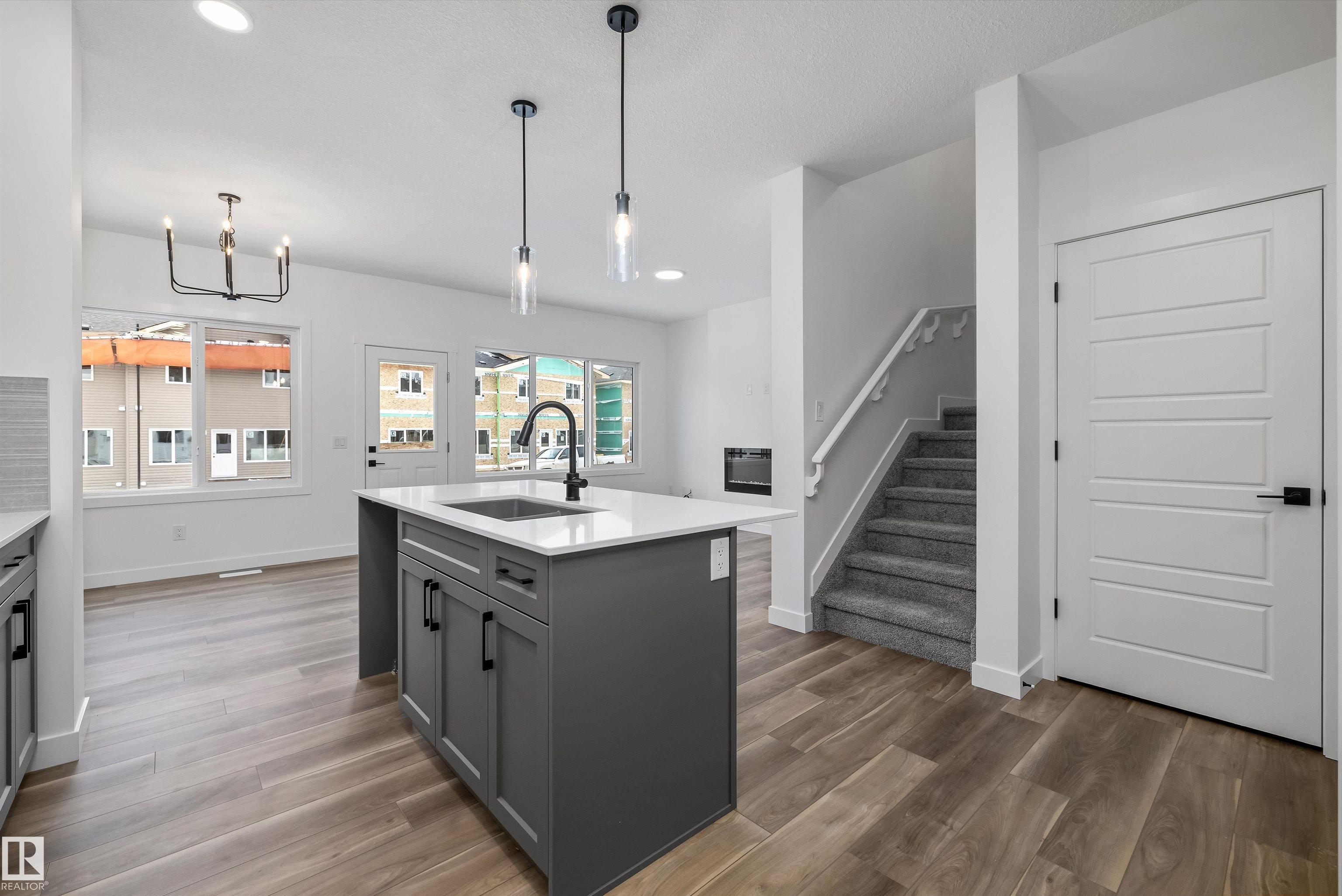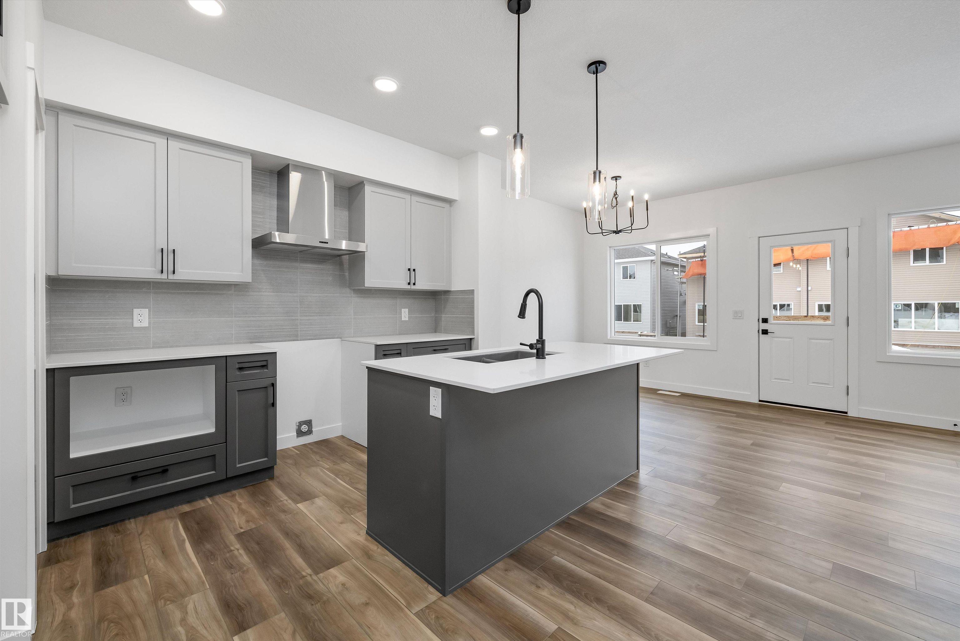 Welcome to The Renew, a sophisticated half-duplex offering exceptional craftsmanship and a thoughtful layout. This home features 9-foot ceilings on both the main and basement levels, paired with luxury vinyl plank flooring for a seamless, modern feel. The gourmet kitchen is a chef's dream, boasting upgraded soft-close Thermofoil cabinetry, quartz countertops, a corner pantry, and a large island with a Silgranit sink. Premium finishes include a chimney-style hood fan, full-height backsplash, and sleek black plumbing and lighting fixtures throughout. The open-concept great room is centered by a cozy electric fireplace and leads to a backyard ready for your future deck. Upstairs, discover a versatile bonus room, convenient laundry, and three bedrooms, including a primary retreat with a walk-in closet and 3-piece ensuite. Practicality is built-in with a double attached garage featuring a floor drain, a separate side entrance, and basement rough-ins for two additional bedrooms.