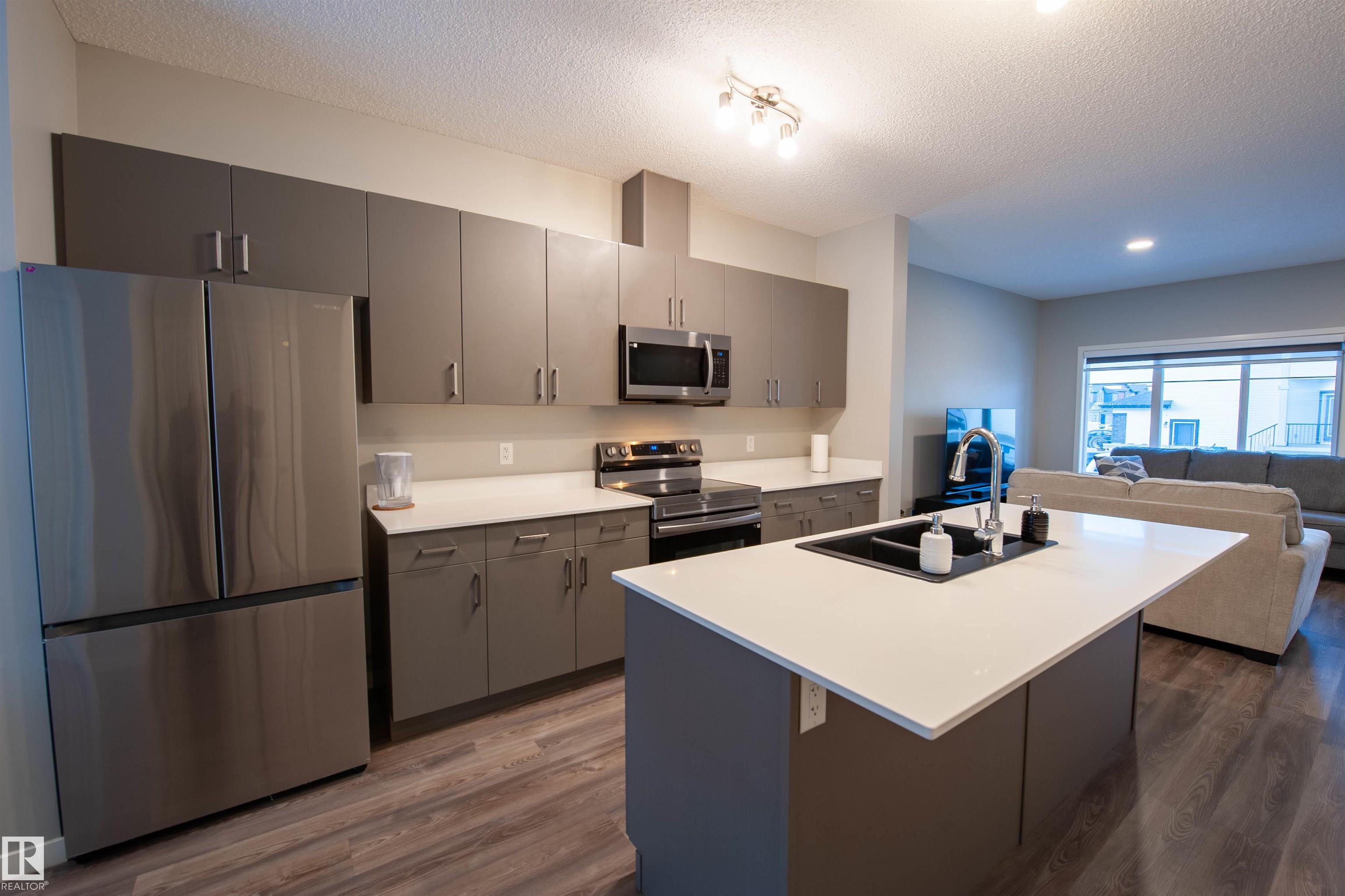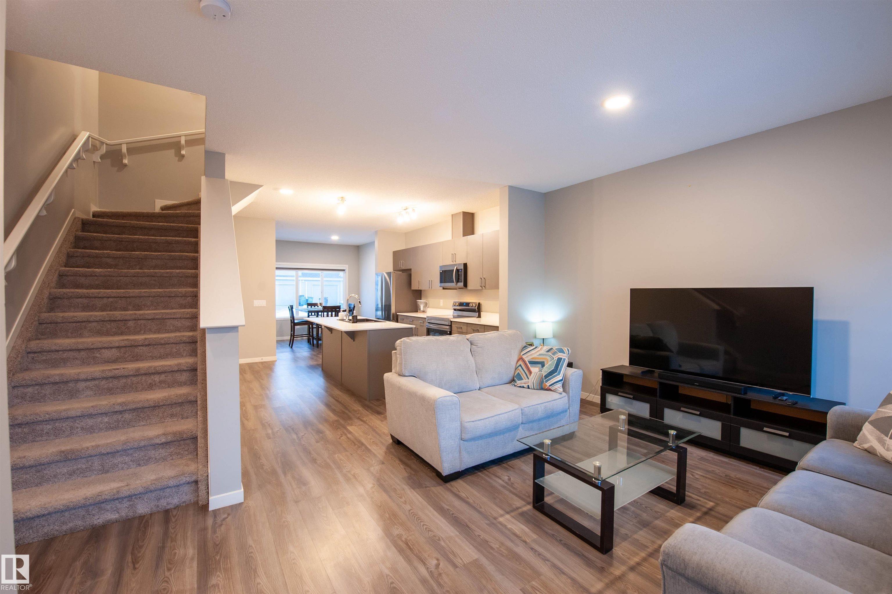 Live the Good Life in this beautifully designed home in the family-friendly community of Aster. Surrounded by every amenity imaginable--transit hub, entertainment complex, schools, parks, and shopping--this location delivers true convenience. The bright open-concept main floor features modern cabinetry, quartz countertops, black sink, stainless steel appliances, and large windows filling the space with natural light. A 2pc bath sits just off the back entrance, leading to the yard with a concrete pad ready for a future garage. Upstairs offers a versatile bonus room, two spacious bedrooms, laundry, full bath, and a sun-filled primary suite with private ensuite. The fully self-contained basement suite includes a separate entrance, open layout, full kitchen, 4pc bath, bedroom with walk-in closet, and its own laundry--perfect for extended family. A rare opportunity in an exceptional community. Visit REALTOR© website for more info!