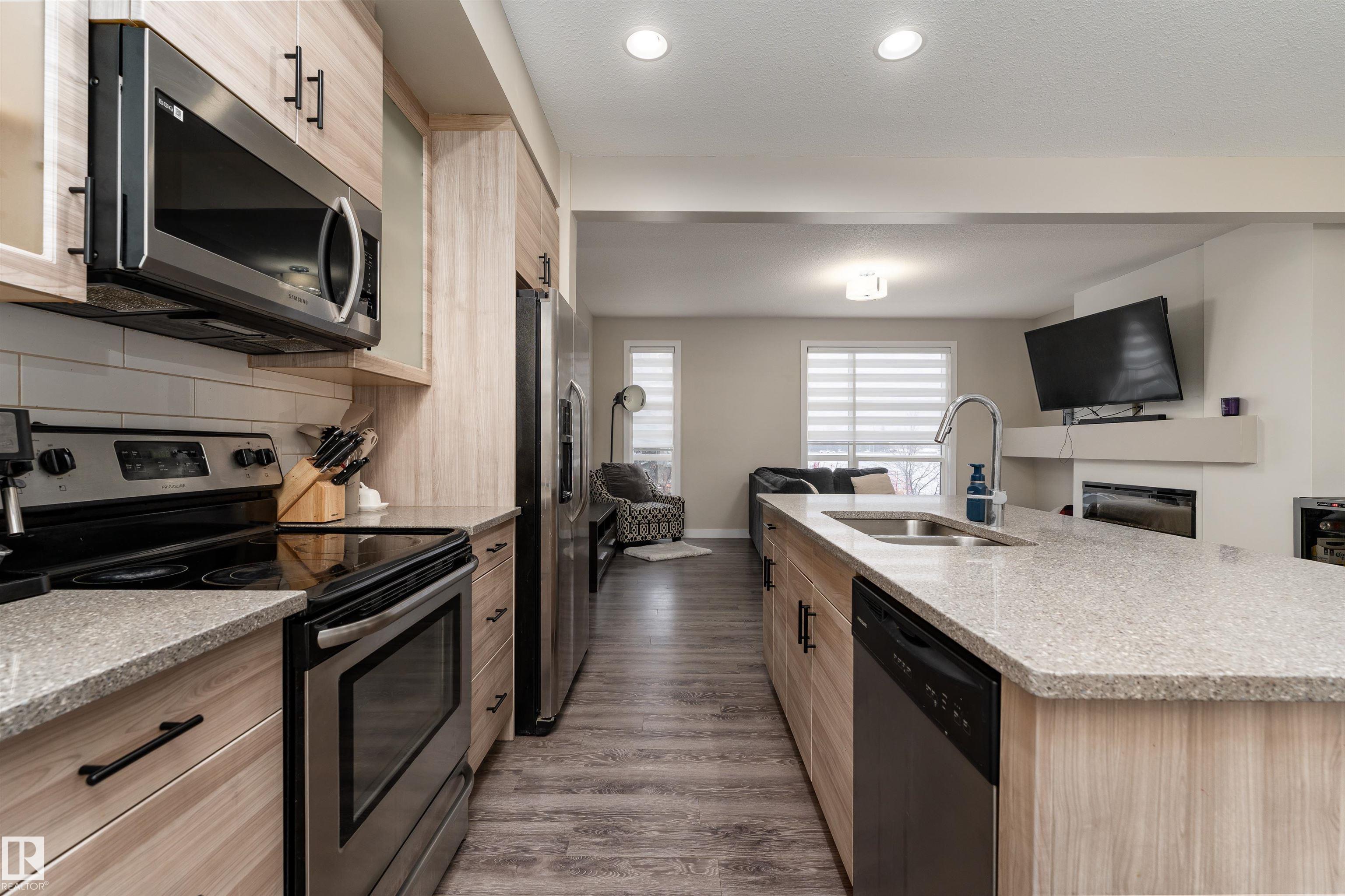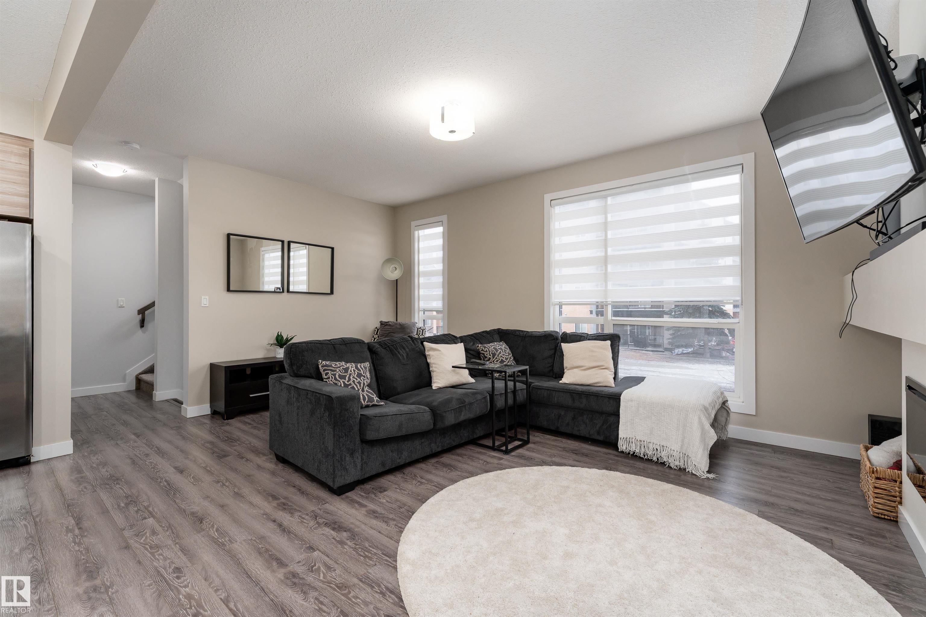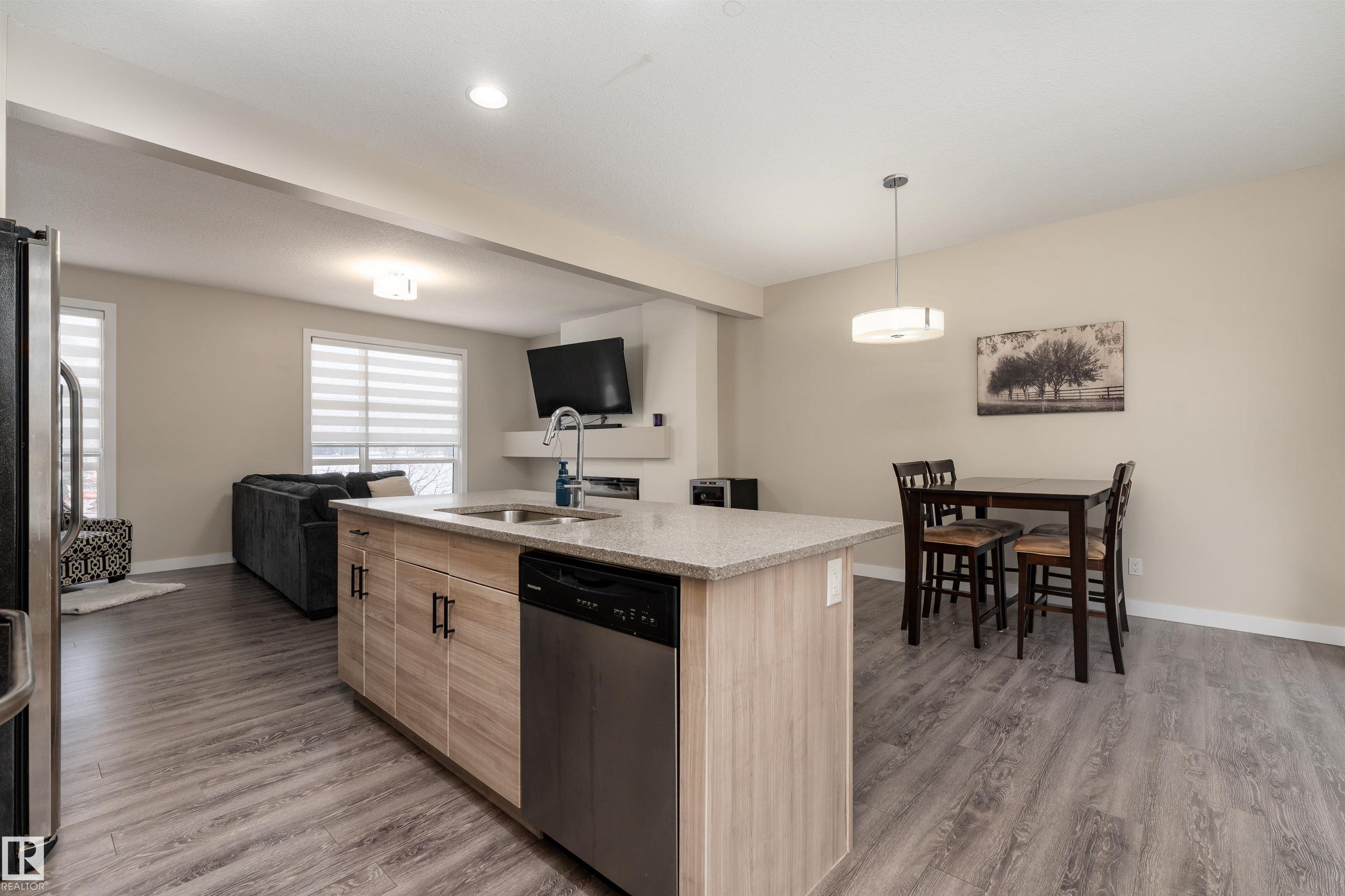 Bright and inviting townhome in Baranow, featuring 3 bedrooms, 2.5 bathrooms, and a thoughtfully designed living space with a modern open-concept layout. The main floor welcomes you with 9-foot ceilings, expansive windows, and a seamless flow between the living, dining, and kitchen areas. The living room is highlighted by a stunning feature fireplace, creating a warm and comfortable gathering space. The kitchen is well-equipped with stainless steel appliances, a generous walk-in pantry, plenty of cabinetry, and a central island that opens to the dining area. From here, step out onto your east-facing balcony--perfect for enjoying your morning coffee. Upstairs, you'll find three spacious bedrooms, including a primary retreat complete with a walk-in closet and a 4-piece ensuite. An additional full bathroom and a large linen closet add convenience to the upper level. The lower level includes a laundry area and access to the double attached garage, offering ample room for two vehicles and storage.