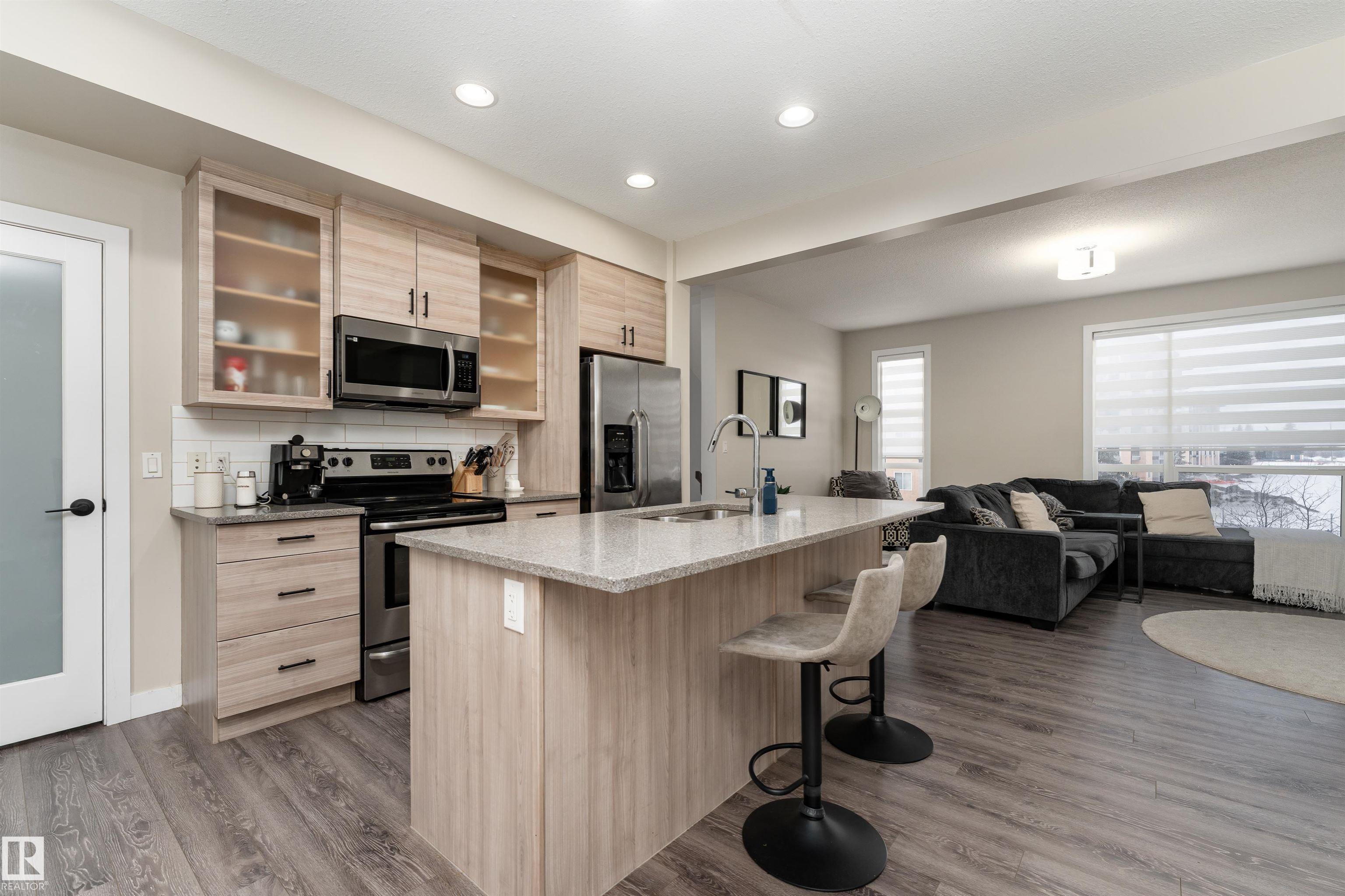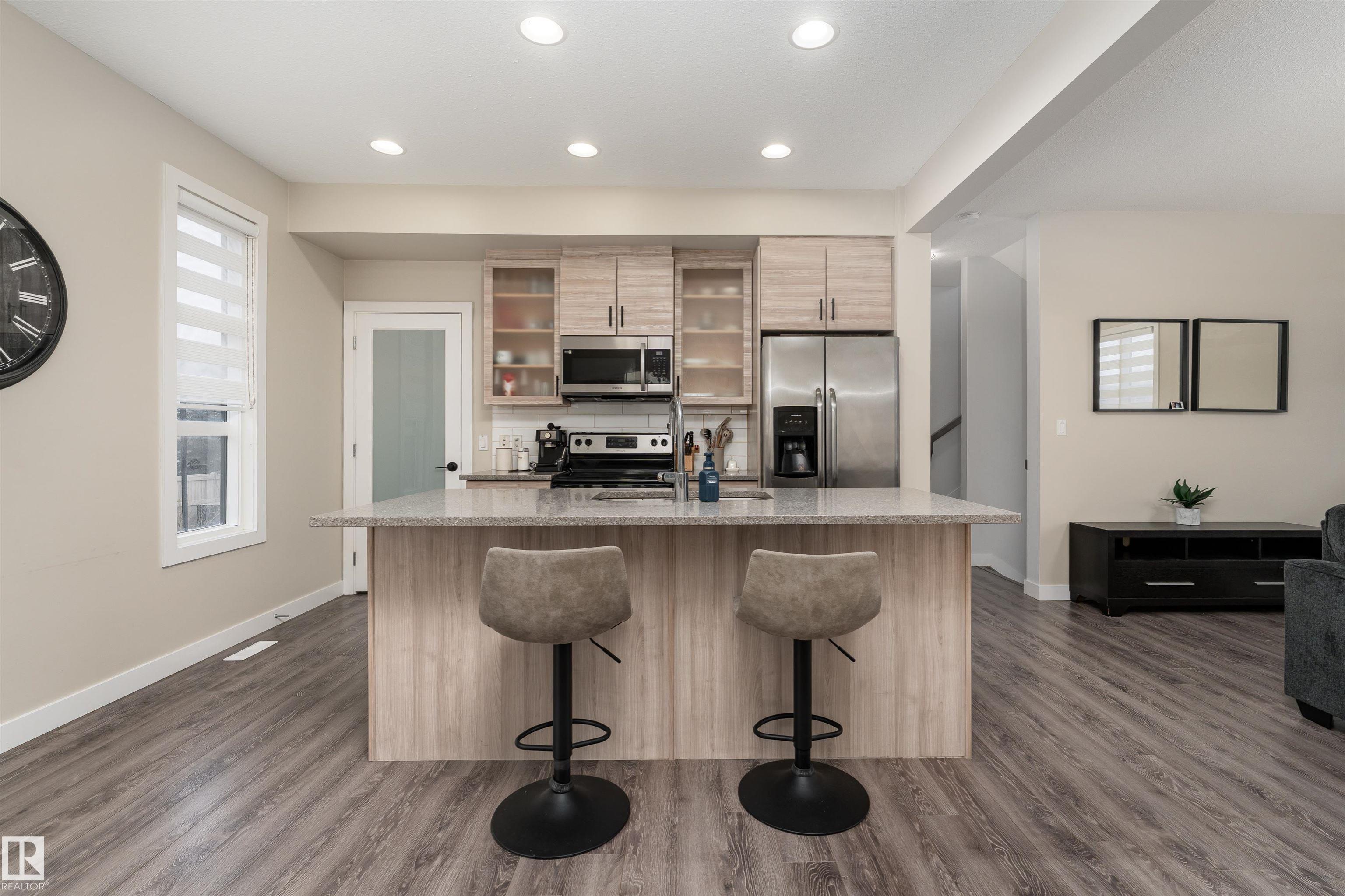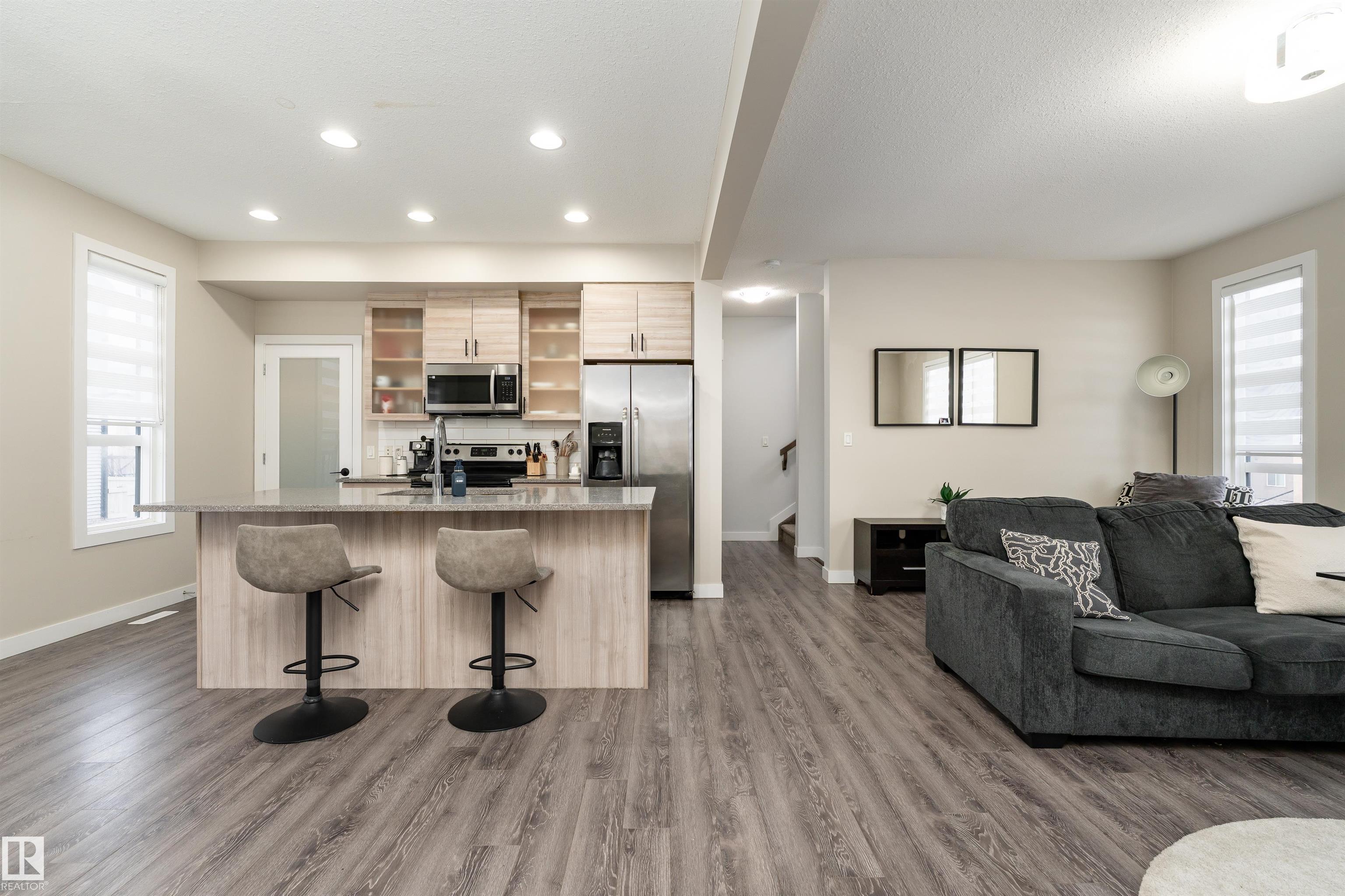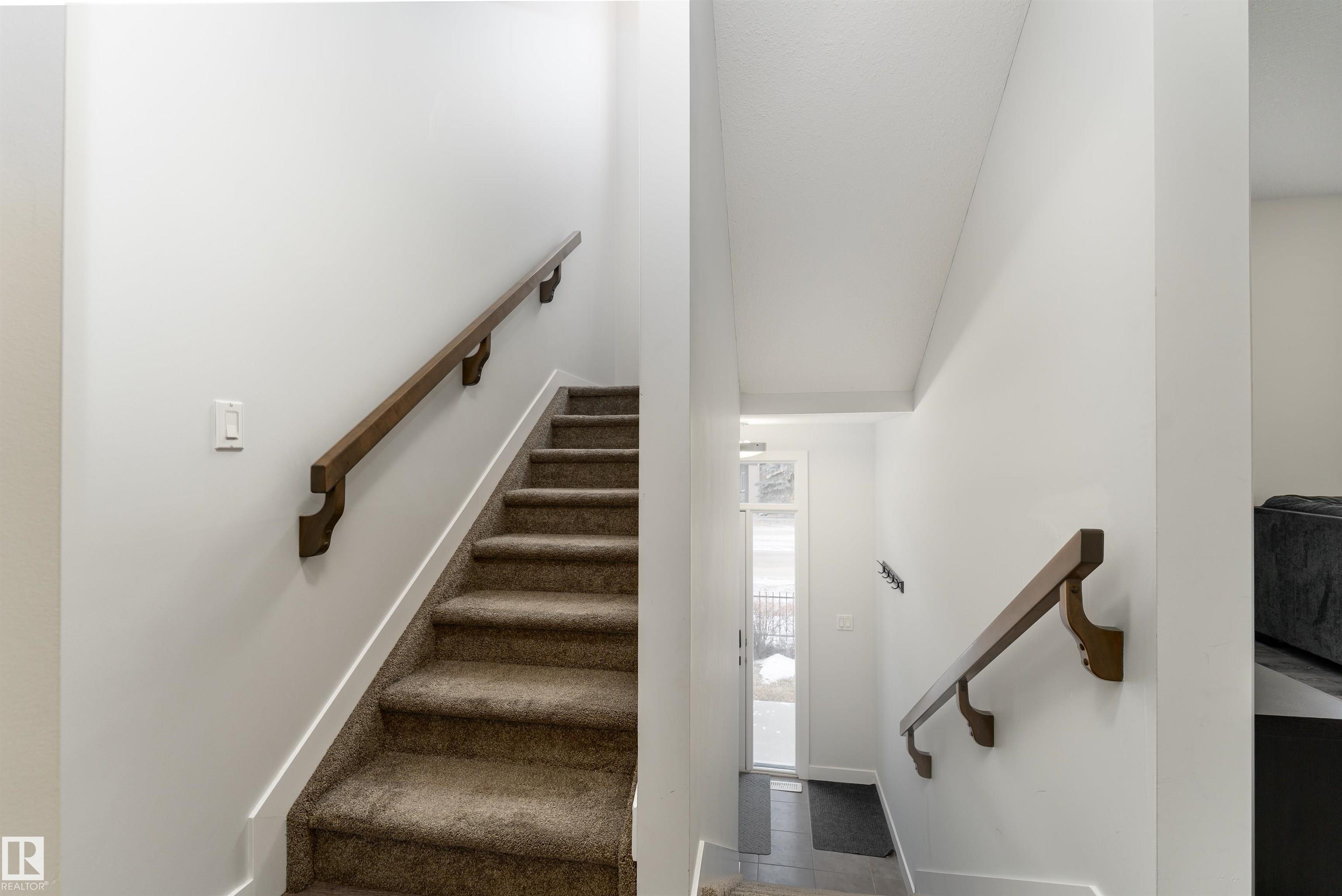 Bright and inviting townhome in Baranow, featuring 3 bedrooms, 2.5 bathrooms, and a thoughtfully designed living space with a modern open-concept layout. The main floor welcomes you with 9-foot ceilings, expansive windows, and a seamless flow between the living, dining, and kitchen areas. The living room is highlighted by a stunning feature fireplace, creating a warm and comfortable gathering space. The kitchen is well-equipped with stainless steel appliances, a generous walk-in pantry, plenty of cabinetry, and a central island that opens to the dining area. From here, step out onto your east-facing balcony--perfect for enjoying your morning coffee. Upstairs, you'll find three spacious bedrooms, including a primary retreat complete with a walk-in closet and a 4-piece ensuite. An additional full bathroom and a large linen closet add convenience to the upper level. The lower level includes a laundry area and access to the double attached garage, offering ample room for two vehicles and storage.