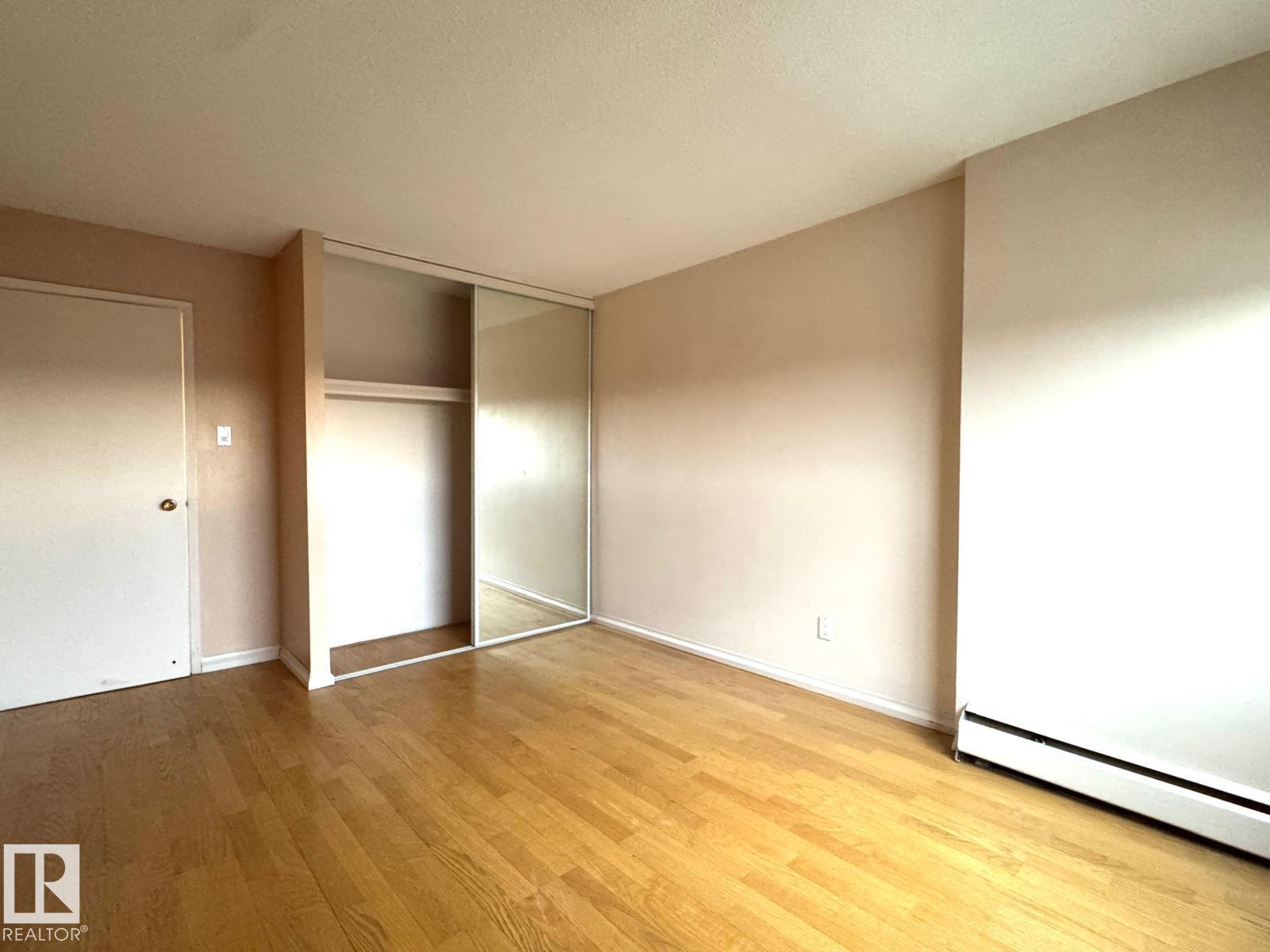 Experience Downtown Living at Its Finest! Enjoy Beautiful Panoramic Views of Downtown Edmonton from this lovely condo in the heart of the city! Perfectly located just steps away from downtown, Jasper Ave, Rogers Place, restaurants, shopping, parks, golf, and the breathtaking River Valley trail system. The open-concept layout features a large & bright living room with laminate flooring throughout. Patio doors leading you to a private balcony with gorgeous downtown views. The kitchen offers cabinet and pantry, and a cozy dining area. A full 4-piece bath adds convenience and comfort. This high rise concrete building offers heated underground parking, coin-op laundry room plus each floor has garbage chute. Condo fees include heat, water, and power, making living here simple and affordable. Whether you're a first-time homebuyer or an investor, this is the perfect opportunity to enjoy convenience, and vibrant urban living--just move in and enjoy!