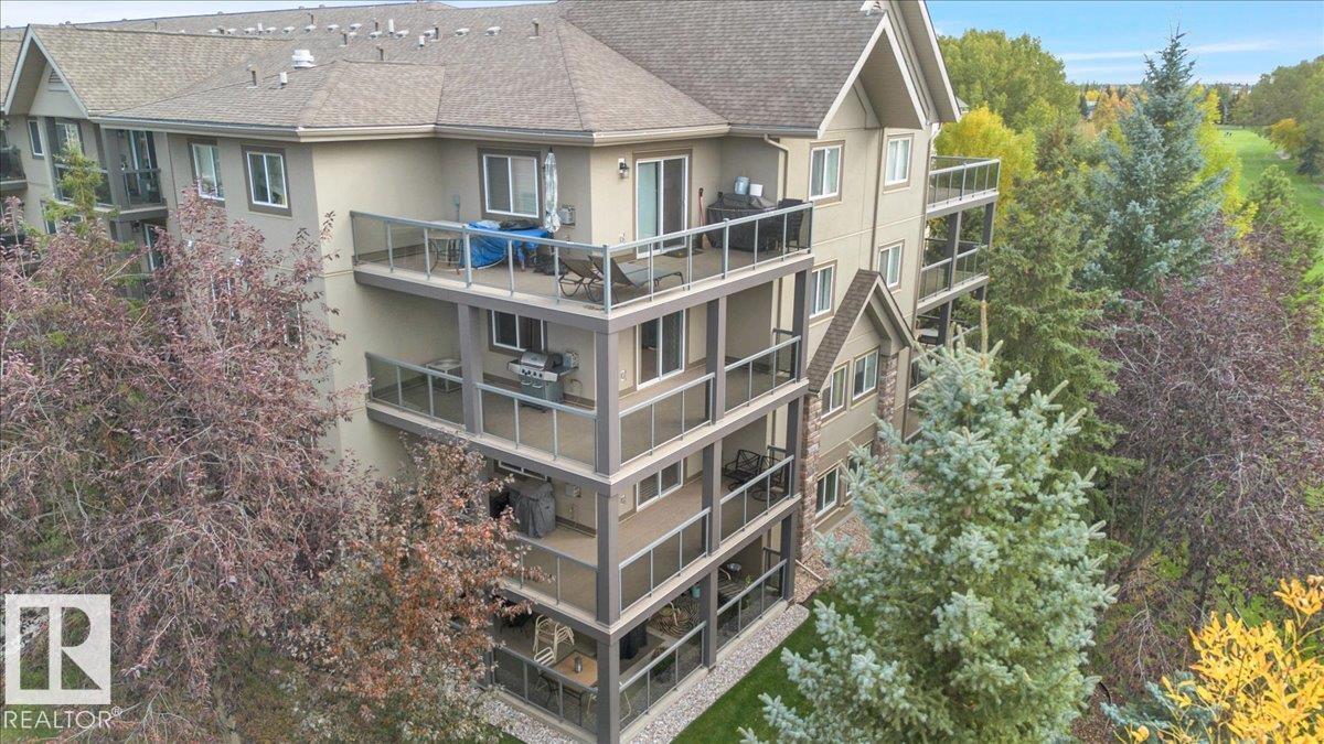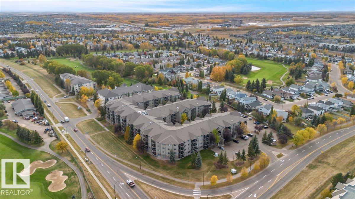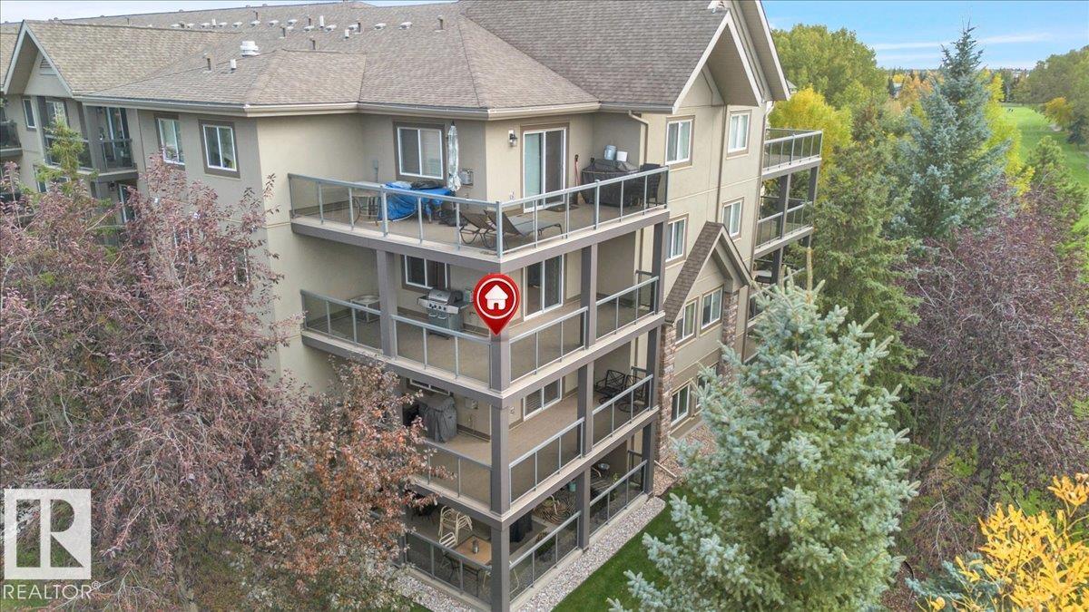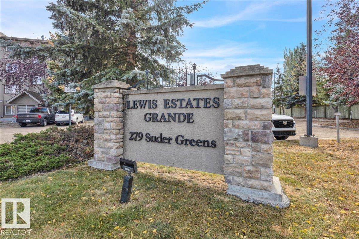A perfect blend of class, comfort, and spaciousness, with MILLION DOLLAR, 17th HOLE VIEWS from your WRAP AROUND BALCONY. Welcome to Grande Lewis Estates. MOMENTS off the Henday or Whitemud, with all shopping and amenities right down the road. With 2 PARKING STALLS (one UNDERGROUND w STORAGE, and one right outside the unit!) this unit is in the HEART OF LEWIS ESTATES and is LITERALLY ON THE GOLF COURSE, and 4 units away from ELEVATOR or stairwell! Meticulous and lovingly maintained over the years, and you will see that throughout. UPGRADED VINYL PLANK and carpet and FRESHLY PAINTED. UPGRADED APPLIANCES- FULL SIZED washer and dryer, and full BLACK STAINLESS appliances throughout kitchen w water and ice from fridge! Enjoy quiet evenings in front of your GAS FIREPLACE while admiring Golf Course Views! Temperature won't be an issue in summer either, as the unit comes with AC. Massive social room as well as a gym in the building. You deserve the tranquility and sophistication of golf course living.