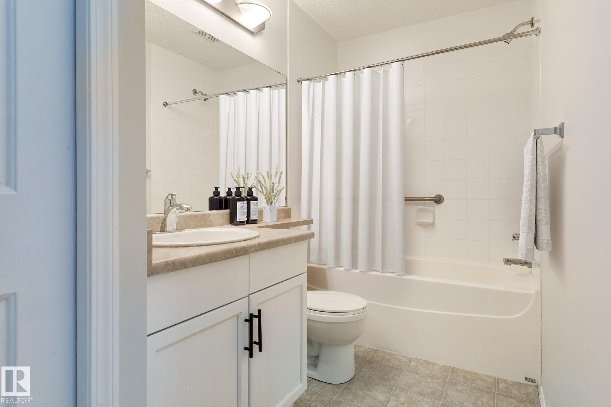 Welcome to Grande Lewis Estates! This bright, 2-bed plus den/office unit blends comfort and convenience with wonderful outdoor space. Enjoy central AC, a cozy gas fireplace, and that spacious balcony with serene views. The kitchen features crisp white cabinetry, tile backsplash, and ample natural light. Double oven is a great chef's touch! Primary bedroom features an ensuite and walk-in closet. In-suite laundry is a convenient touch. Includes 2 parking stalls (#331 & #336) and is well located in the heart of Lewis Estates with quick access to Henday, Whitemud, shopping, and amenities. Building updates are fully paid, with a strong reserve fund for peace of mind. A rare find in a prime location across the road from Lewis Estates Golf Course.