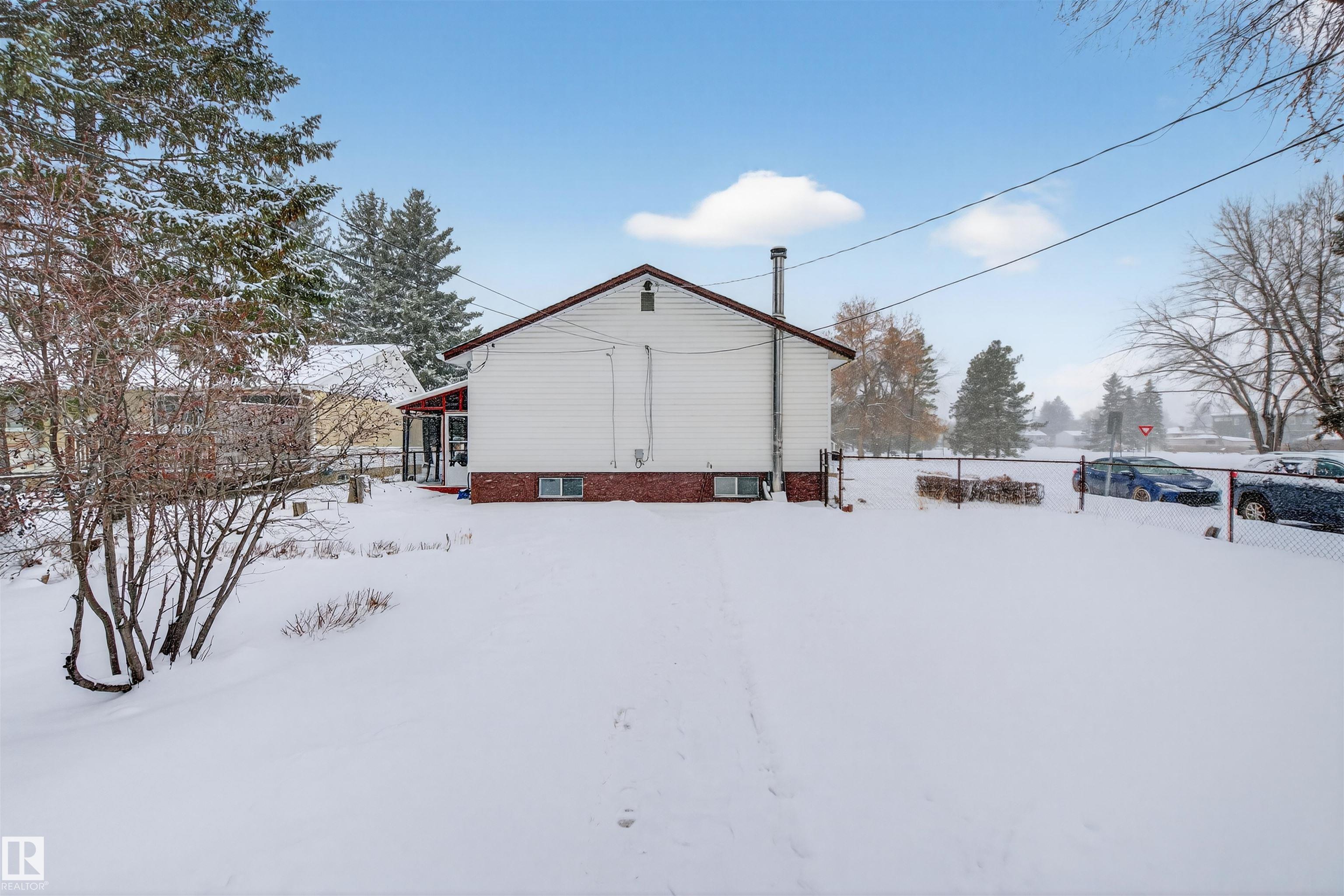 PRIME OPPORTUNITY in BRITANNIA YOUNGSTOWN! Situated on a LARGE CORNER LOT, this property offers incredible VALUE in one of Edmonton's most CONVENIENT and EVOLVING WEST-END COMMUNITIES. Backing directly onto the COMMUNITY LEAGUE and located ACROSS FROM DR. ANNE ANDERSON PARK, you'll love the OPEN SPACE, MATURE TREES, and STRONG SENSE OF COMMUNITY this location provides. Improvements include new shingles in 2022 and newer updated windows. The MASSIVE BACKYARD offers endless potential for outdoor living, redevelopment, or future expansion, complete with a DOUBLE DETACHED GARAGE and rear lane access. Inside, this well cared for home features a functional layout with additional living space in the basement. Just MINUTES TO DOWNTOWN with EASY ACCESS to MAJOR ROUTES, TRANSIT, SHOPPING, and SCHOOLS. Whether you're looking to INVEST, REDEVELOP, or settle into a WELL-LOCATED MATURE NEIGHBOURHOOD, this property checks all the boxes. A RARE FIND with LOCATION, LOT, and LONG-TERM POTENTIAL!