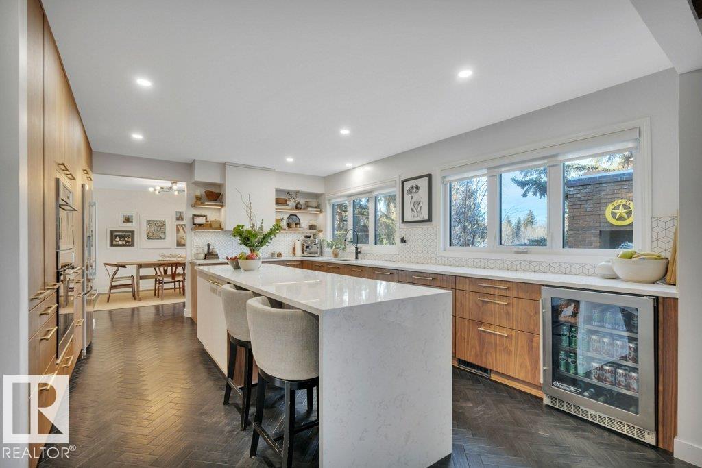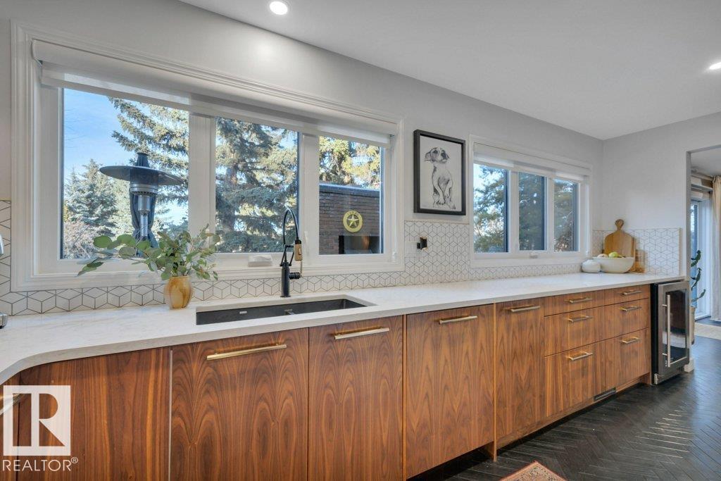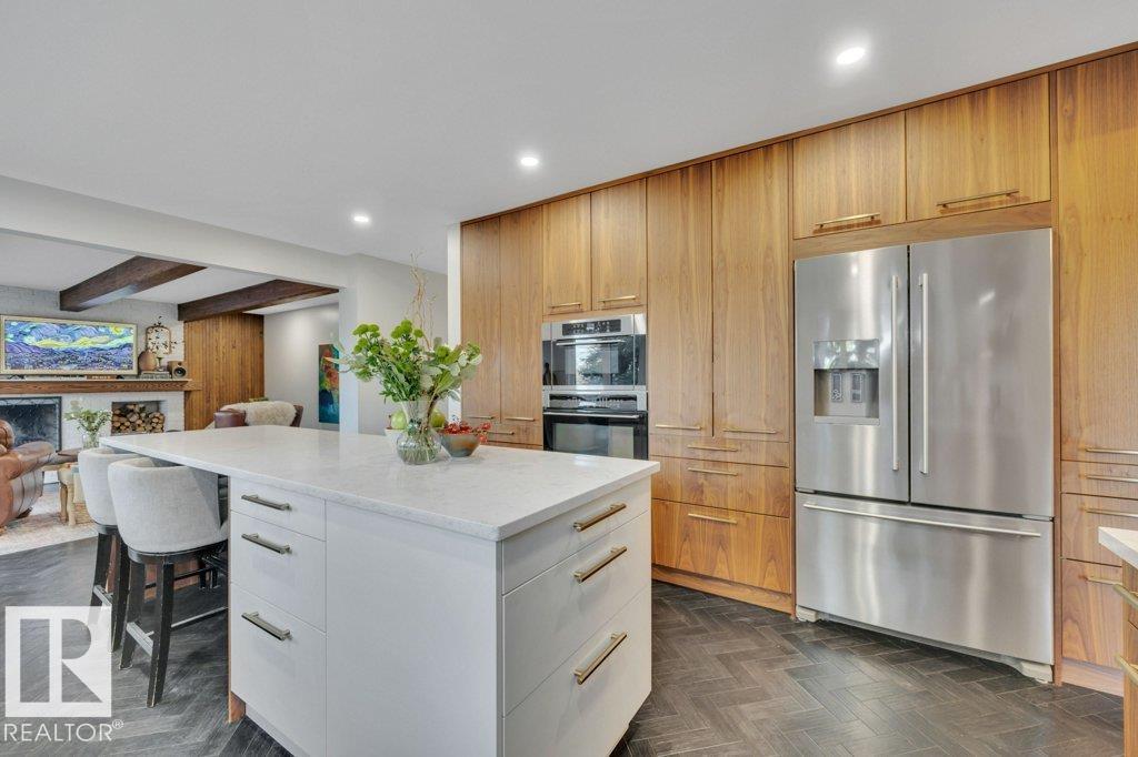 If you're seeking an executive-level home that blends thoughtful design with high-end renovations--while still honouring its beautiful original character--this 3300+ sq ft residence is truly a rare find. Every detail has been upgraded with intention showcasing premium materials & exceptional craftsmanship throughout. With 6 spacious bedrms, 2 offices, & a bright walkout basement, the home offers remarkable flexibility for modern living. Upgrades include windows, furnaces-3, air conditioning, custom-designed kitchen, fully renovated bathrooms, & refined interior finishes that elevate every level of the home. The exterior features mature, landscaping that enhances the property's serene presence. Situated in the prestigious community of Brookside, on a quiet street just steps from the ravine & trail system, this home delivers the perfect blend of luxury, comfort, & location. An exceptional opportunity for those seeking quality, space, & timeless design in one of Edmonton's most desirable neighbourhoods.