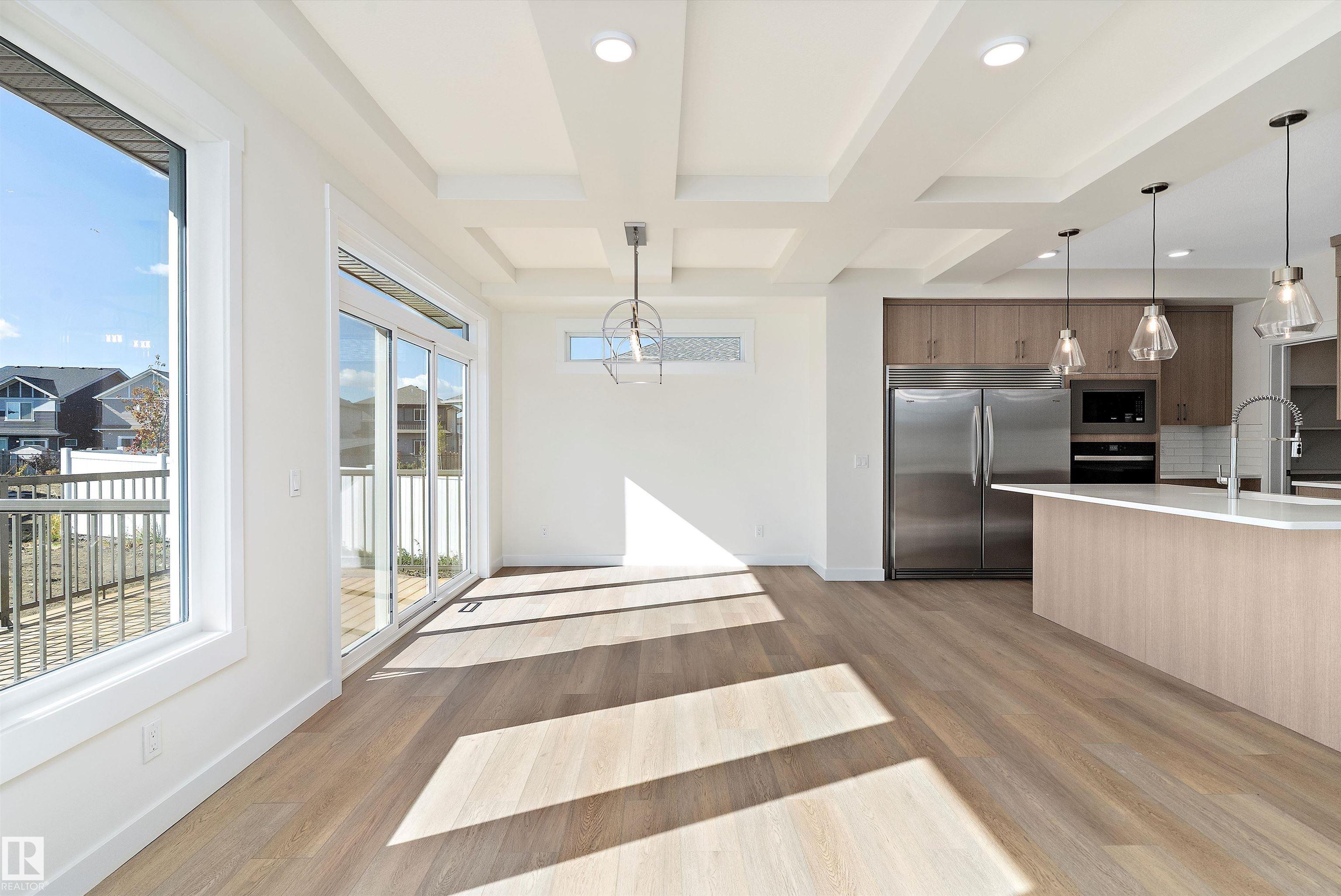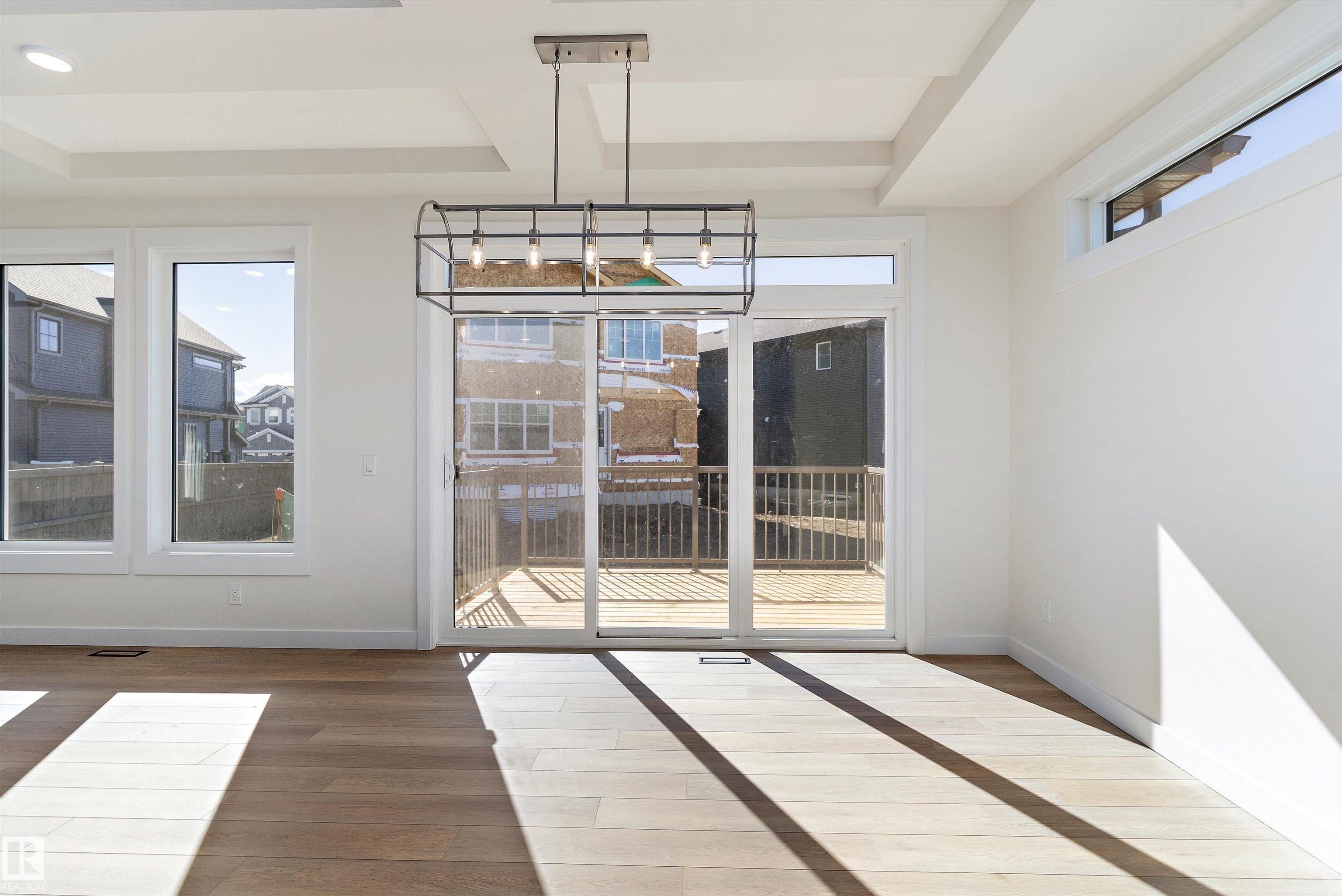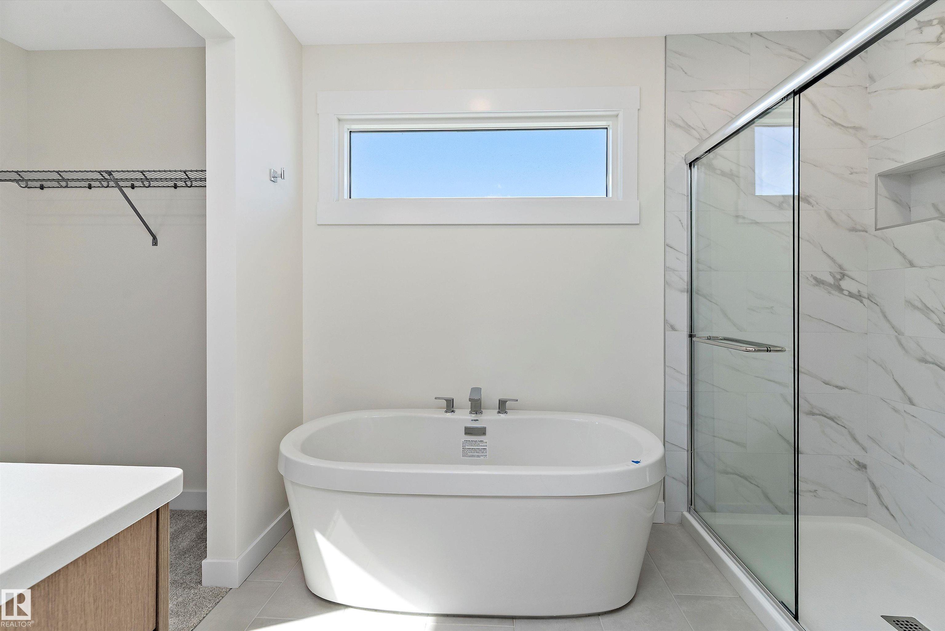 Discover your dream home in Crystallina! This brand new 2,164 sq ft two-storey Tofino model home built by City Homes, is loaded with over $40,000 in upgrades, situated in a pie shape lot, and ready for immediate possession! The main floor impresses with its open design, upgraded kitchen and appliance package, dining area that steps out to the included rear deck, and a spacious living room highlighted by a striking 60" electric fireplace. Upstairs offers a bright central bonus room with oversized slider window, a private primary suite with walk-in closet and ensuite with freestanding tub, plus two spacious additional bedrooms. Extras you'll love: elegant spindle railing, enlarged garage for added parking space, separate side entrance with suite potential, and basement rough-ins for laundry and sink. Situated in a family-friendly community close to schools, shopping, parks, and the Henday -- this home combines elevated living with sophisticated style. Don't miss this move-in ready opportunity!
