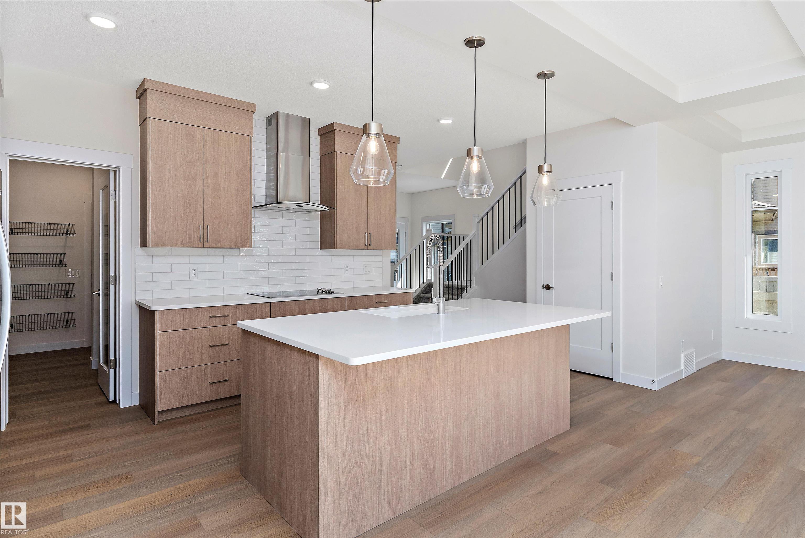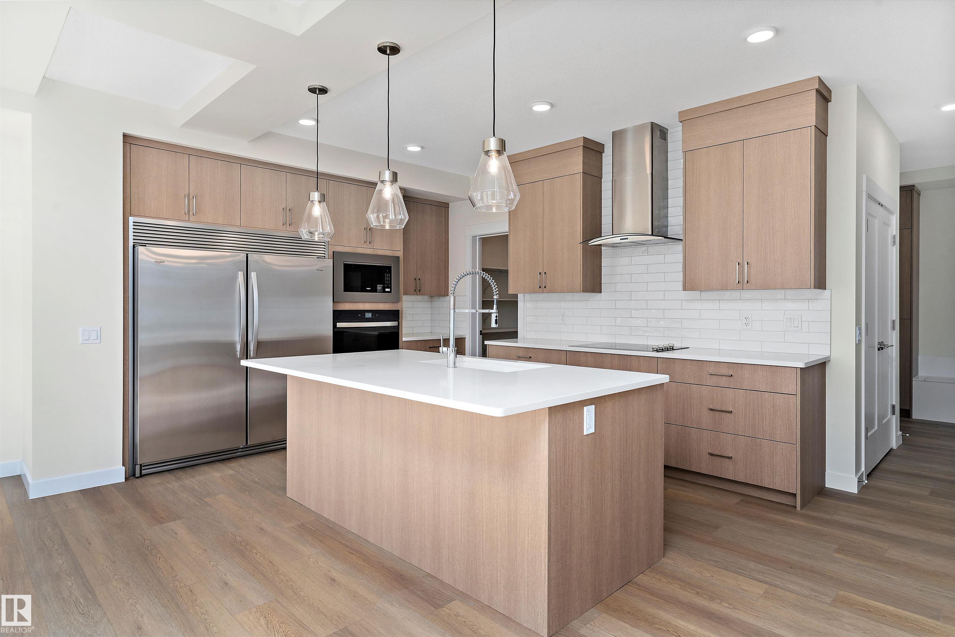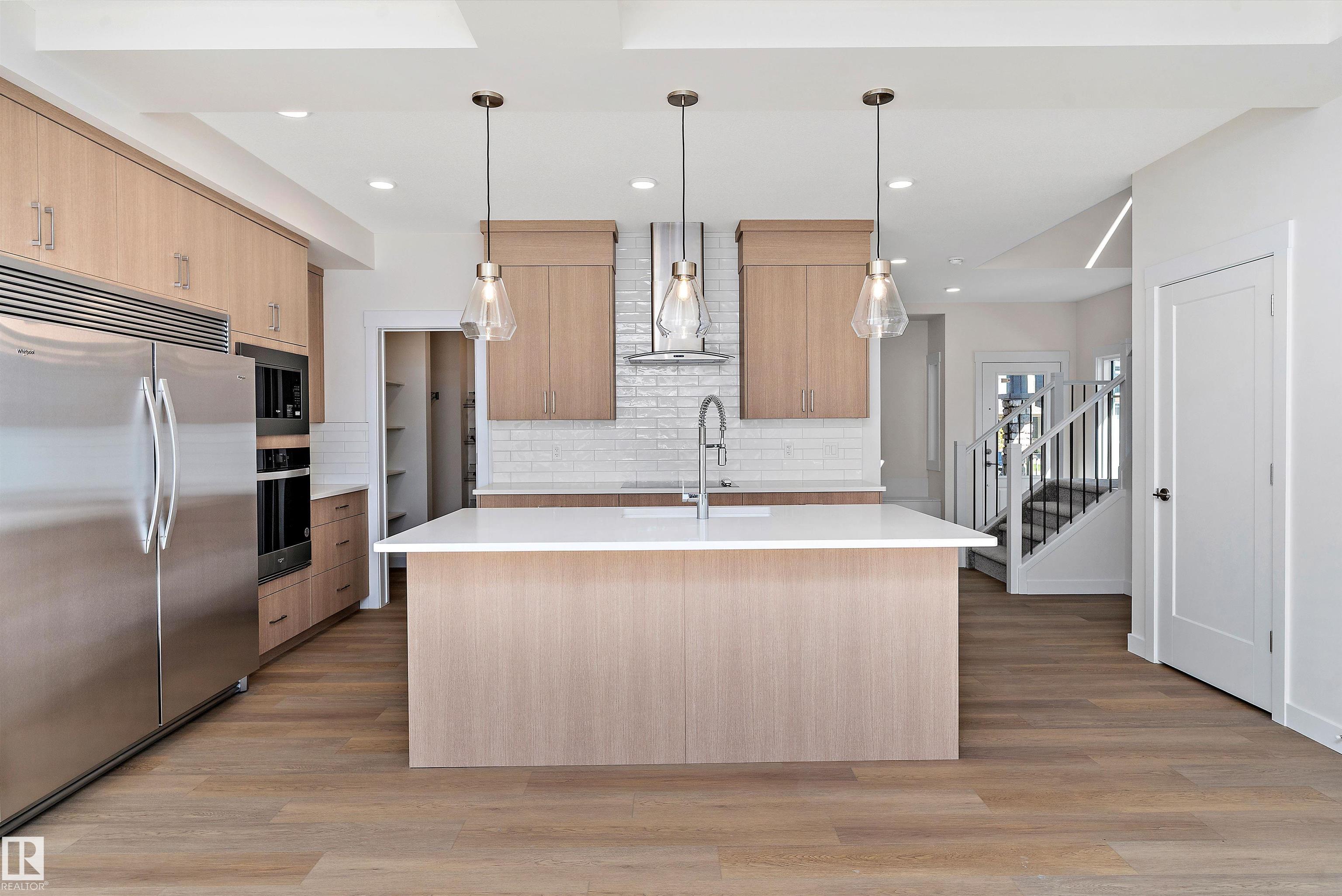 Discover your dream home in Crystallina! This brand new 2,164 sq ft two-storey Tofino model home built by City Homes, is loaded with over $40,000 in upgrades, situated in a pie shape lot, and ready for immediate possession! The main floor impresses with its open design, upgraded kitchen and appliance package, dining area that steps out to the included rear deck, and a spacious living room highlighted by a striking 60" electric fireplace. Upstairs offers a bright central bonus room with oversized slider window, a private primary suite with walk-in closet and ensuite with freestanding tub, plus two spacious additional bedrooms. Extras you'll love: elegant spindle railing, enlarged garage for added parking space, separate side entrance with suite potential, and basement rough-ins for laundry and sink. Situated in a family-friendly community close to schools, shopping, parks, and the Henday -- this home combines elevated living with sophisticated style. Don't miss this move-in ready opportunity!