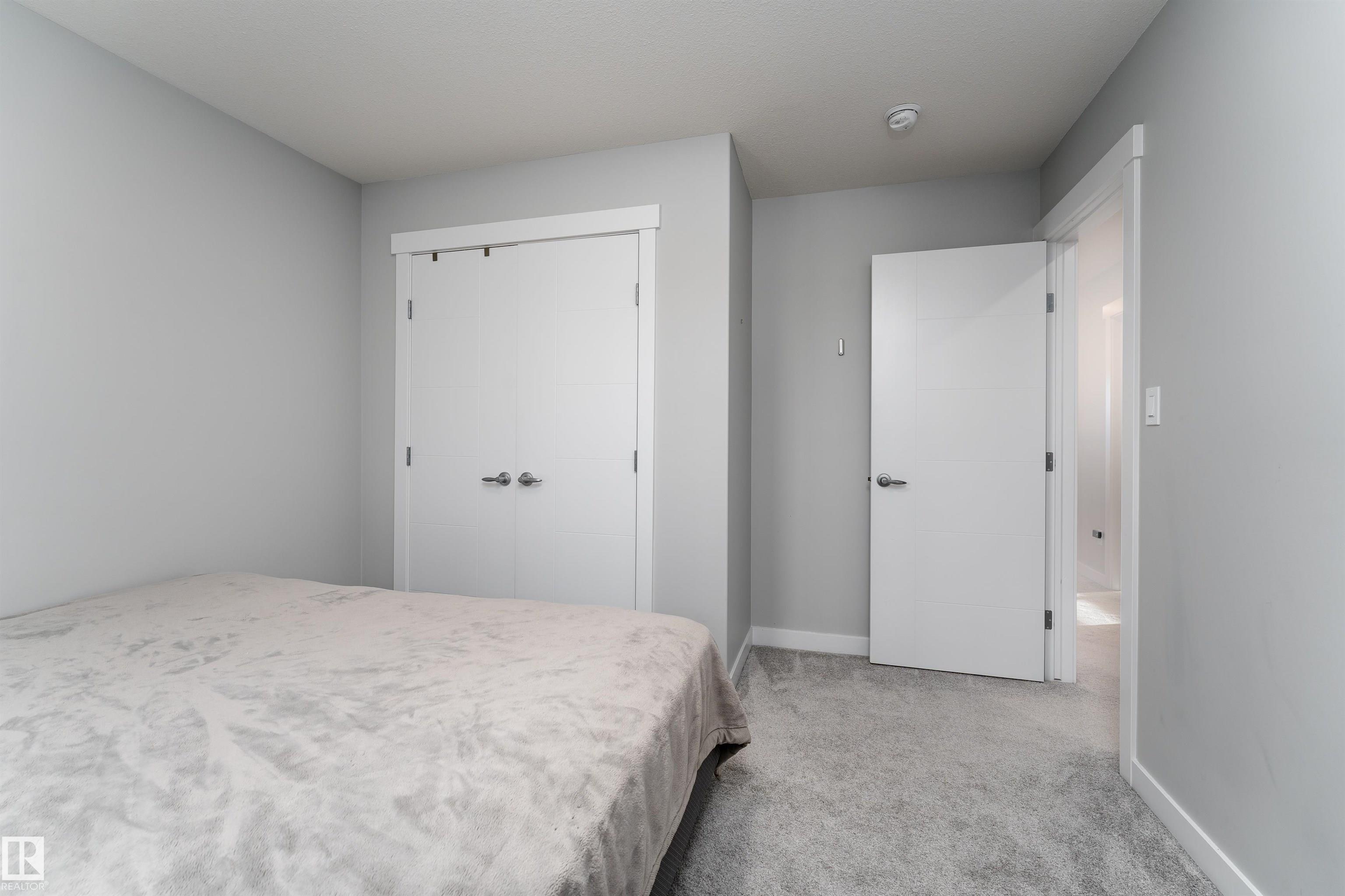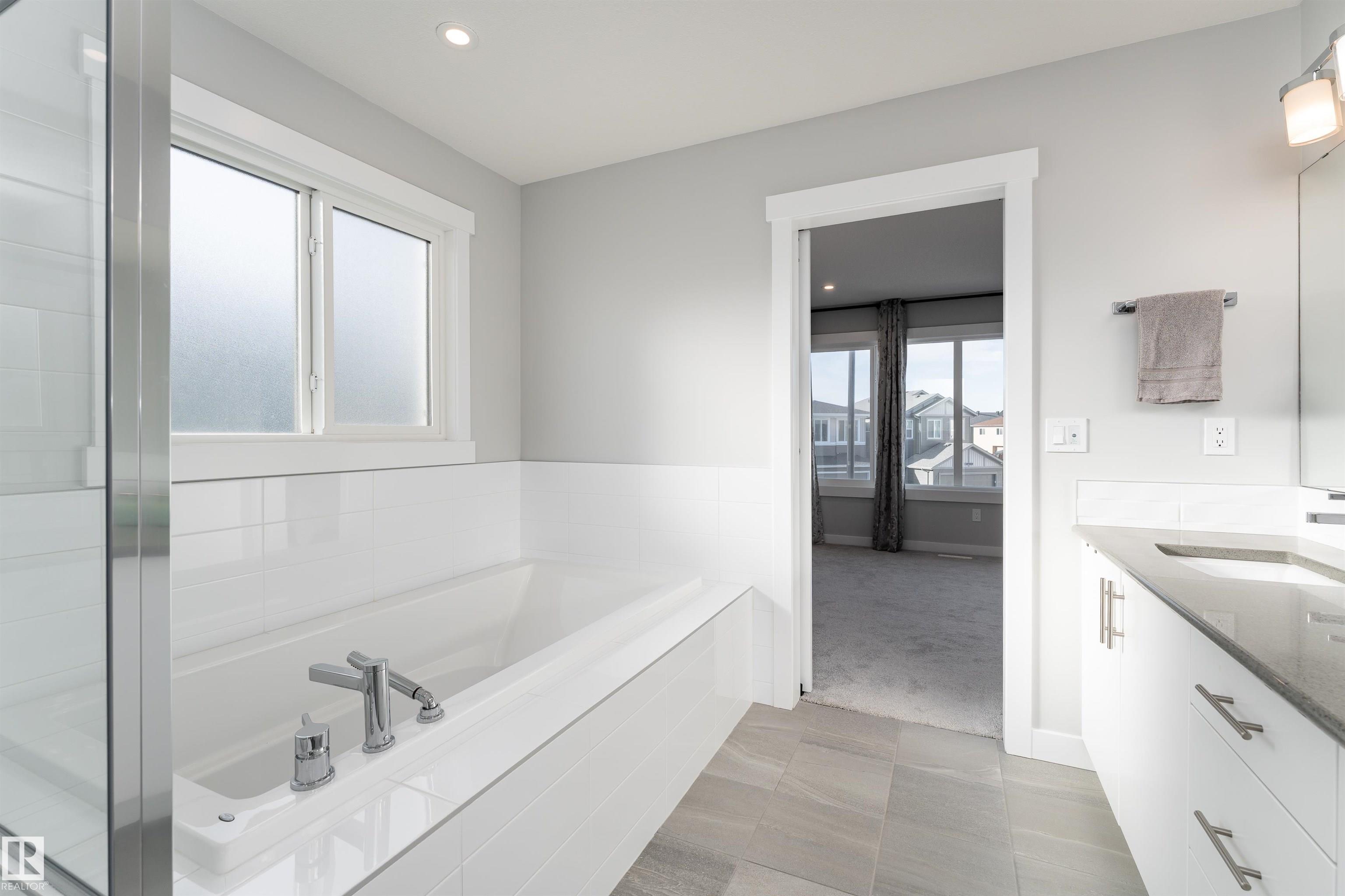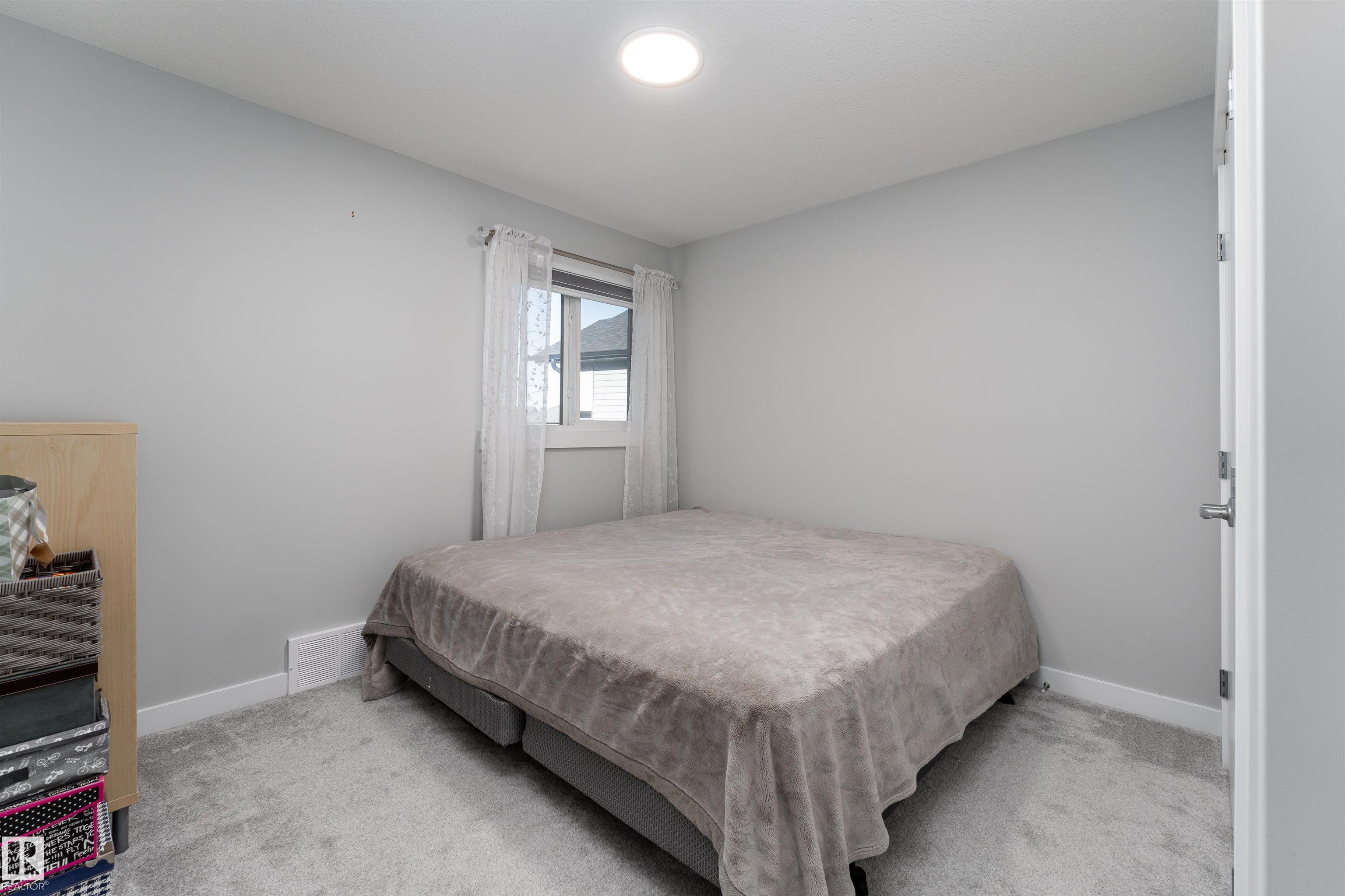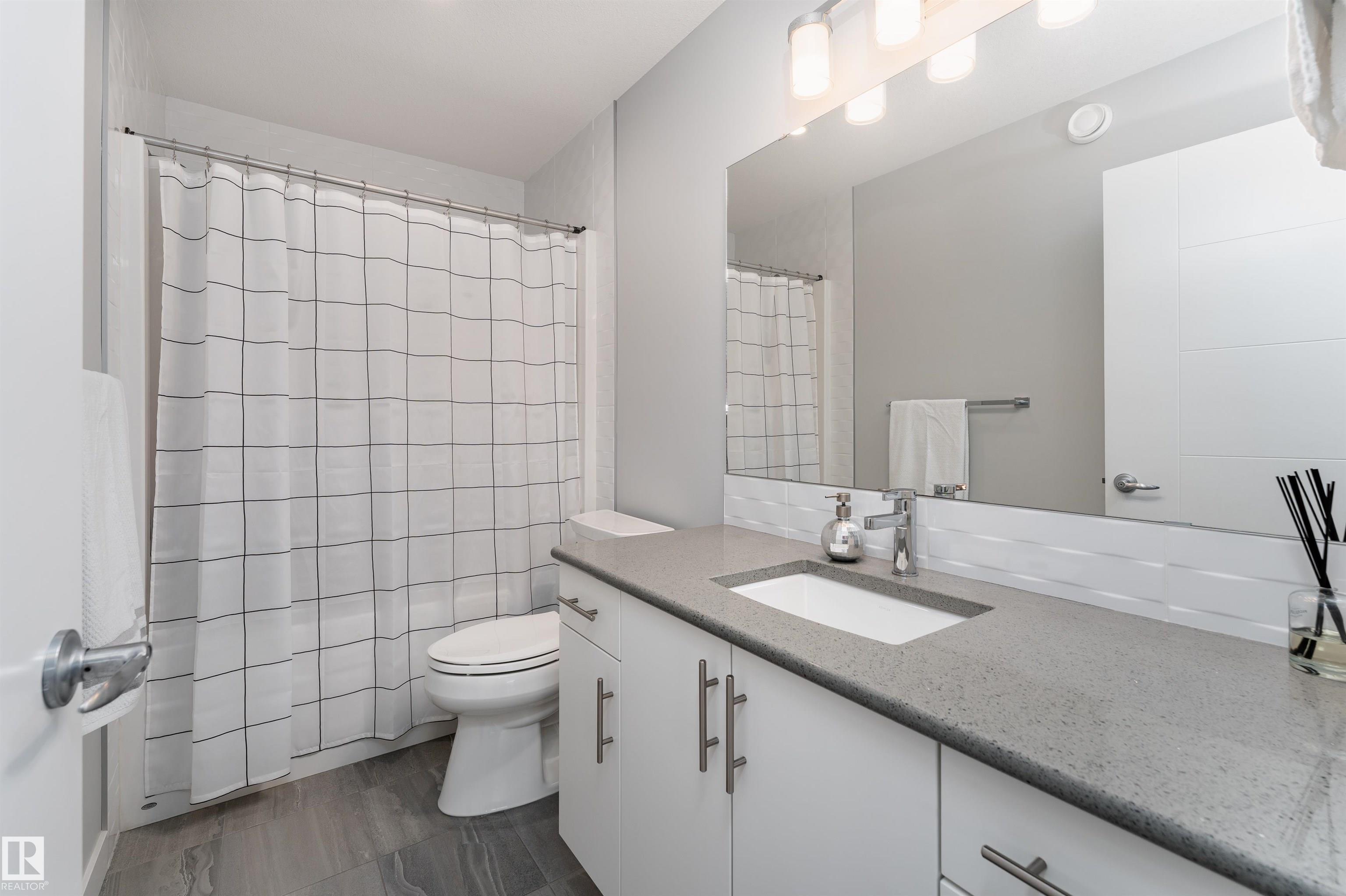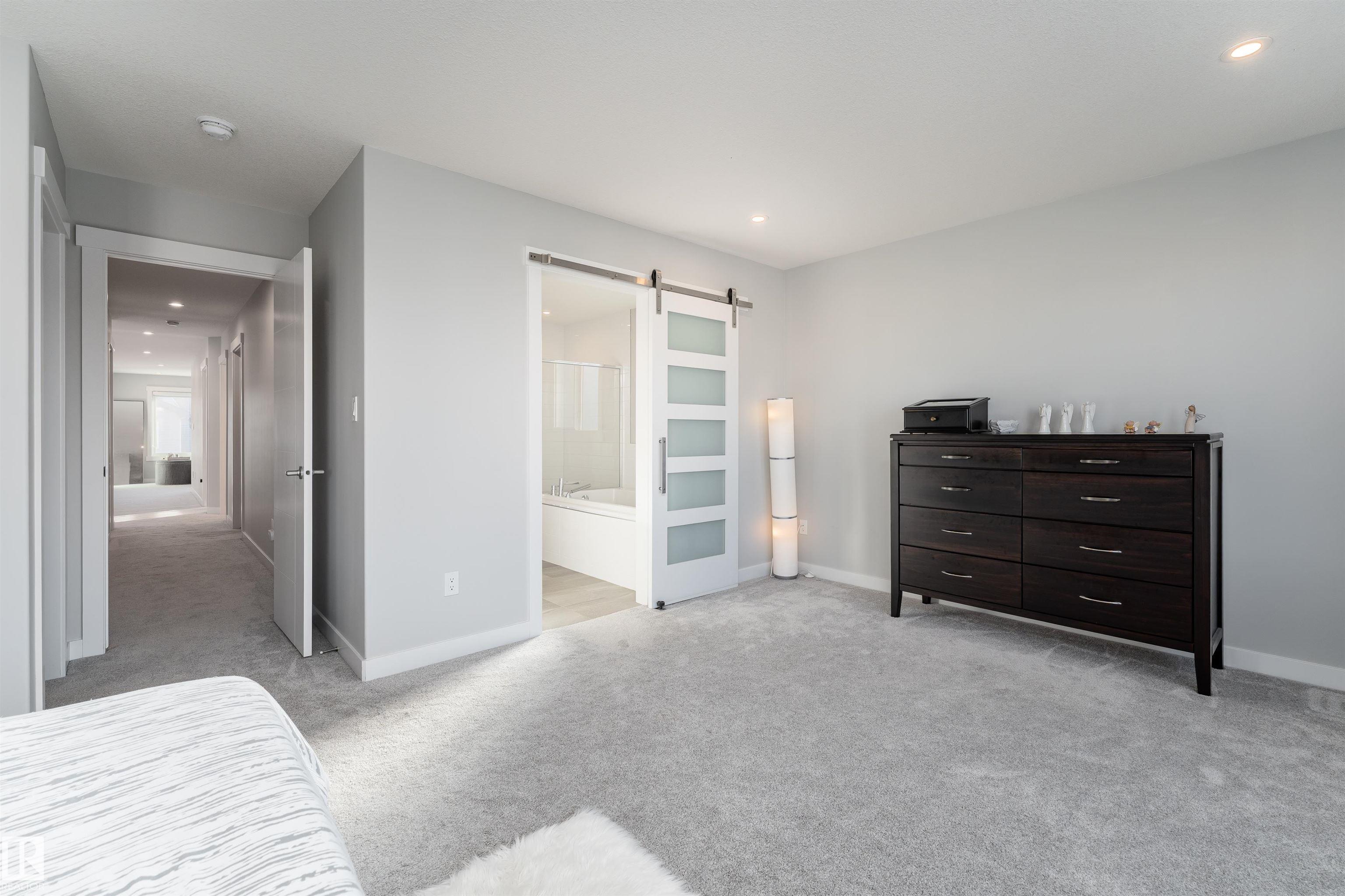 Move-in ready Coventry-built home offering upgraded, low-maintenance living on a quiet pie-shaped lot in a cul de sac! This stunning open-to-below floor plan features 3 bedrooms+den, 2.5 bathrooms, a cozy bonus room overlooking the living room, convenient upstairs laundry w/ sink & double-attached garage. The bright living room impresses w/ soaring ceilings, gas fireplace & is beautifully accented by upgraded railings. Chef's kitchen offers a massive island w/ extra storage, s/s appliances, gas stove, built-in wall oven & microwave, & glass cabinetry. The spacious primary retreat includes a sitting area, walk-in closet & spa-like ensuite w/ dual sinks, soaker tub & large shower. Enjoy countless upgrades: full concrete landscaped yard, finished stairs to the dbasement w/ rough-ins for bar & bath, 9ft ceilings on main & basement, fire pit, deck w/ glass cover, bench & organizers in mudroom, epoxy garage floors, water softener, tankless hot water & A/C. Convenient access to Anthony Henday & many amenities!