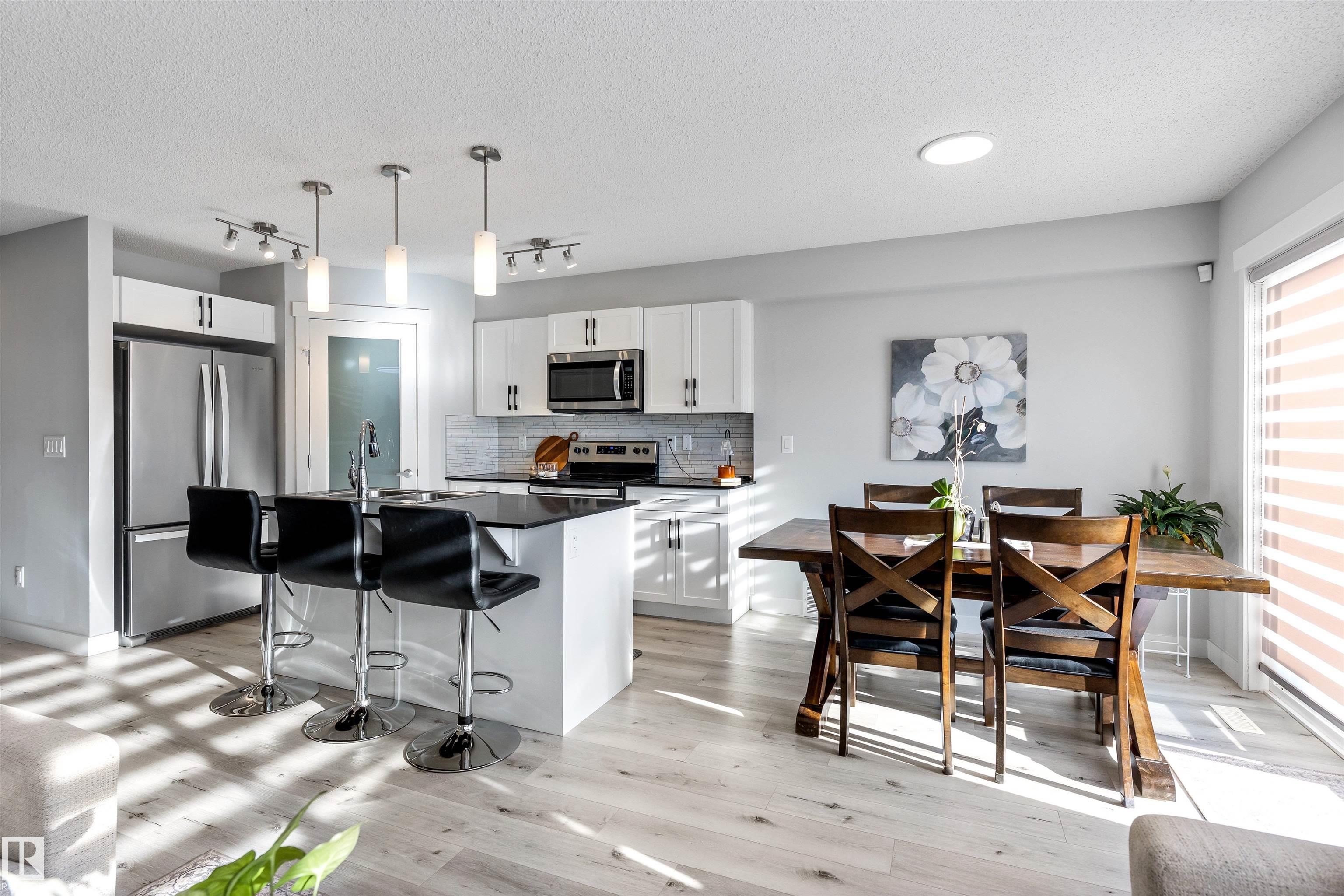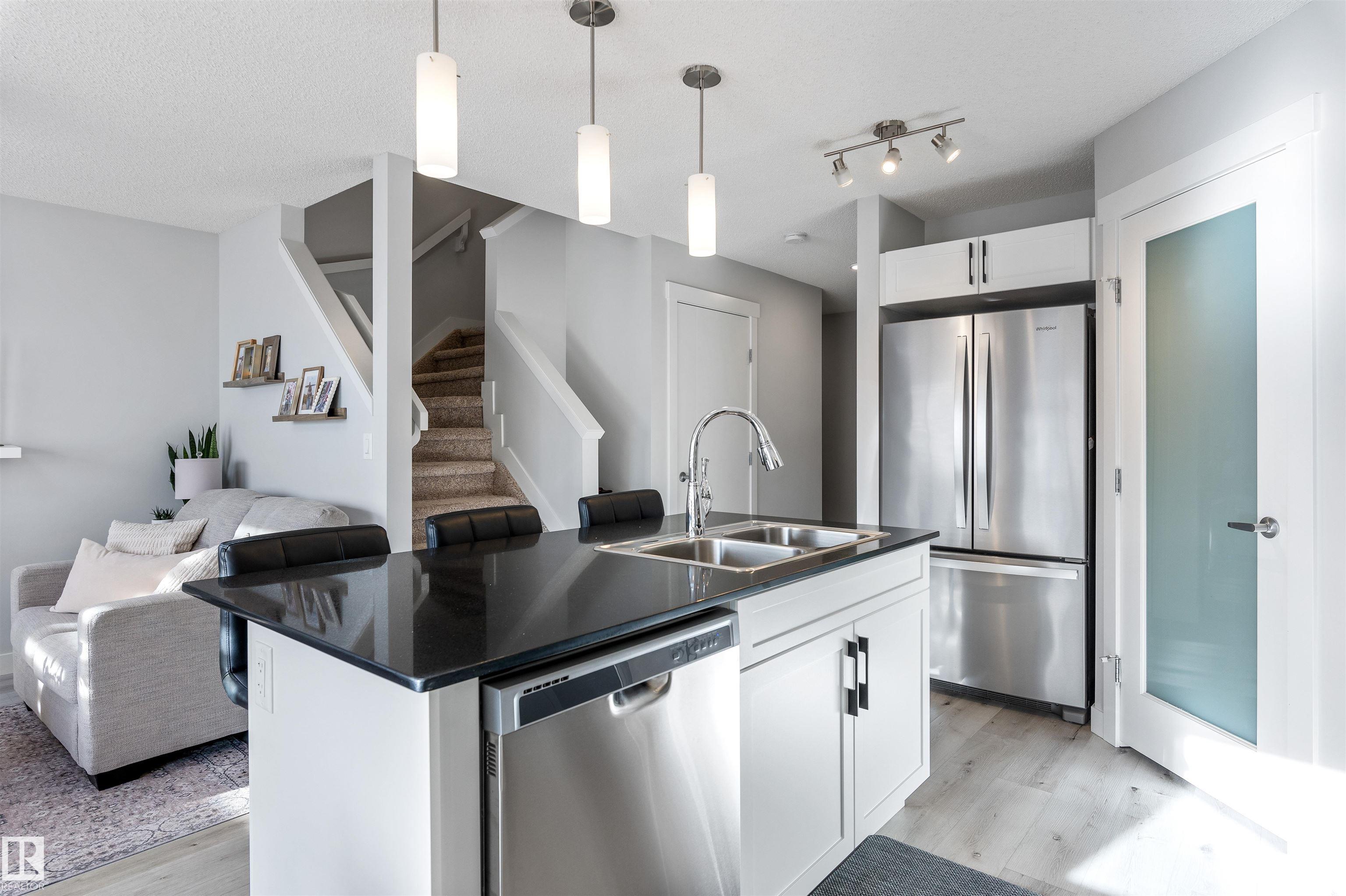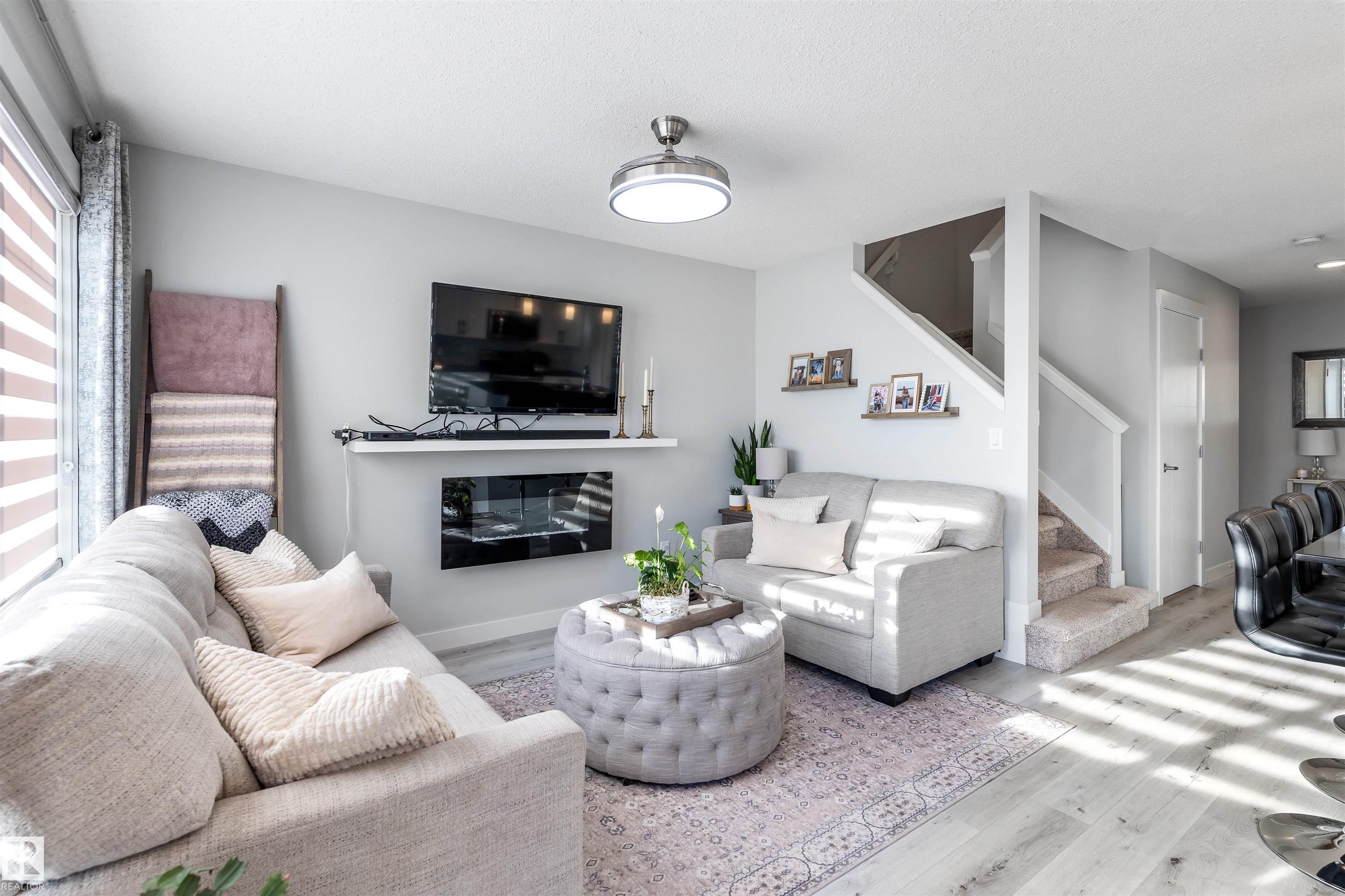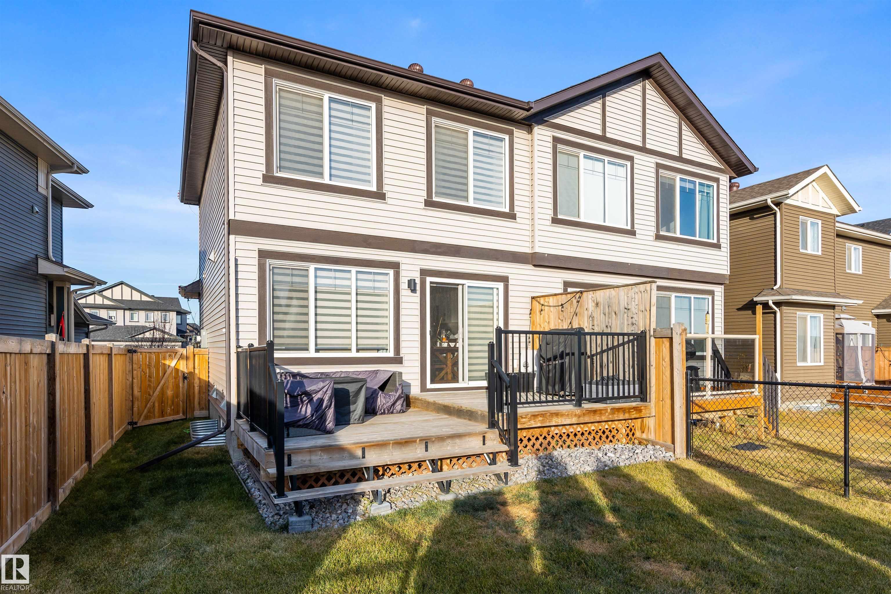 Welcome to this beautifully maintained 2 storey duplex in Crystallina Nera, offering a fully finished basement and thoughtful upgrades throughout. The bright, open main floor features a modern kitchen with stainless steel appliances, ample cabinet space, and a spacious living area perfect for entertaining. Upstairs you'll find three comfortable bedrooms, including a generous primary suite with walk in closet. The finished basement adds a large rec room, full bath, and extra storage, ideal for family, guests, or a home office. Enjoy the fully fenced yard, deck, and oversized single attached garage. Located on a quiet street close to parks, schools, shopping, and walking trails. Move in ready and perfect for first time buyers or investors!