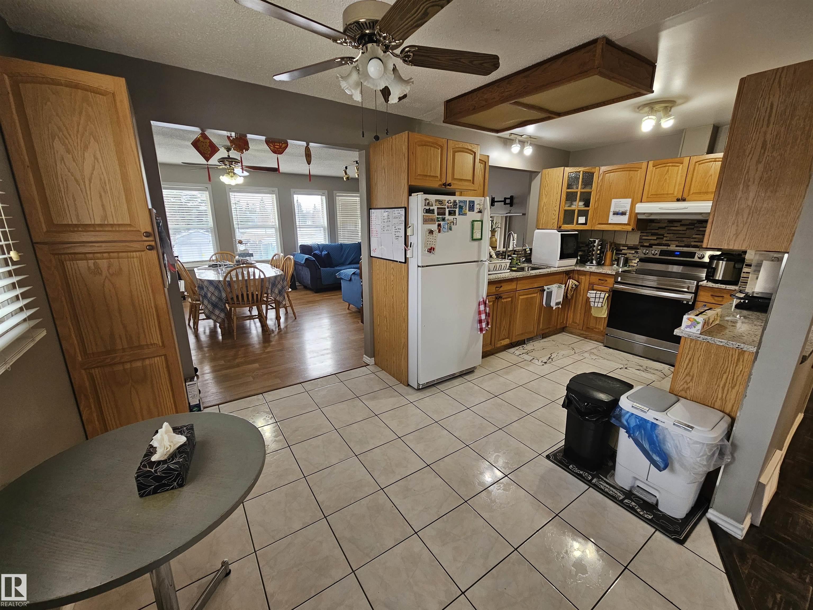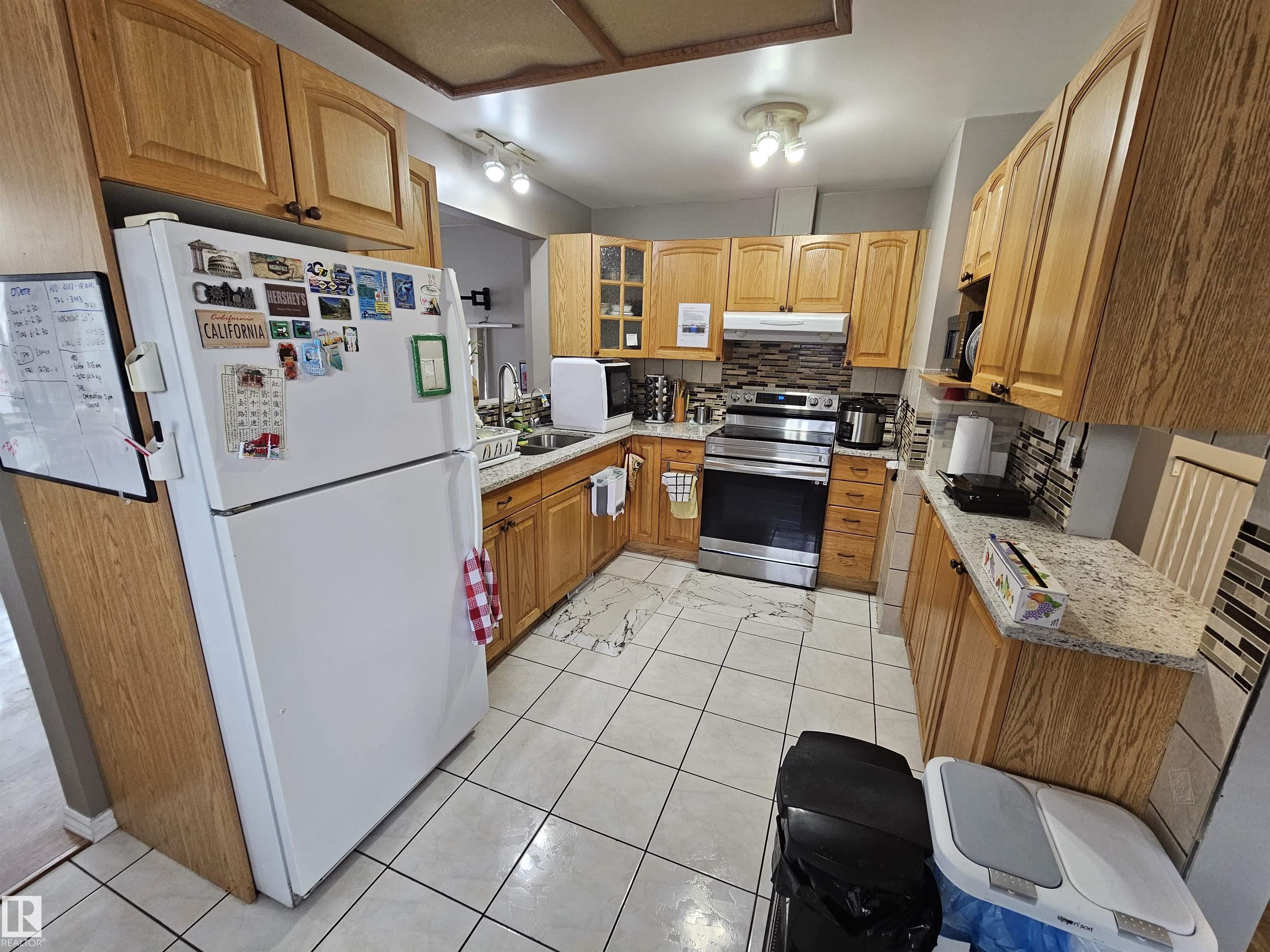 This beautiful bi-level home shows excellent. The custom, very open floor plan, offers both a living room at the front of the home & a spacious family room at the rear that has numerous large windows bringing in lots of natural light. It is open to the dining area that is just off the beautiful oak kitchen. It has many upgrades including quartz counter tops with matching backsplash, upgraded flooring, NEWER TRIPLE PANE windows and the furnace is approx. 5 yrs old. There are 3 good size bedrooms on the upper level & a big 4pc bathroom. The lower level has a full size rec room with a cozy gas fireplace, another huge bedroom with a walk in closet, a 3pc bathroom & full size laundry room. The deck leads to a fully fenced back yard that offers privacy, as there are no neighbors behind and a great view of the TD Baker School sports field. The garage is heated to keep your cars out of the cold winter. The home is in an excellent location, close to schools & public bus route.