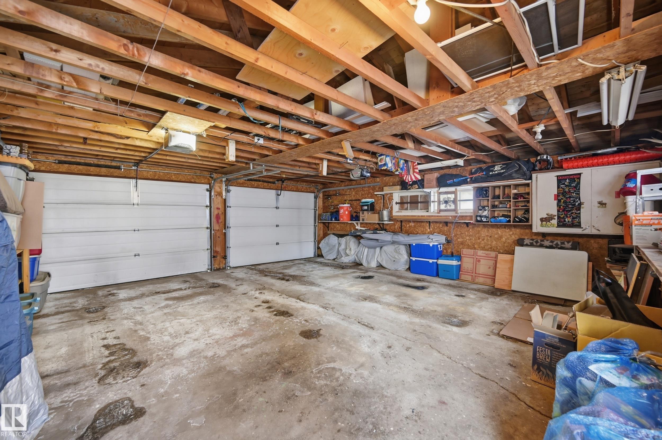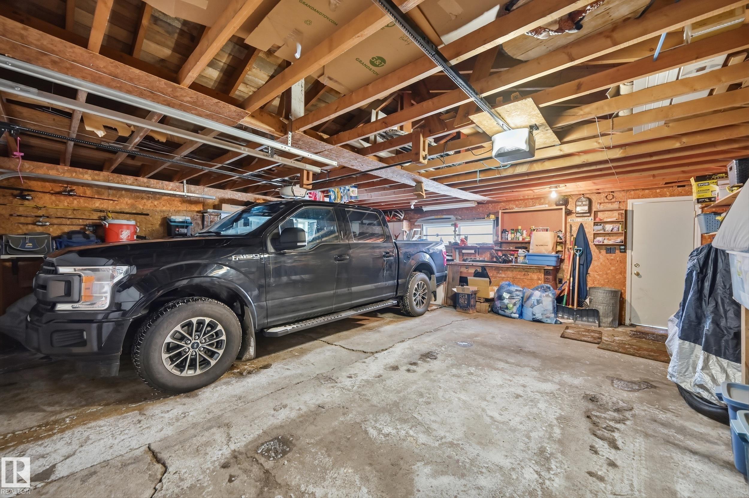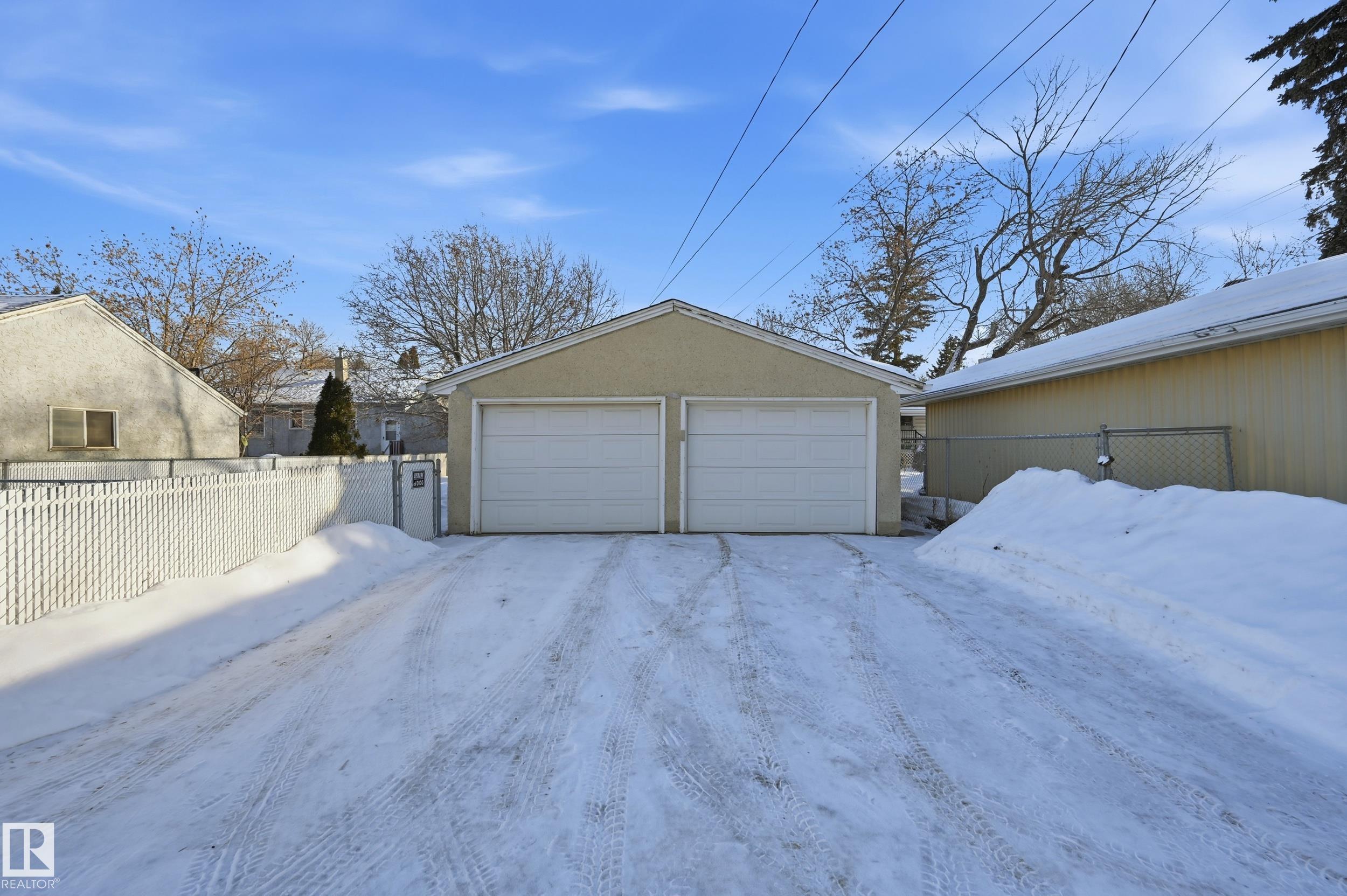 Fabulous property offering numerous upgrades and excellent long-term value, ideally situated on a generous 47' x 140' lot in a quiet no-thru-traffic location. The main floor features hardwood flooring, an updated 4-pc bathroom, spacious bedrooms, and a functional layout well suited for families or investors alike. The bright basement includes large windows, a renovated 3-pc bathroom, and a separate rear entrance, providing strong potential for a future basement suite. Outdoors, enjoy a west-facing backyard surrounded by mature trees for exceptional privacy, complete with landscaping, garden space, and a 12' x 16' deck--perfect for summer evenings. This home has been thoughtfully updated over the years with newer shingles, furnace, hot water tank (2024), refrigerator and stove (2024), flooring, lighting, and mostly newer windows. An oversized double garage easily accommodates full-sized trucks, while additional front and rear parking adds everyday convenience. A truly move-in-ready home!