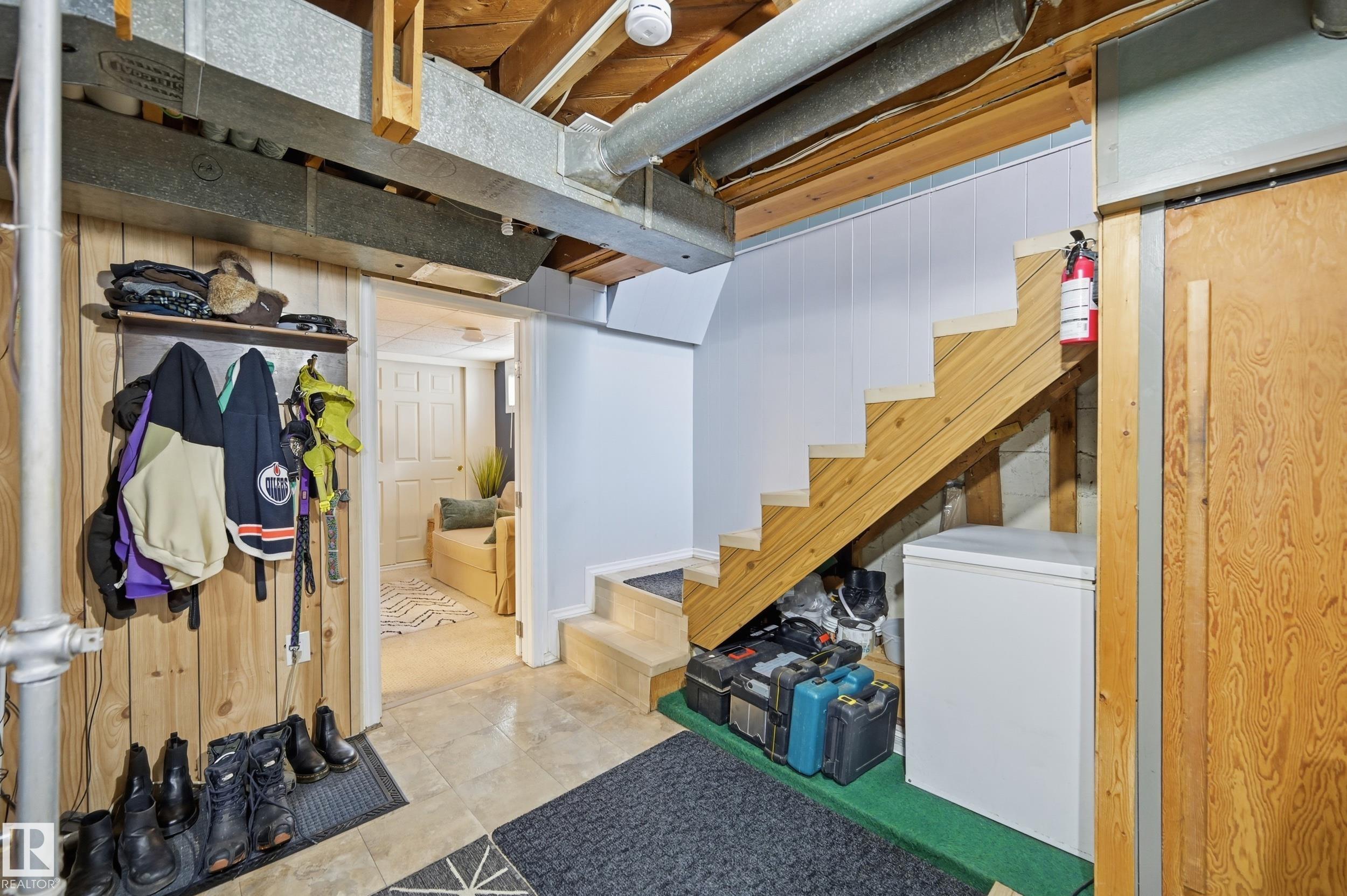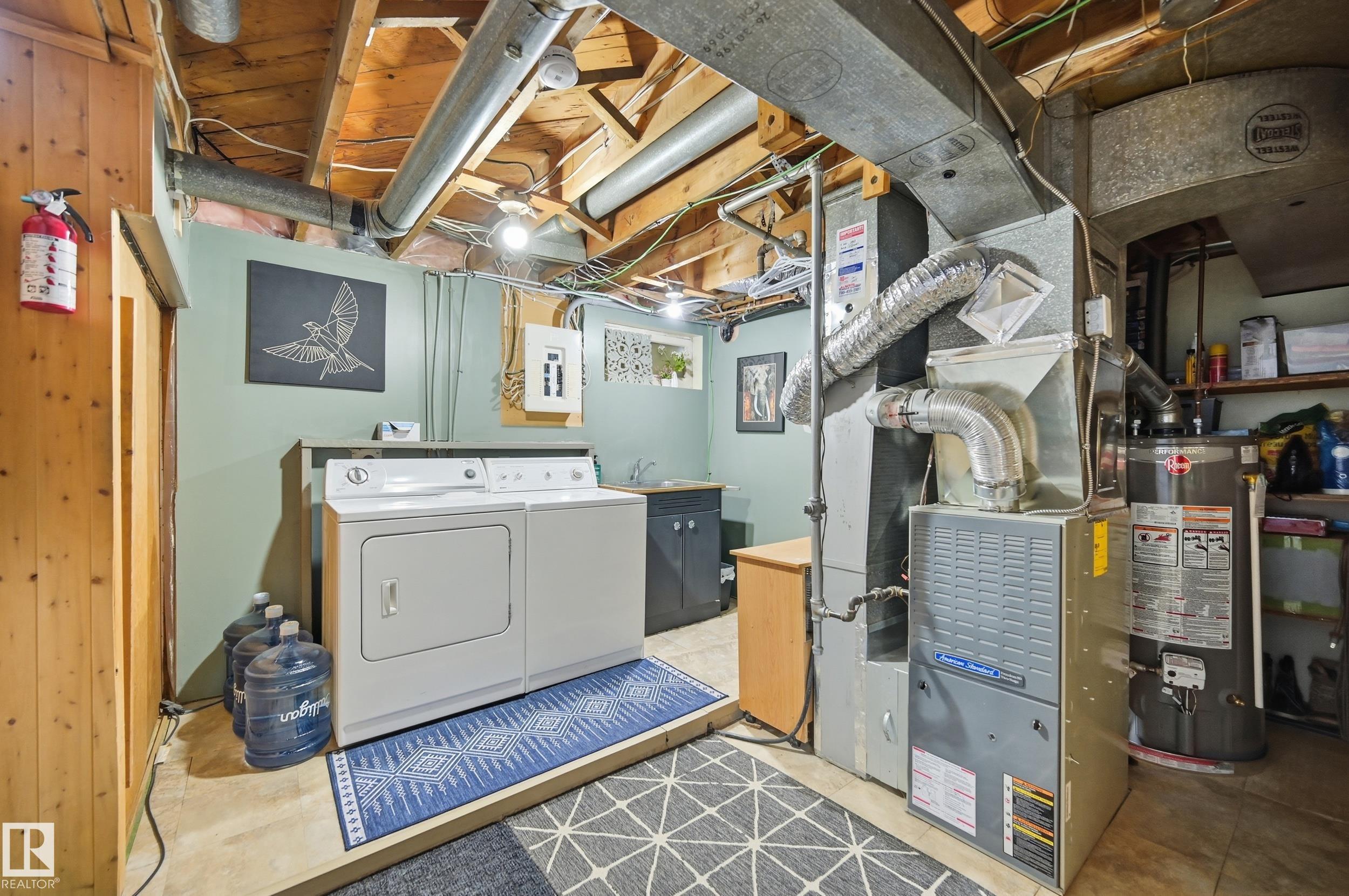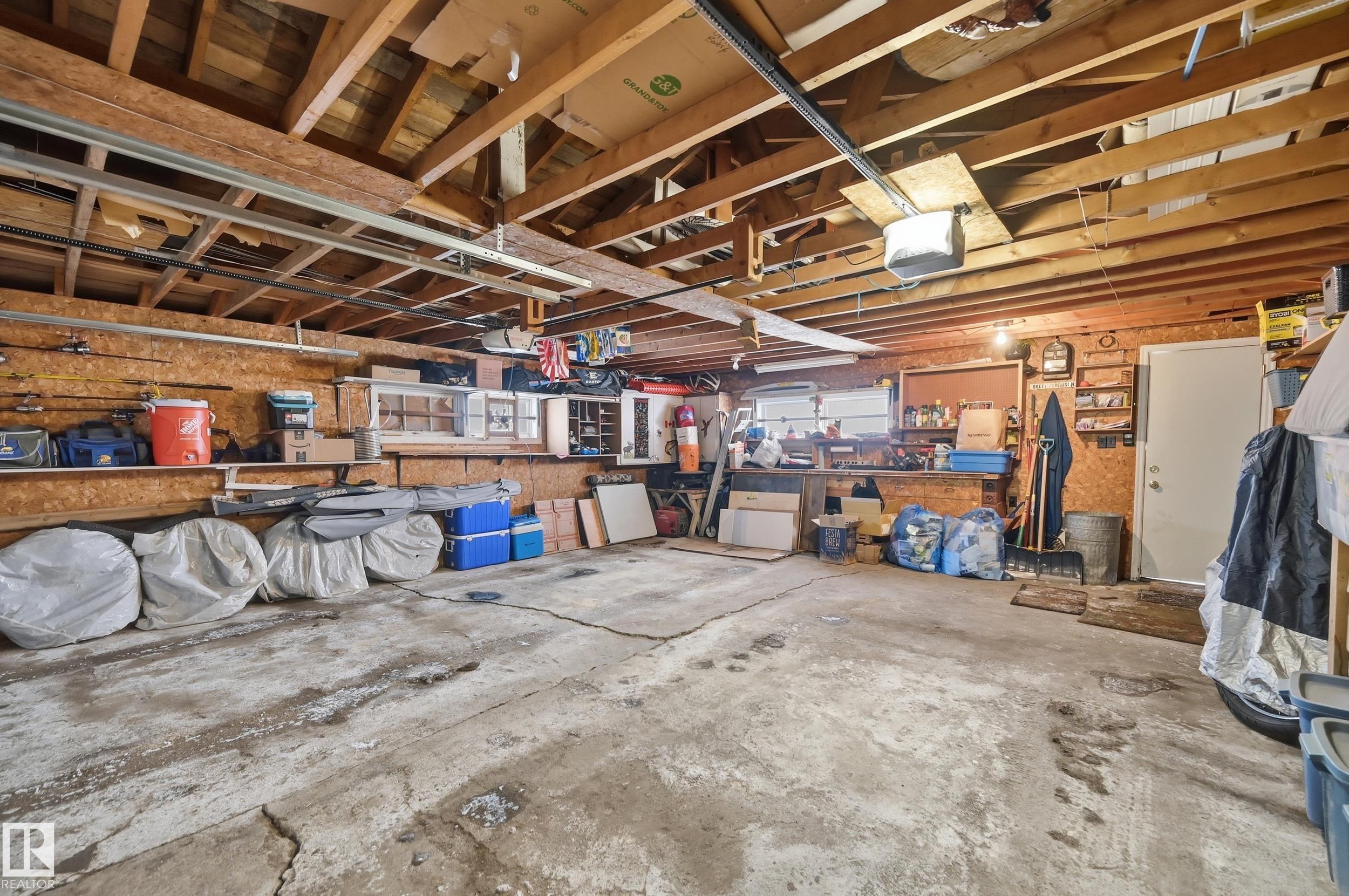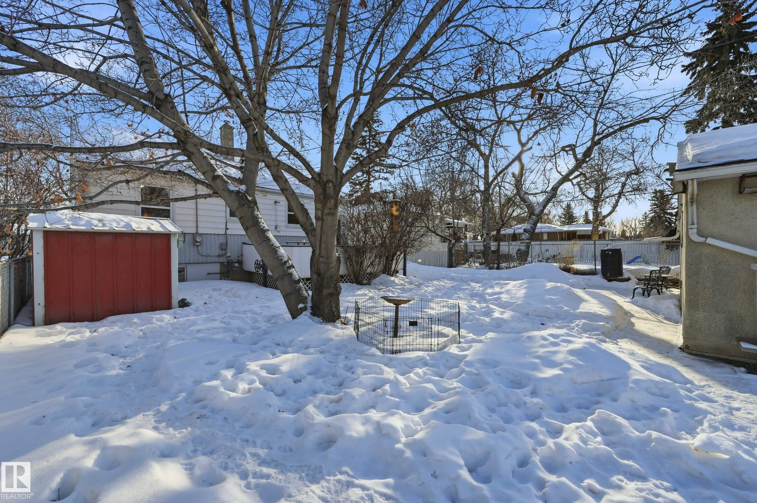 Fabulous property offering numerous upgrades and excellent long-term value, ideally situated on a generous 47' x 140' lot in a quiet no-thru-traffic location. The main floor features hardwood flooring, an updated 4-pc bathroom, spacious bedrooms, and a functional layout well suited for families or investors alike. The bright basement includes large windows, a renovated 3-pc bathroom, and a separate rear entrance, providing strong potential for a future basement suite. Outdoors, enjoy a west-facing backyard surrounded by mature trees for exceptional privacy, complete with landscaping, garden space, and a 12' x 16' deck--perfect for summer evenings. This home has been thoughtfully updated over the years with newer shingles, furnace, hot water tank (2024), refrigerator and stove (2024), flooring, lighting, and mostly newer windows. An oversized double garage easily accommodates full-sized trucks, while additional front and rear parking adds everyday convenience. A truly move-in-ready home!