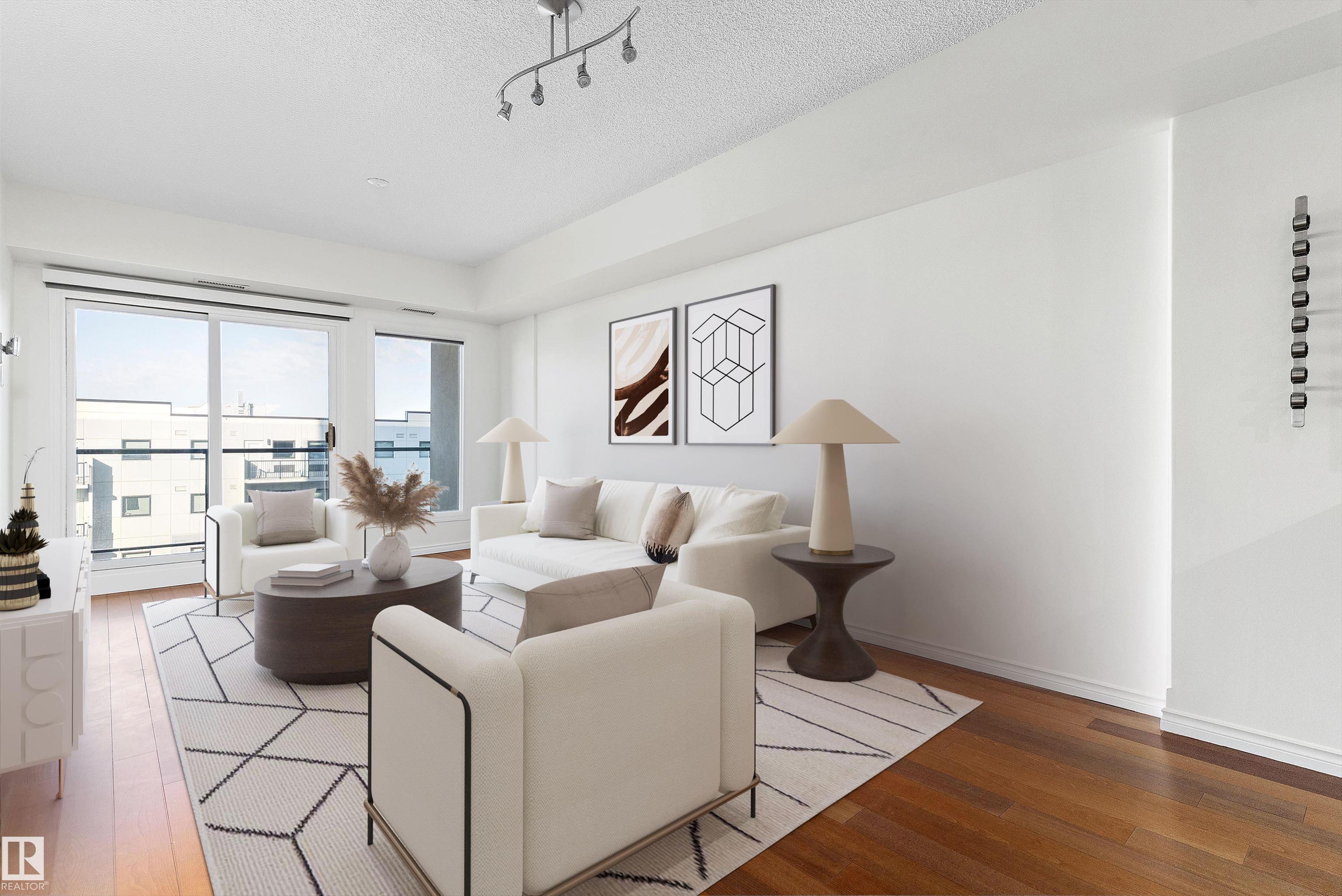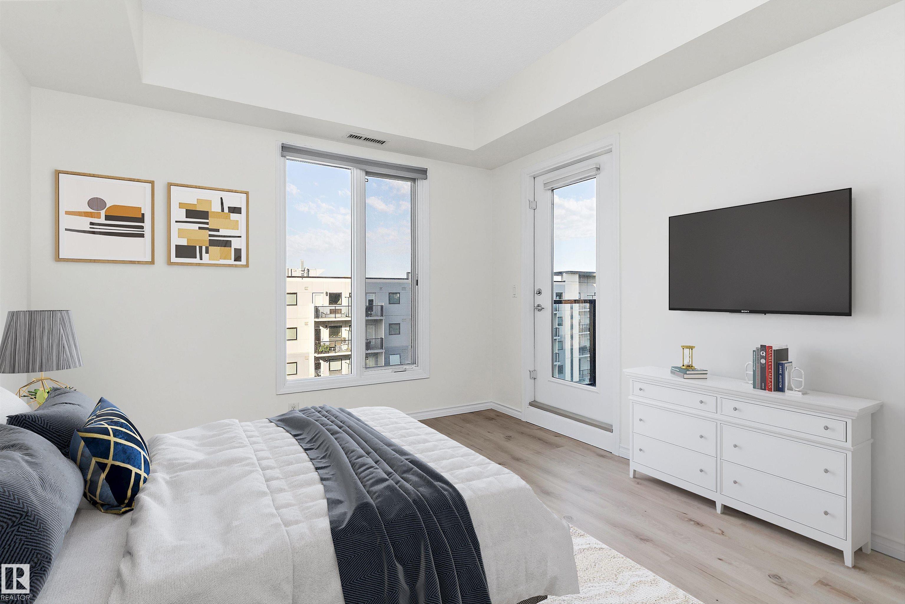 Welcome to Wihkwentowin in Edmonton concrete high-rise unit condo located in Alta Vista South. Close to MacEwan University and steps to LRT, Wihkwentowin Square Shopping, City Center and the River Valley. This meticulously well kept suite with incredible windows has unstoppable west facing natural light comes with stunning sunsets and city views. This 799 sqft, 2 bedroom, 1 bathroom + underground parking stall ( labeled 59 on P1). Featuring an open floor plan with light hardwood floors, upgraded vinyl plank flooring in the bedrooms , stainless steel appliances ,In-suite laundry, air conditioning and a HUGE WEST facing balcony with gas hook up. Alta Vista South has a gym, guest suite that can be rented short term for visitors and a meeting room. It is also part of a well-managed complex which is very secure . Live in the heart of Downtown in one of Edmonton's most popular condo buildings.