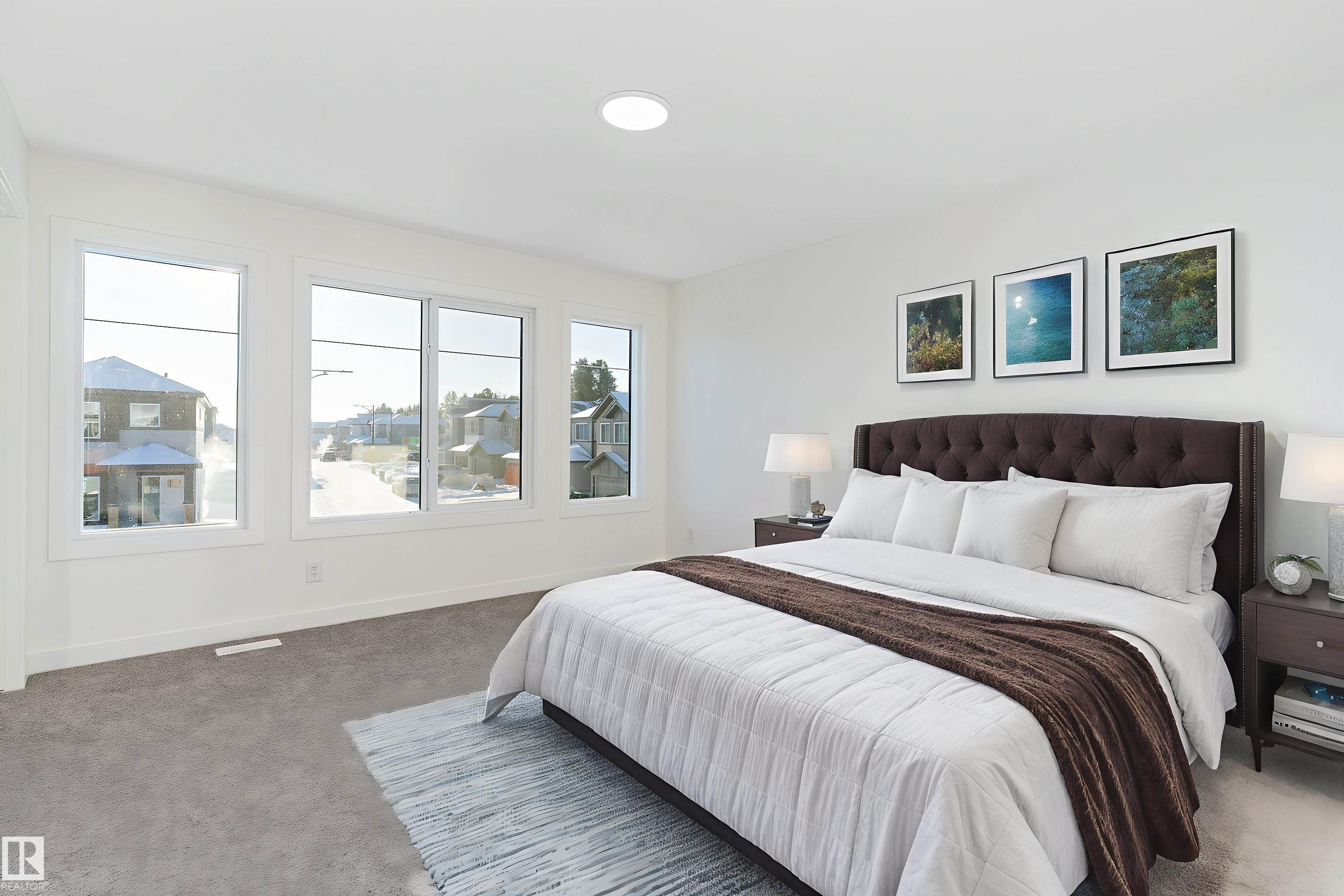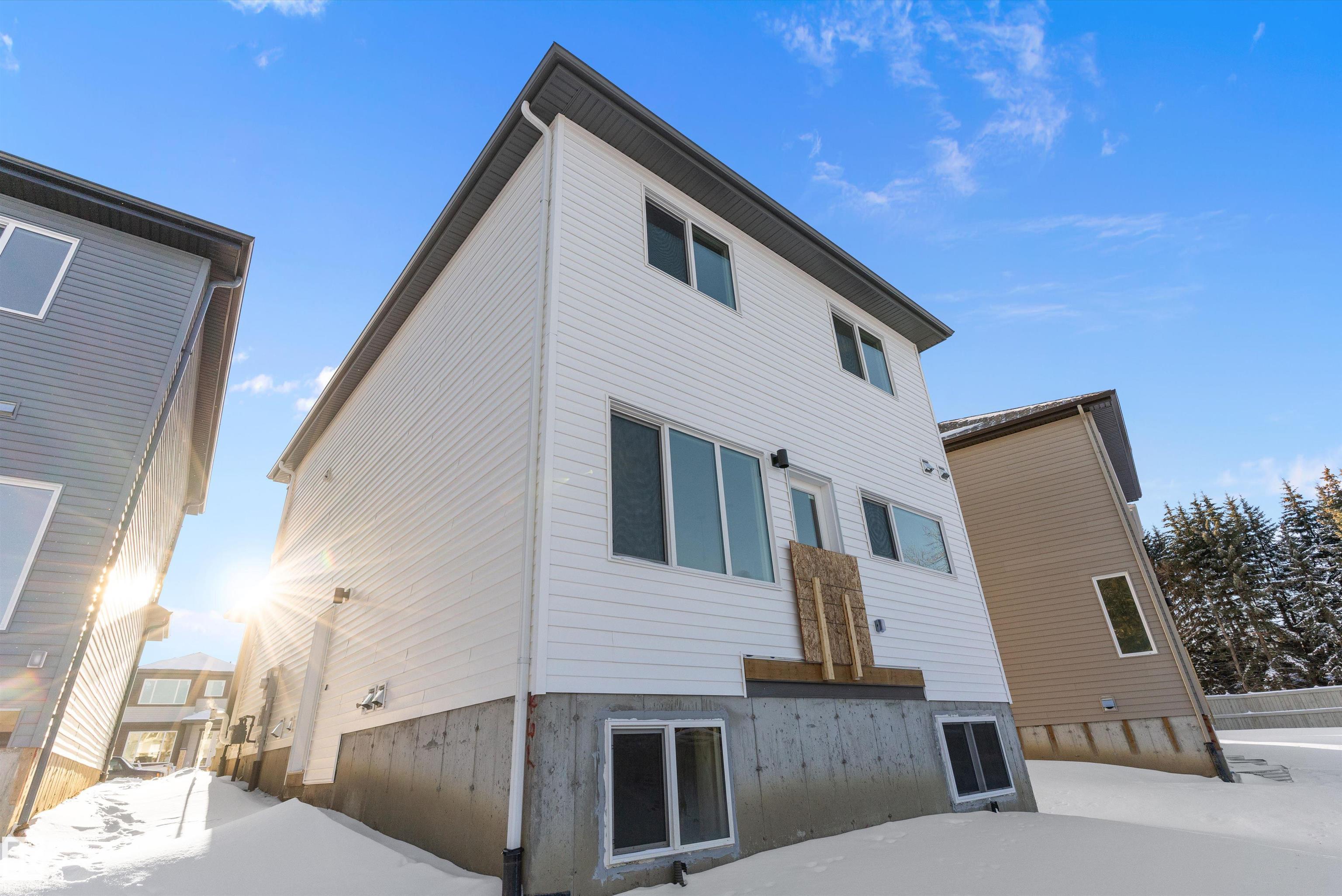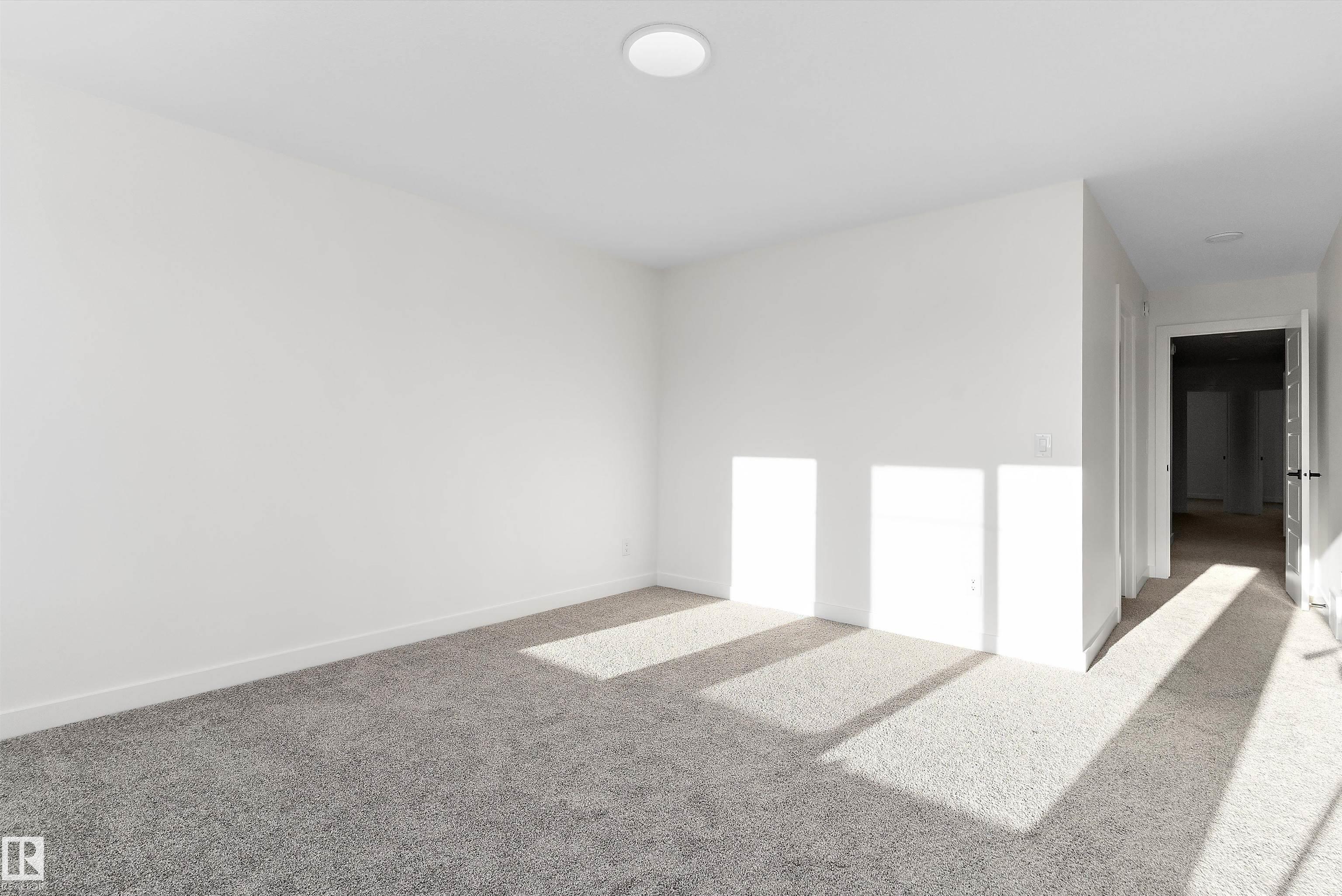Welcome to the Atlas by Sterling Homes, a well-designed 2,386 sq. ft. home offering space, comfort, and versatility. This popular model features a double attached garage with floor drain, 9' ceilings on the main and lower levels, luxury vinyl plank flooring, and a separate side entrance. The main floor includes a welcoming foyer, mudroom with garage access, a full 3-piece bath with walk-in shower, and a convenient 5th bedroom of the home. The kitchen is the heart of the home with quartz countertops, a large island with flush eating ledge, soft-close cabinetry, chimney-style hood fan, full-height tile backsplash, pendant lighting, built-in microwave, roughed-in gas line for future gas stove, and a tucked-away spice kitchen with a hood fan behind a pocket door. The bright great room with fireplace opens to the dining area and backyard. Upstairs offers a spacious primary suite with dual walk-in closets and 5-piece ensuite, plus three additional bedrooms, bonus room, laundry, and a full bath.