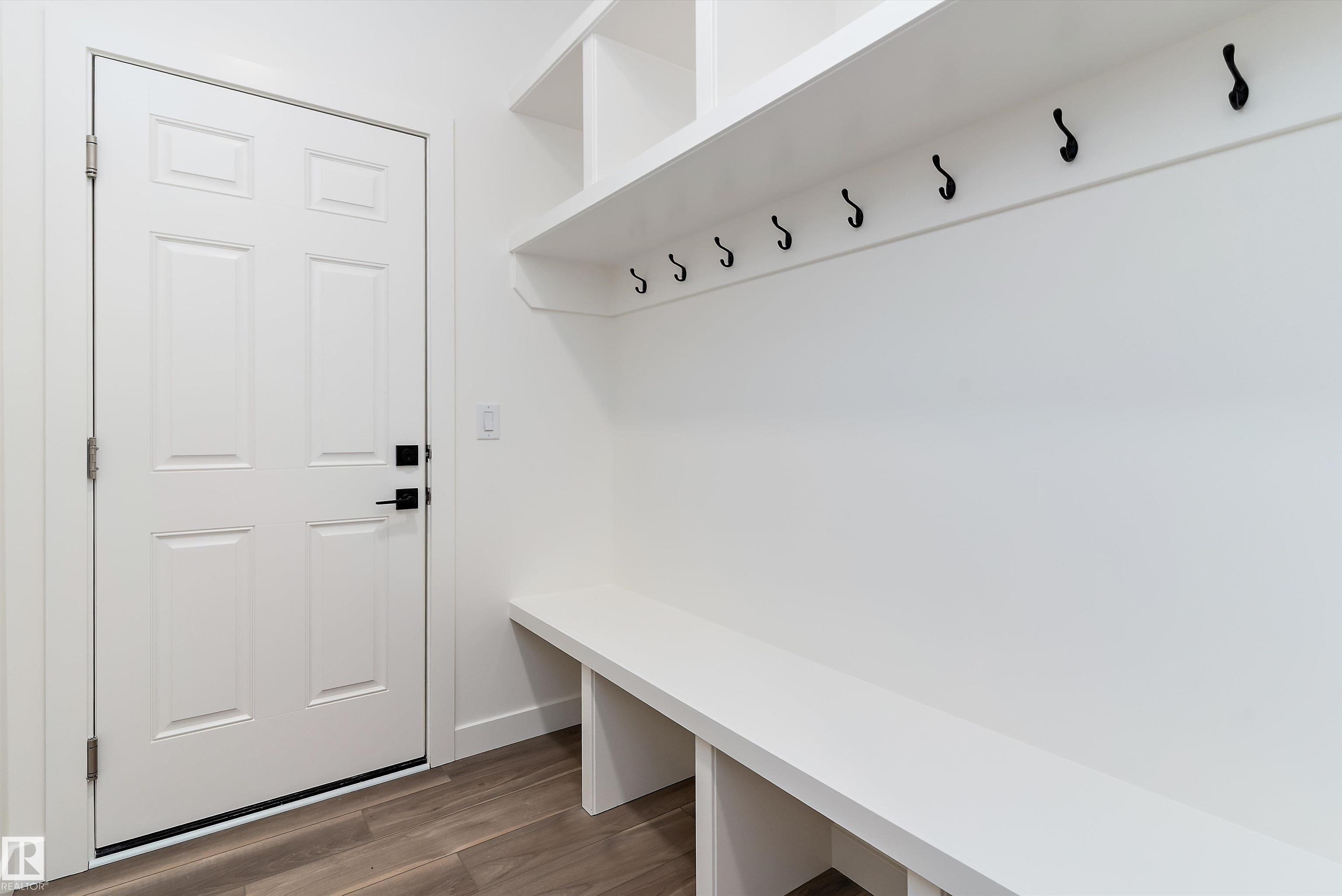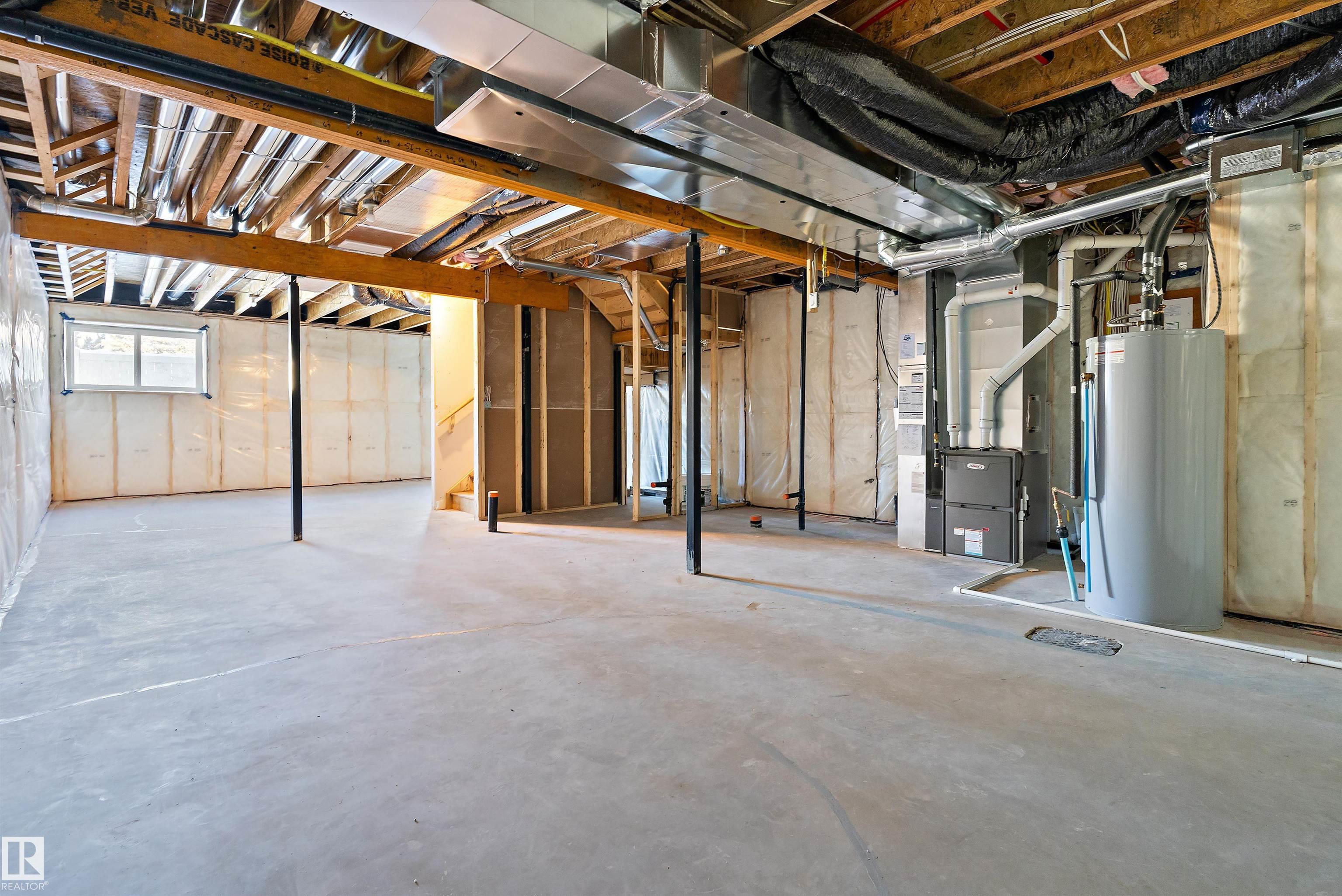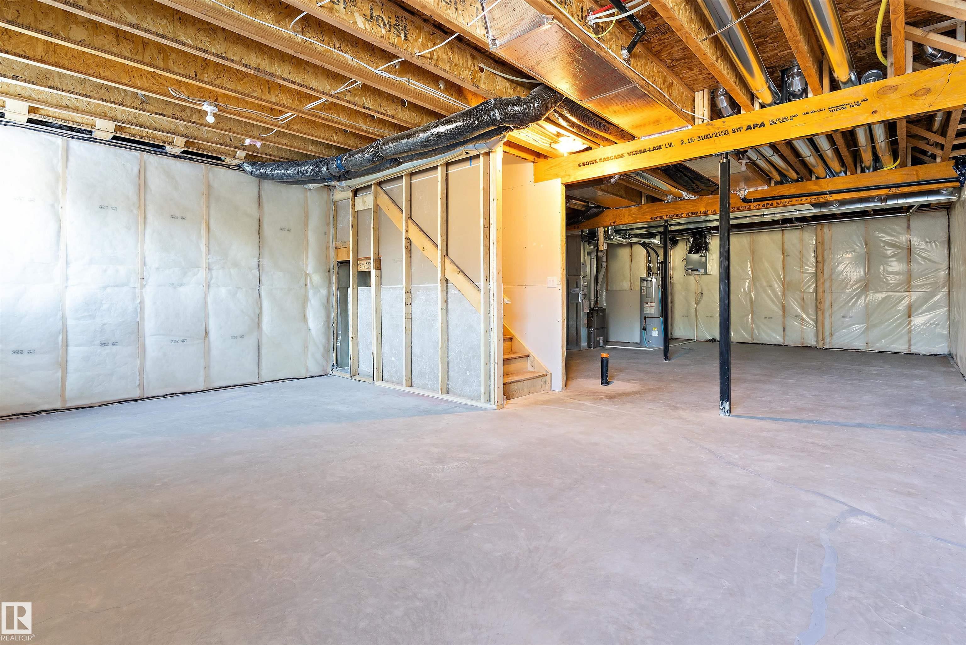 Welcome to the Atlas by Sterling Homes, a well-designed 2,386 sq. ft. home offering space, comfort, and versatility. This popular model features a double attached garage with floor drain, 9' ceilings on the main and lower levels, luxury vinyl plank flooring, and a separate side entrance. The main floor includes a welcoming foyer, mudroom with garage access, a full 3-piece bath with walk-in shower, and a convenient 5th bedroom of the home. The kitchen is the heart of the home with quartz countertops, a large island with flush eating ledge, soft-close cabinetry, chimney-style hood fan, full-height tile backsplash, pendant lighting, built-in microwave, roughed-in gas line for future gas stove, and a tucked-away spice kitchen with a hood fan behind a pocket door. The bright great room with fireplace opens to the dining area and backyard. Upstairs offers a spacious primary suite with dual walk-in closets and 5-piece ensuite, plus three additional bedrooms, bonus room, laundry, and a full bath.
