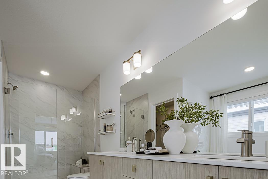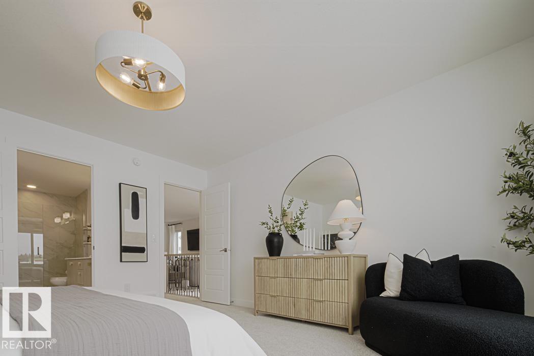 Designed for everyday living, this home offers an efficient open layout w/ 9' ceilings on main & basement and LVP flr on main. Welcoming foyer w/ long coat closet, plus mud room off double attached garagew/ bench & floor drain. Side entrance adds flexibility. Main flr den w/ walk-in closet works well as office or guest space, plus convenient 2-pc bath. Open nook, kitchen & great rm create easy flow. Bright kitchen w/ island, pendant lighting, flush eating ledge, undermount sink, modern hood fan, full-height tile backsplash, built-in microwave, soft-close cabinets & drawers, and corner pantry. Great rm w/ fireplace & custom mantle. Large windows and garden door lead to backyard. Upstairs: primary w/ walk-in closet & 5-pc ensuite (dbl sinks, tub, glass shower), bonus rm open-to-below, upper laundry, 3 additional bedrooms w/ good closet space & 3-pc bath. Upgraded railings & basement rough-ins included.