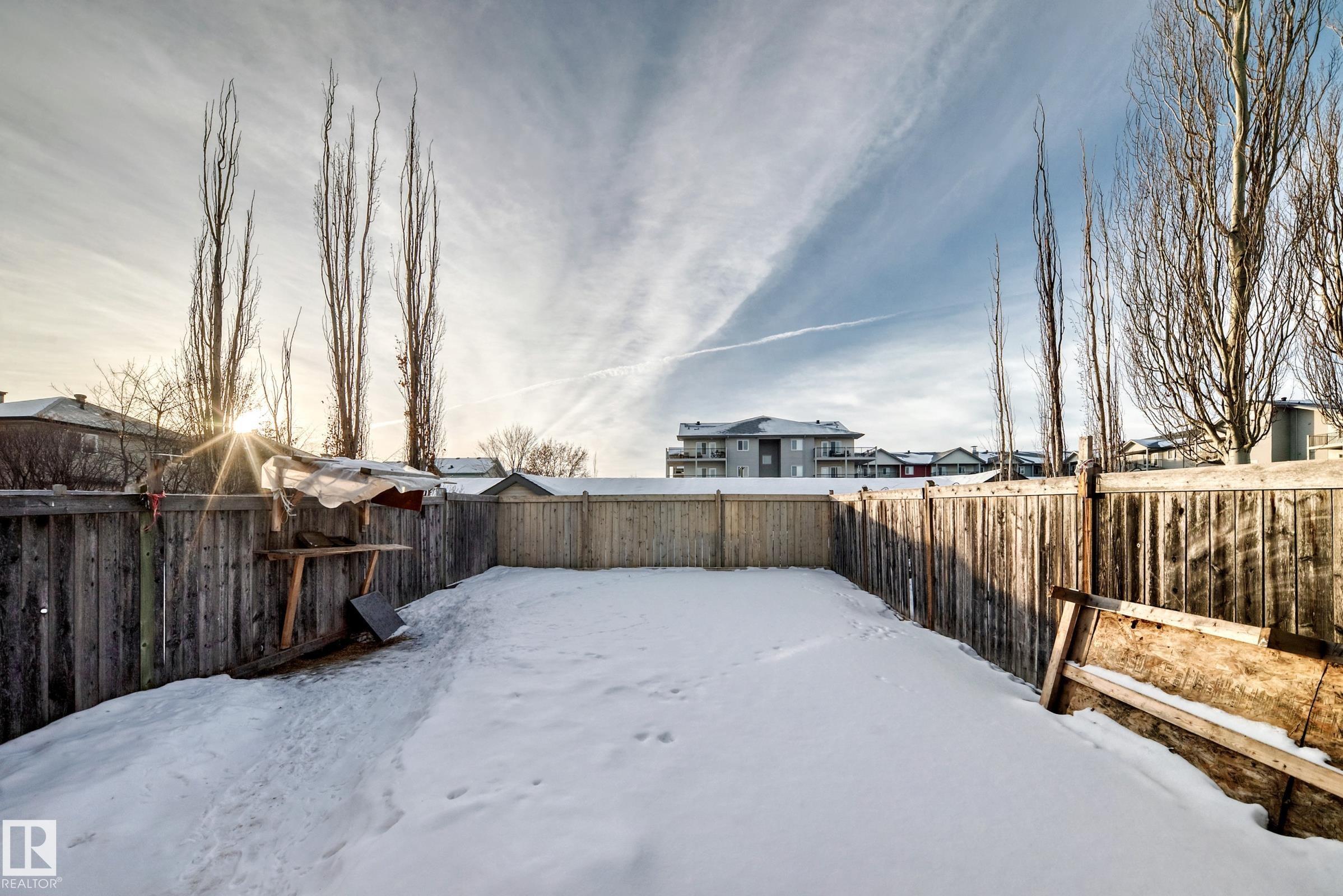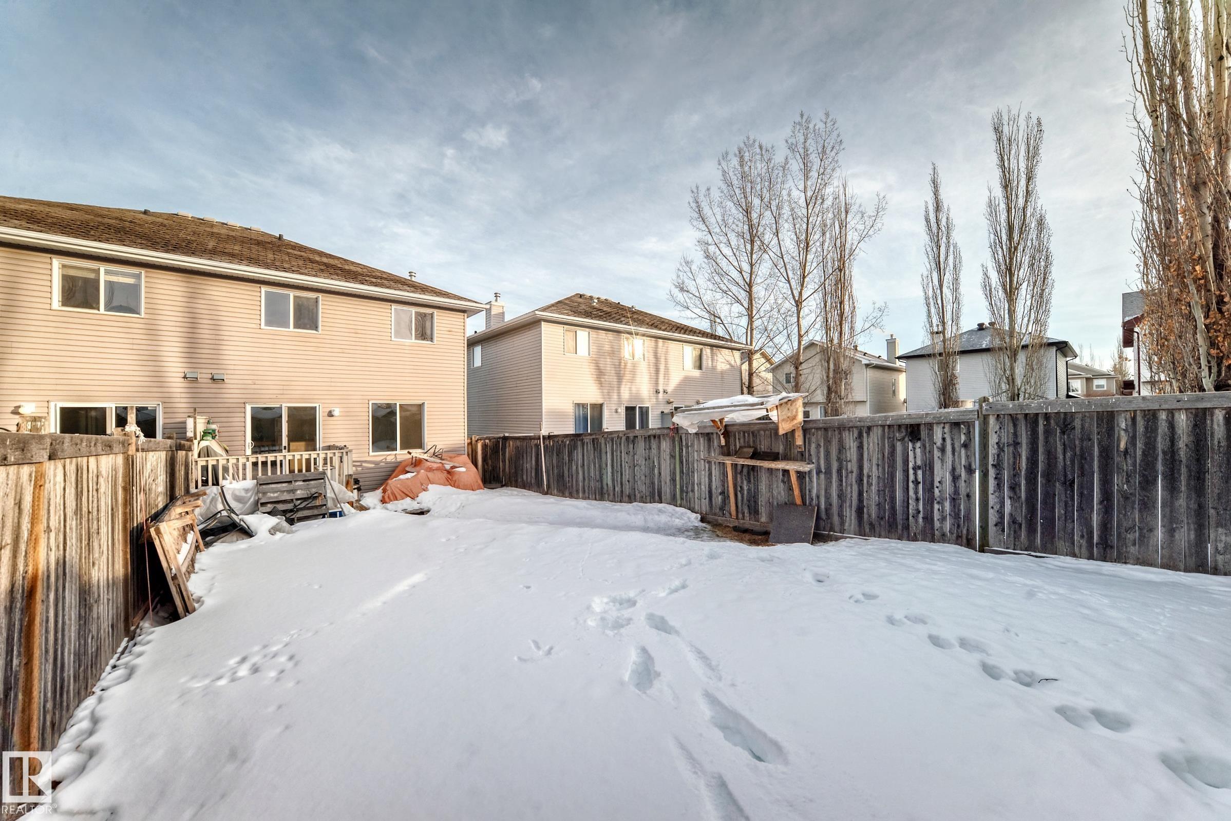 New Paint, New Floors. Two-storey half duplex with no condo or HOA fees. This fully finished home offers three bedrooms, two and a half bathrooms, and a single attached garage. The main floor features NEW VINYL flooring throughout, a spacious living room, dining area, and a well-designed kitchen with stainless steel appliances, tile backsplash, and breakfast bar. A convenient half bathroom completes the main level. Upstairs includes a full four-piece bathroom, two generously sized bedrooms, and a large primary bedroom with walk-in closet and private ensuite featuring a separate tub and shower. The finished basement offers a large family room, laundry room, and roughed-in bathroom for future development. Additional features include a fully landscaped and fenced yard with a deck. Conveniently located with easy access to shopping, dining, entertainment, major roadways, and public transportation. The kitchen is still being renovated.