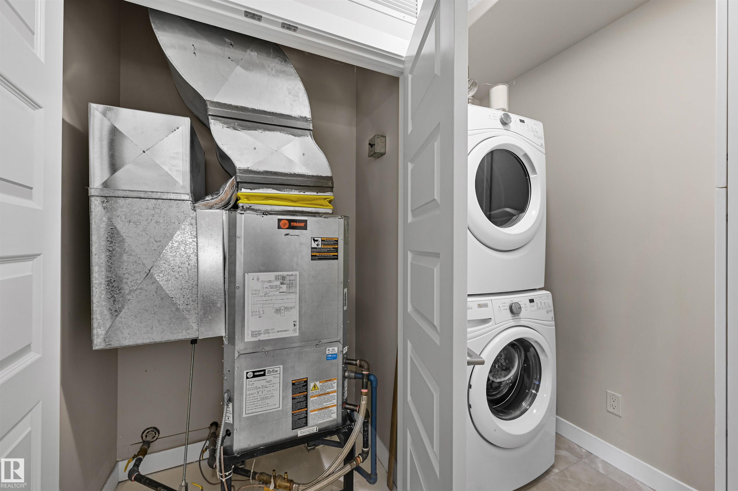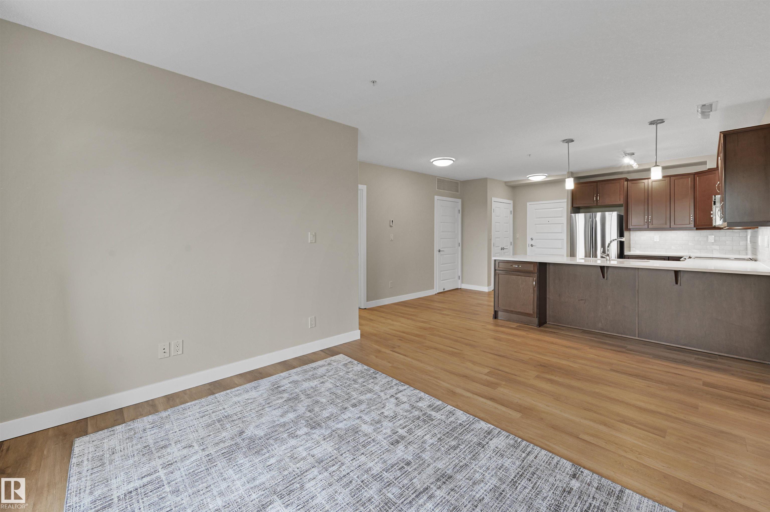 Attractive East facing one bed, one bath has amazing features inside & out. With new vinyl flooring & good parking spot, quartz counters, stainless steel appliances, under-cabinet lighting, eat up bar & balcony w/ natural gas connection. Open concept layout provides natural light through the whole unit & offers plenty of space for your furniture. Bedroom has large windows that look out onto Ermineskin Park & can accommodate full bed set + slider closet doors. 3 pc bathroom has a large easy access walk-in shower + heated tile floors. Full size washer & dryer are in the mechanical room w/ extra built in storage space. MORE features are: central A/C & underground parking stall. This building has so many unique amenities such as the "Mosaic Cove" social room that hosts movie nights, + games & activities throughout the week, exercise classes & coffee socials. Heritage Market Grill" is another special feature for easy dining. Building also has a guest suite, hair salon, car wash & workshop. This one has it ALL!