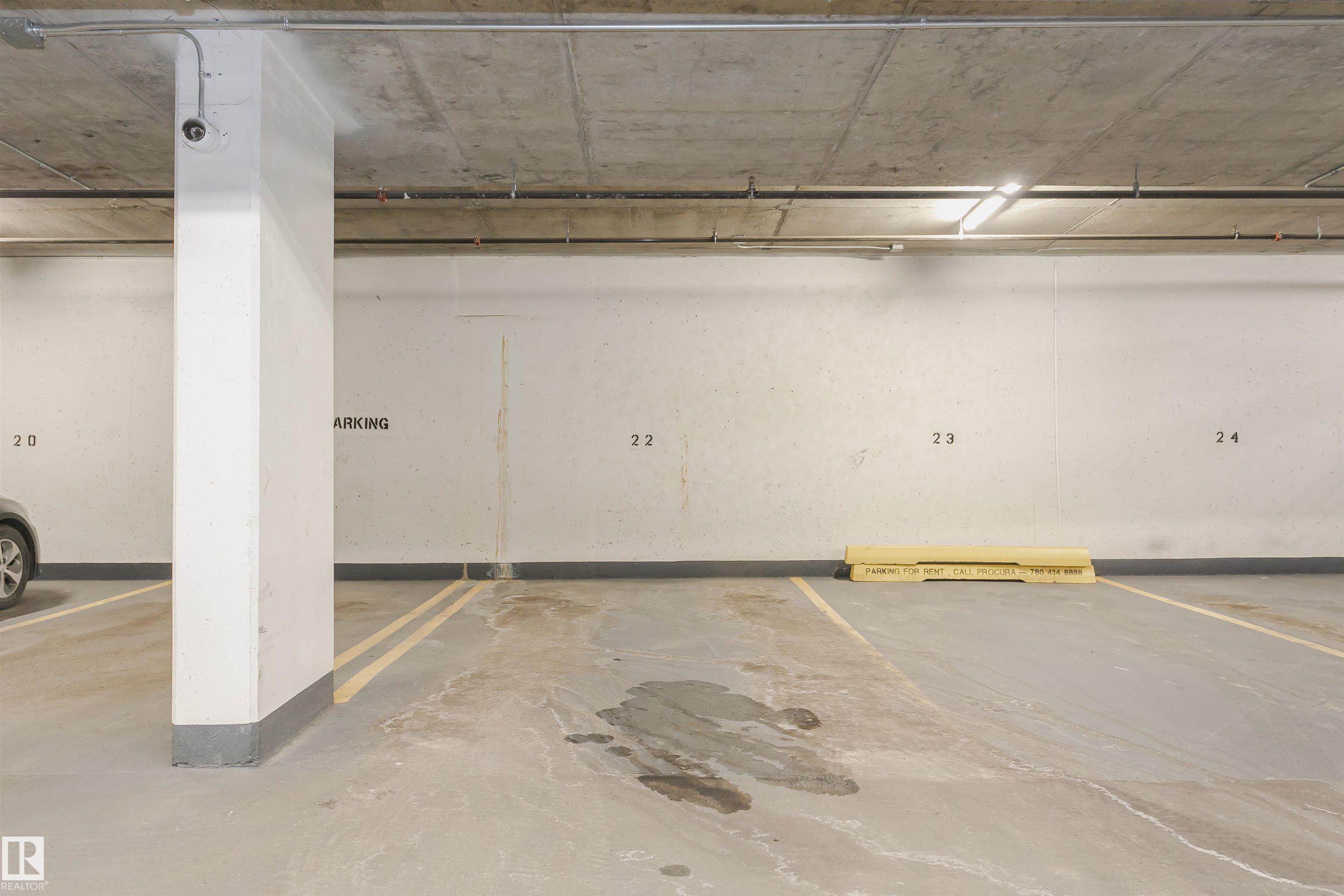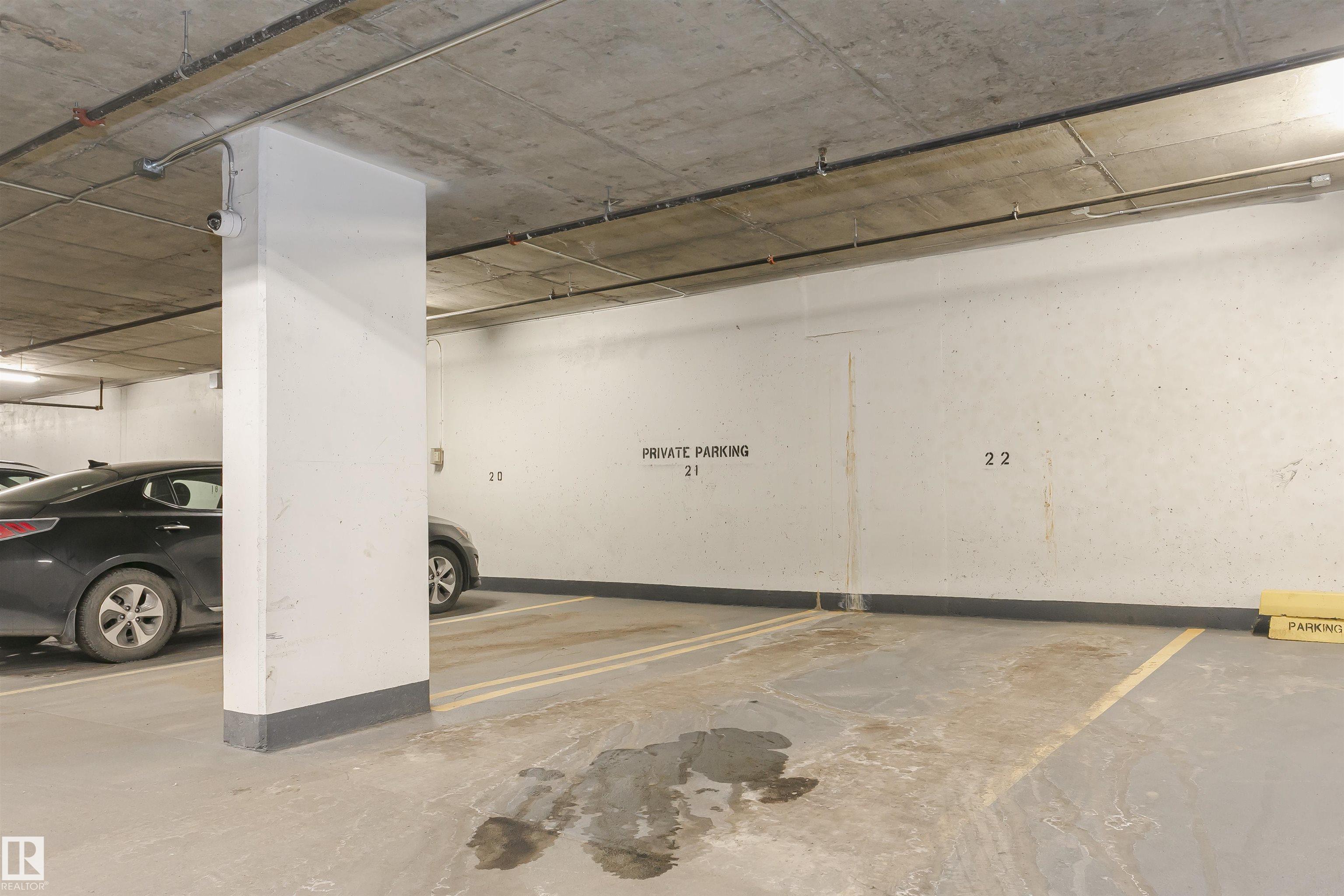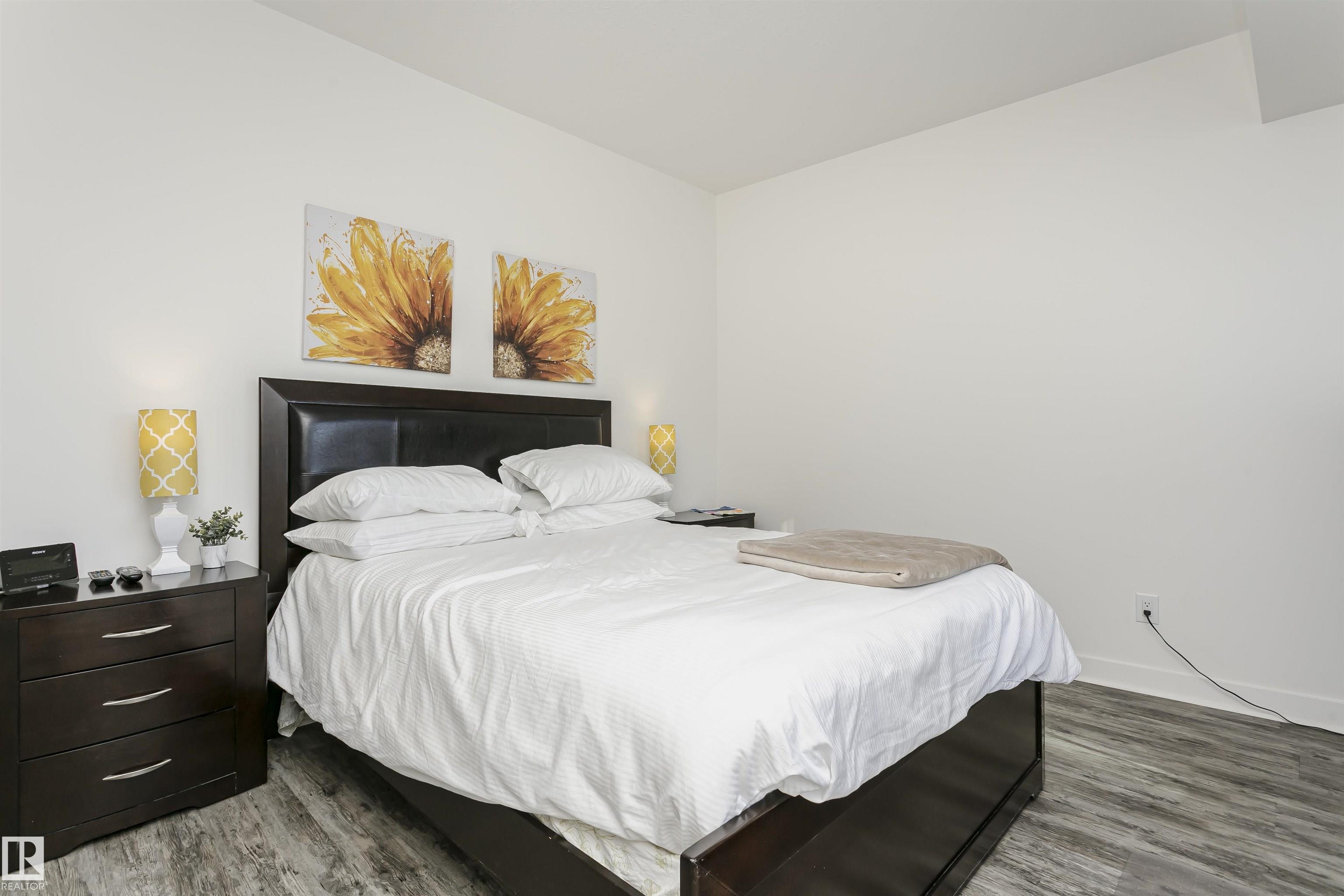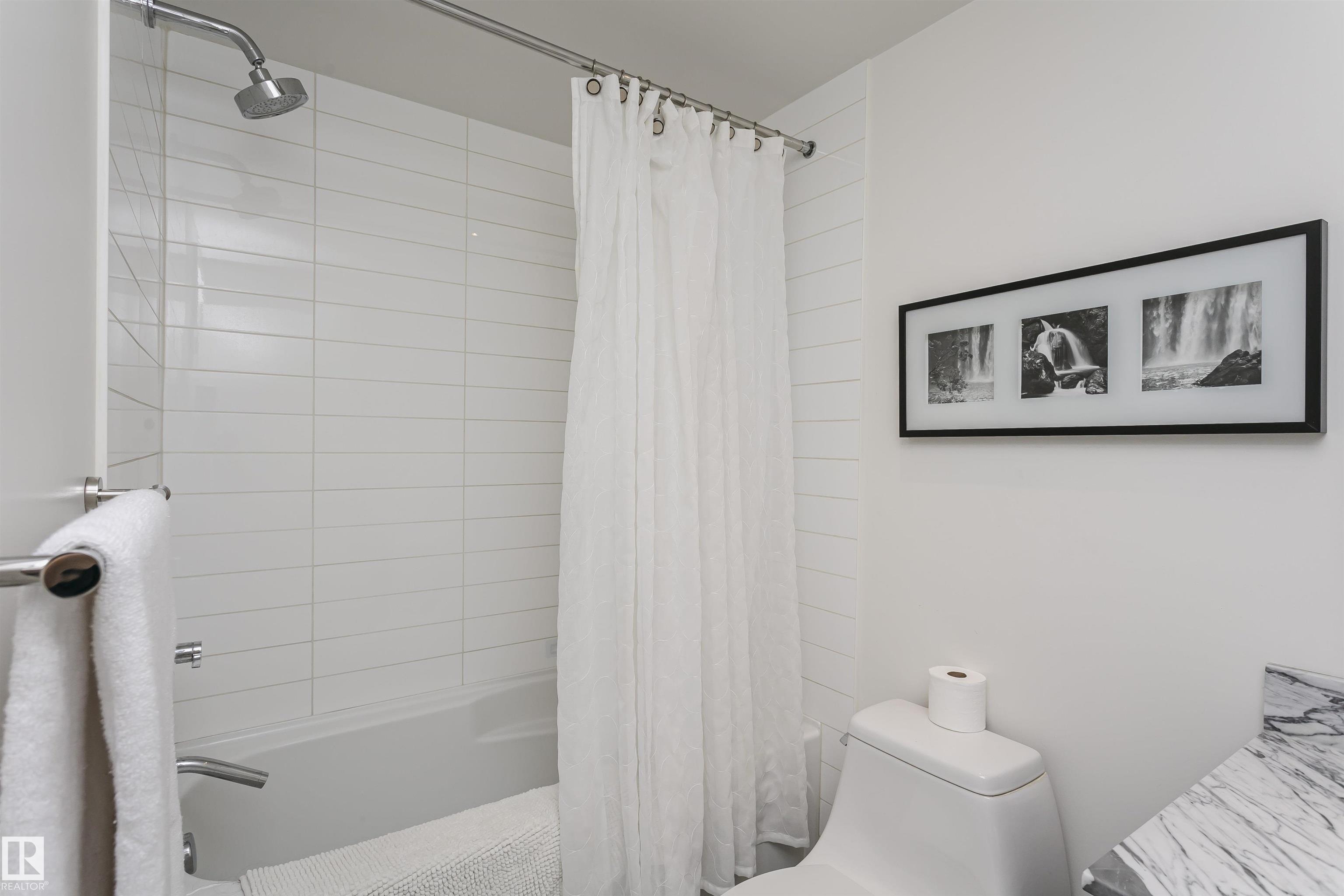 Gorgeous 2-bed, 2-bath south-west facing corner unit in a CONCRETE/STEEL building offering low-maintenance living and impressive quality throughout. Step inside to a bright open-concept layout filled with natural light. The chef's kitchen features stainless steel appliances, a gas countertop range with drawers, granite countertops, pendant lighting, and a large island. Vinyl flooring flows throughout the suite, while the living room is highlighted by an electric fireplace and patio doors leading to a spacious balcony. The primary bedroom is generously sized with two closets and a spa-inspired 5-piece ensuite complete with soaker tub, separate glass shower, double sinks, and marble tile. The second bedroom is equally spacious with a 4-piece bathroom just steps away. Additional features include secure floor access, in-suite laundry, titled heated underground parking, titled storage cage, visitor parking, and a fitness centre. Exceptional location within walking distance to all amenities and Century Park!
