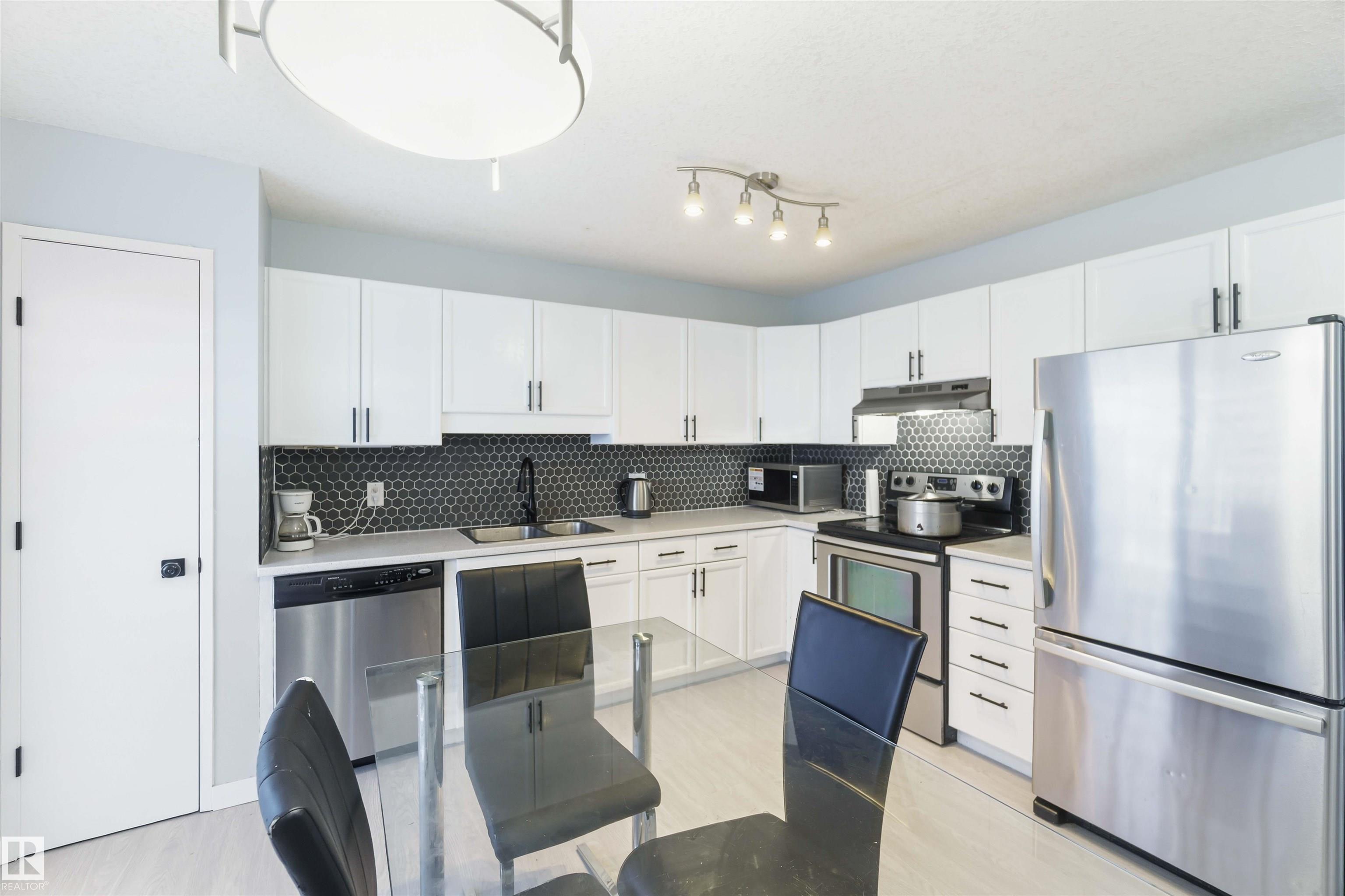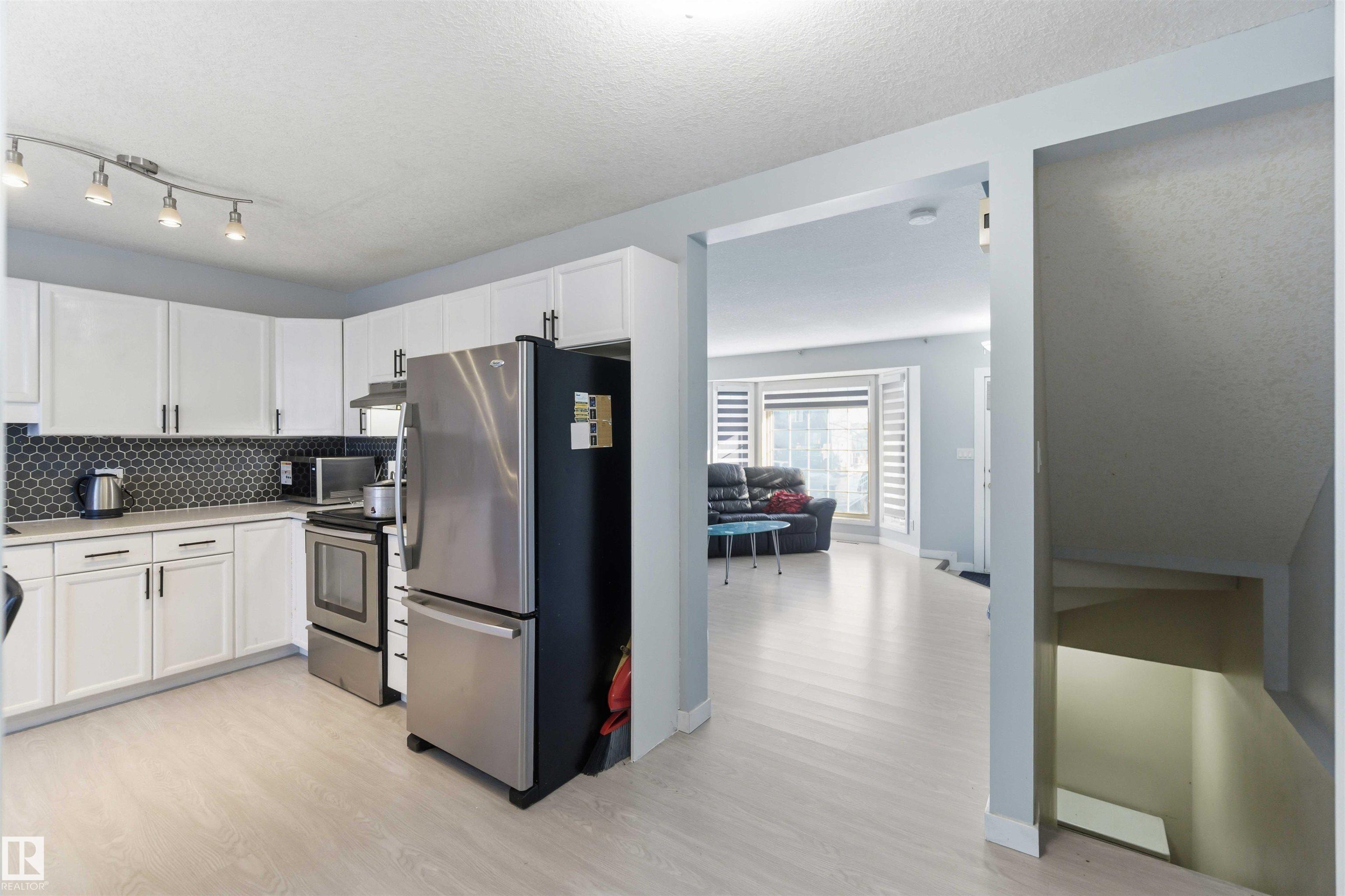 Pride of ownership is evident in this immaculate two-storey townhouse located in the quiet, well-managed Beacon Pointe Condominium. This home offers a single attached garage, a spacious and functional layout, and excellent value. The main floor features newly installed laminate flooring, fresh paint, and a bright living room open to the dining area. The recently renovated kitchen includes tile flooring, modern backsplash, new appliances, and updated finishes. Upstairs are three generously sized bedrooms, including a large primary suite with walk-in closet and private ensuite. The finished basement adds an additional bedroom, family or computer room, laundry area, and plenty of storage. Recent updates include new paint throughout, renovated kitchen, and updated bathrooms, making this home truly move-in ready. Great street appeal.