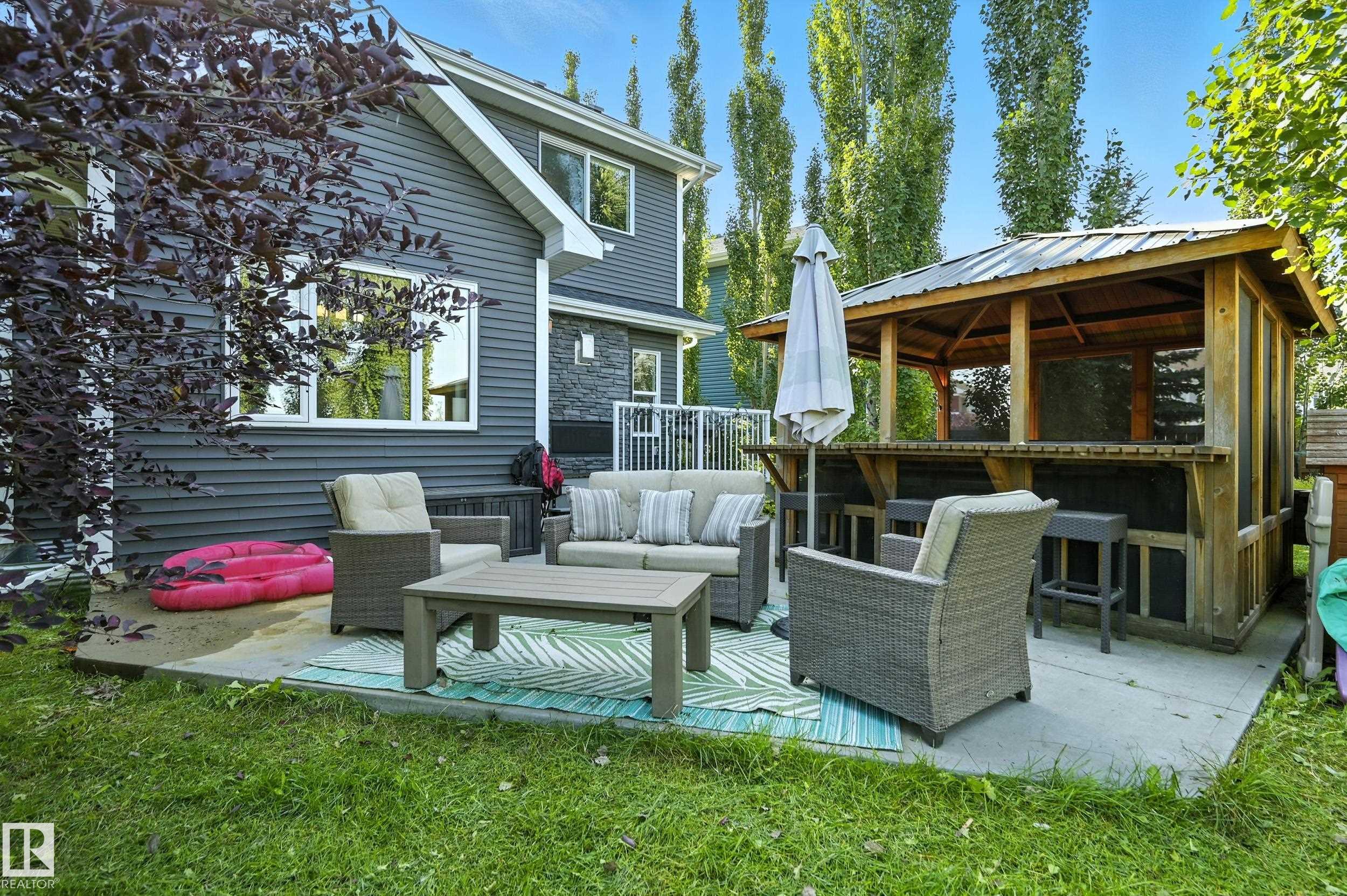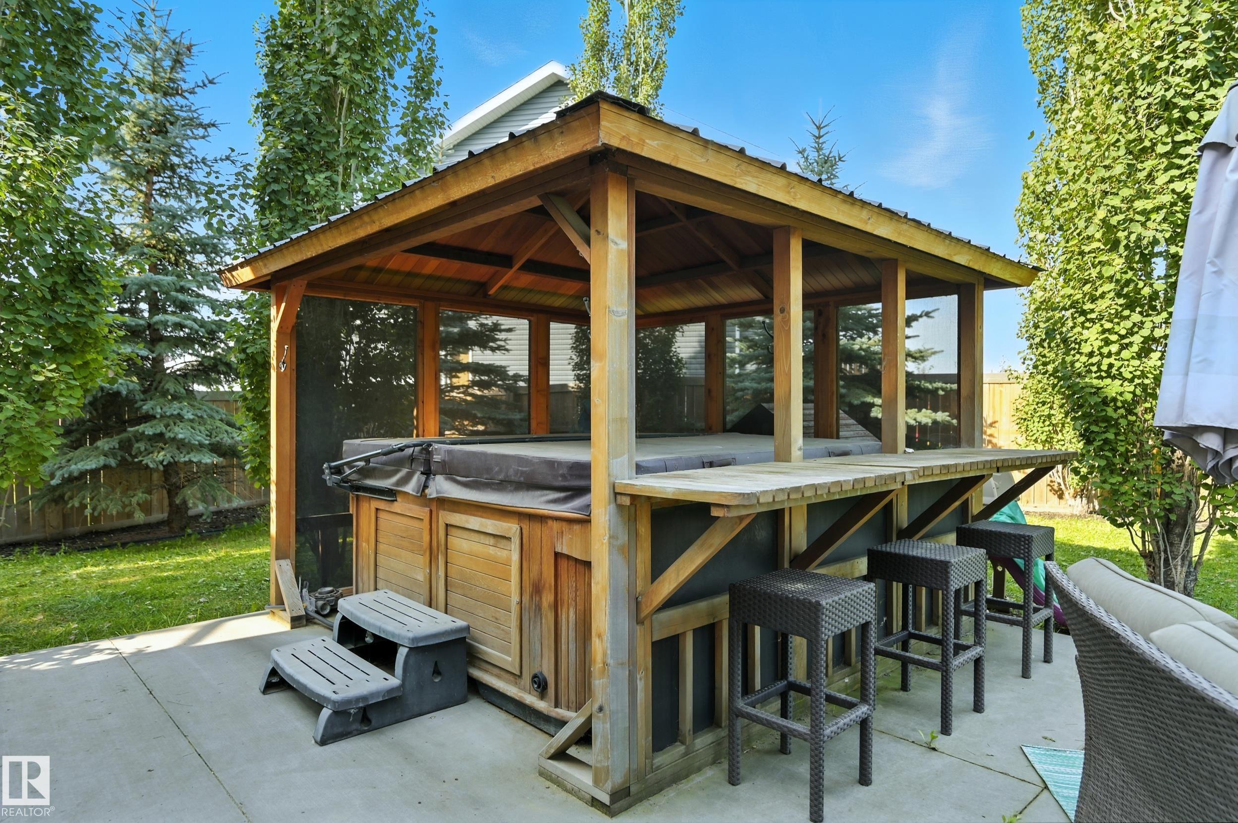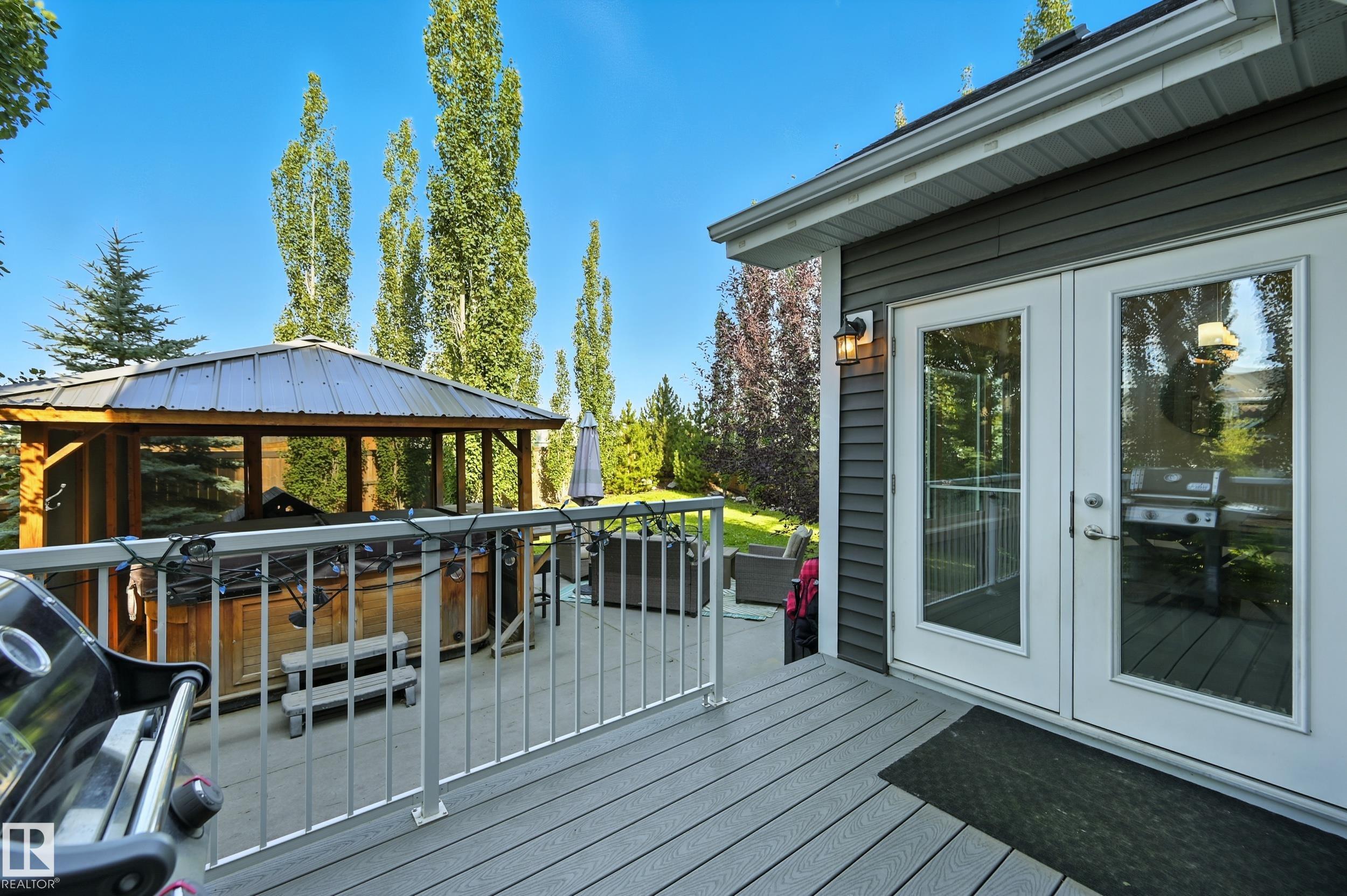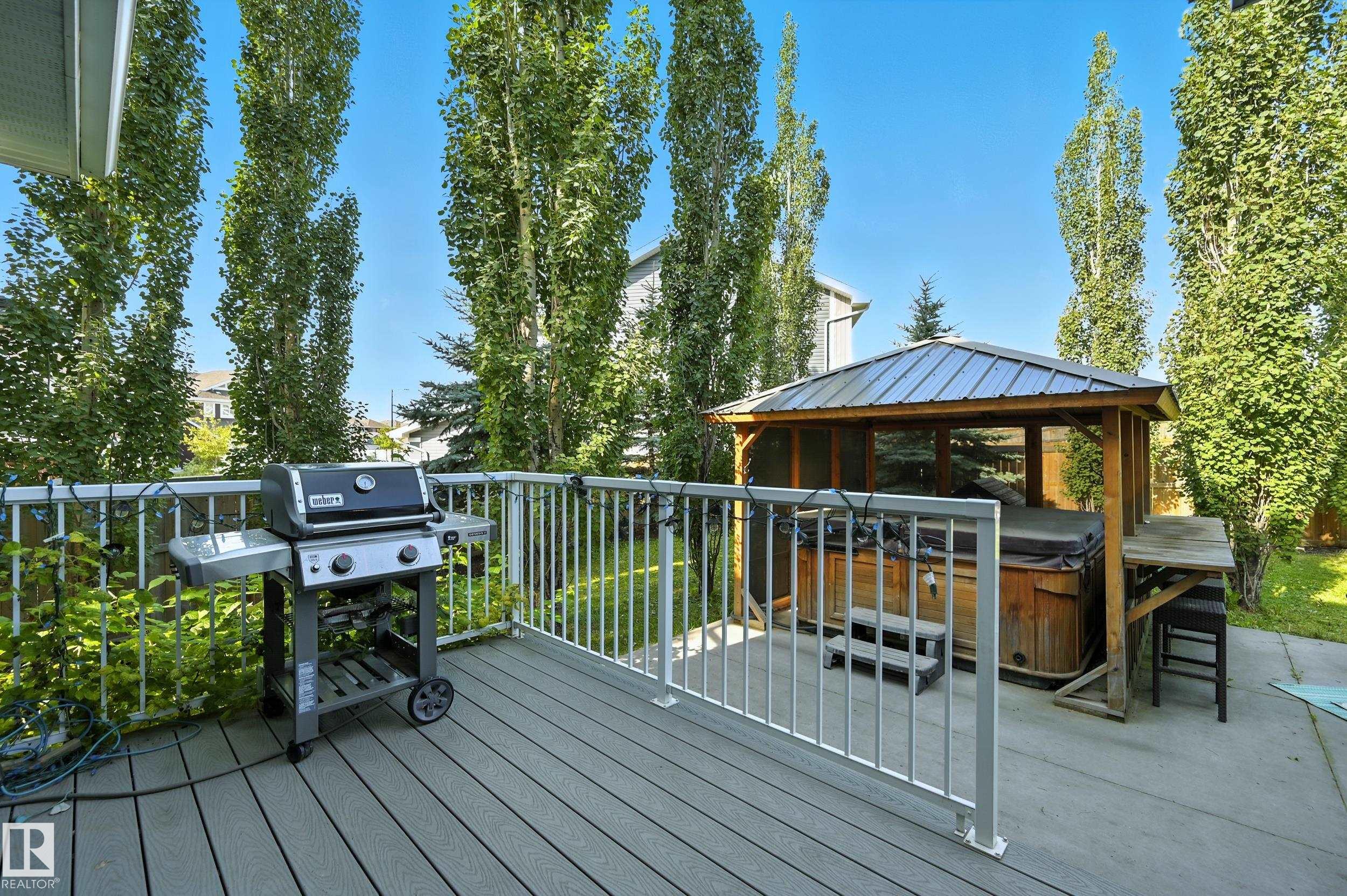 Discover this stunning home in desirable Glenridding, tucked away on a quiet cul-de-sac with a LARGE PIE-SHAPED yard and mature tree for added privacy. The TRIPLE ATTACHED GARAGE with tandem bay provides exceptional space. Inside, 9-ft ceilings and hardwood floors highlight the open main floor, featuring a double-sided fireplace, quartz countertops, large pantry, and central A/C. Upstairs offers a spacious bonus room, three bedrooms with a luxurious primary suite with 5-pc ensuite and walk-in closet. The basement impresses with 9-ft ceilings, a quartz wet bar, and plenty of room to entertain. Access to the garage through a large mudroom. Step outside to a composite deck, pergola, and hot tub (as-is), ideal for summer relaxation. Additional highlights include on-demand hot water, upgraded finishes, and excellent curb appeal. Conveniently close to schools, shopping, and restaurants, with quick access to Anthony Henday--this home blends comfort, style, and location.