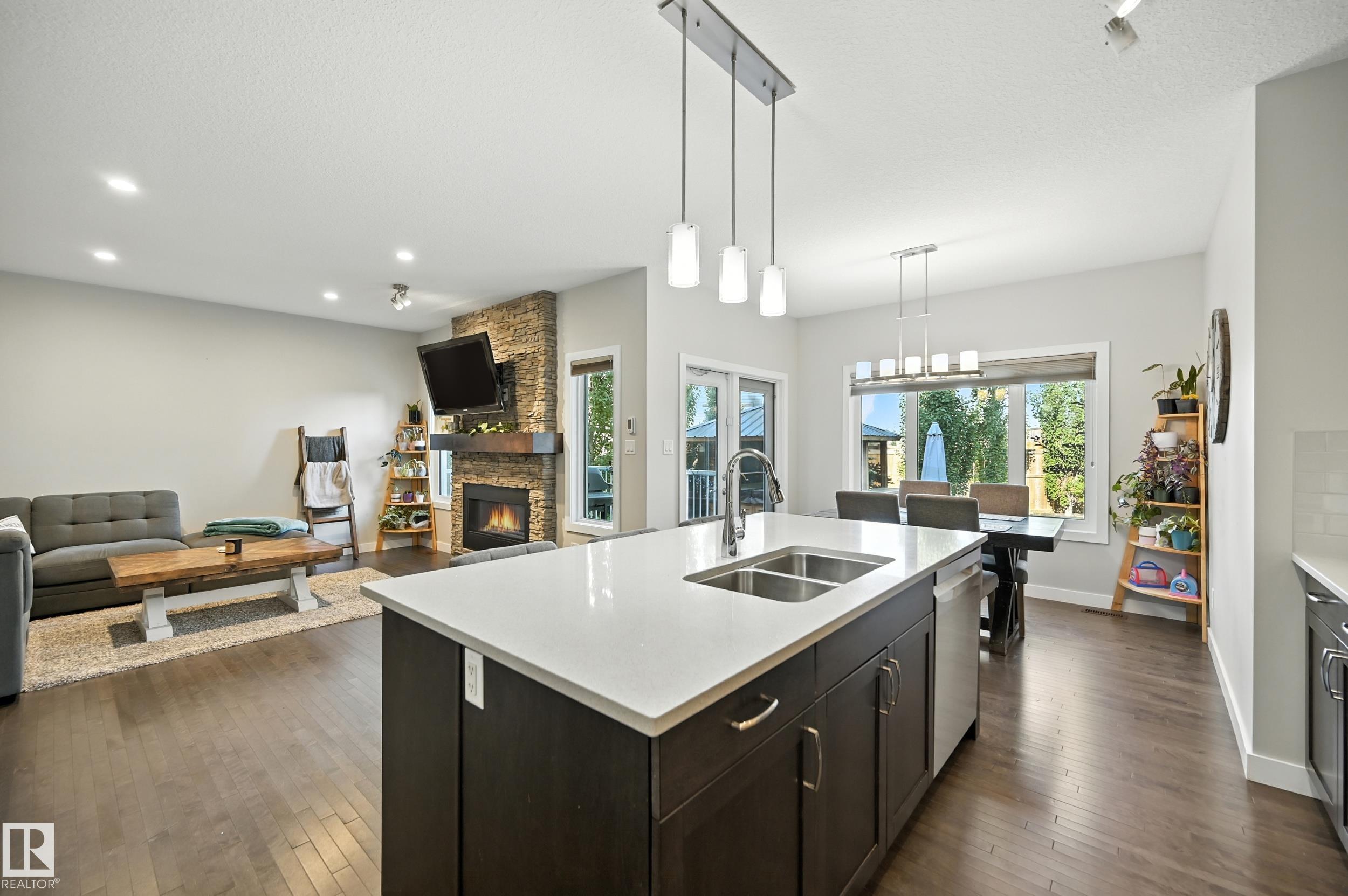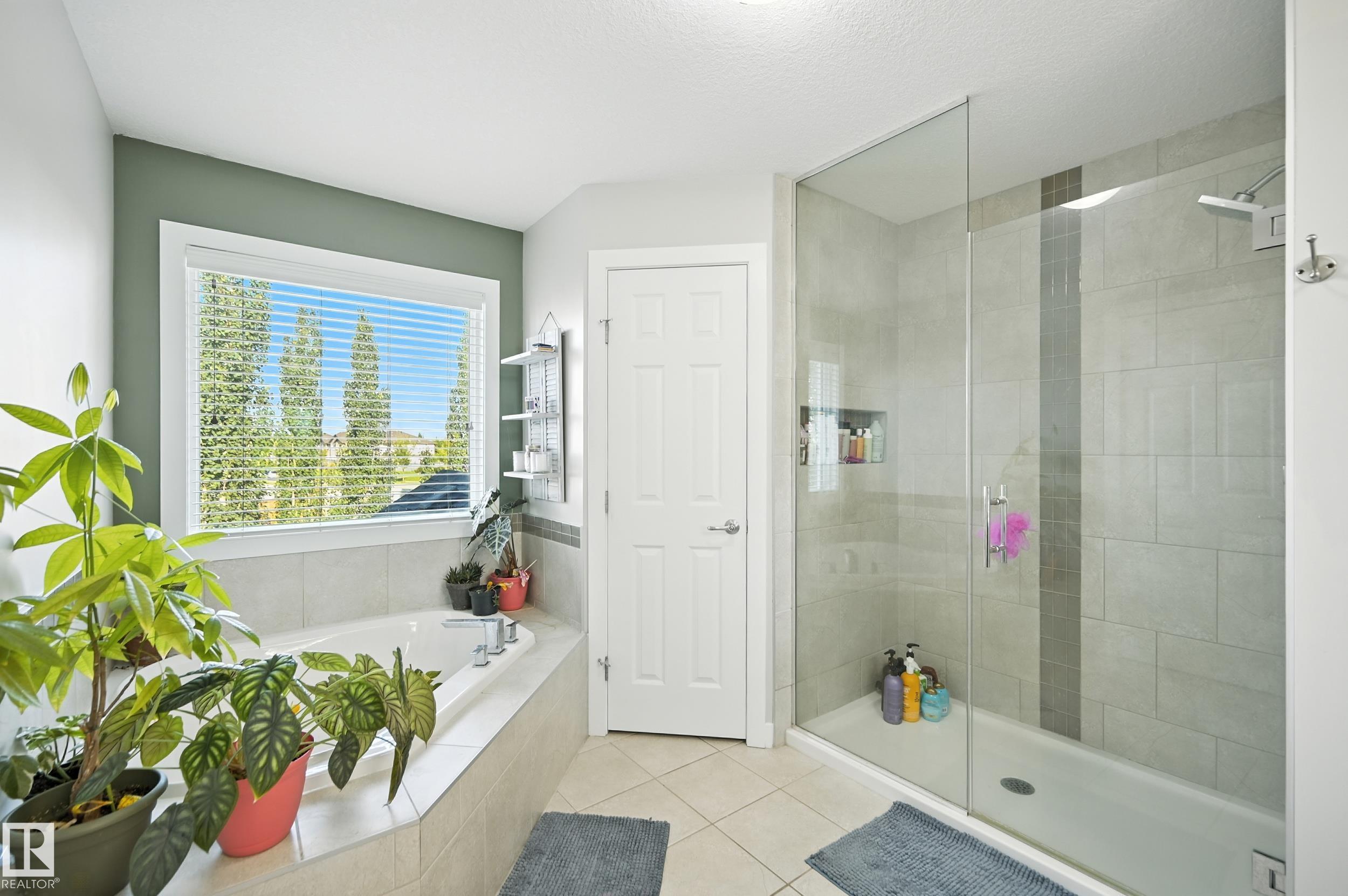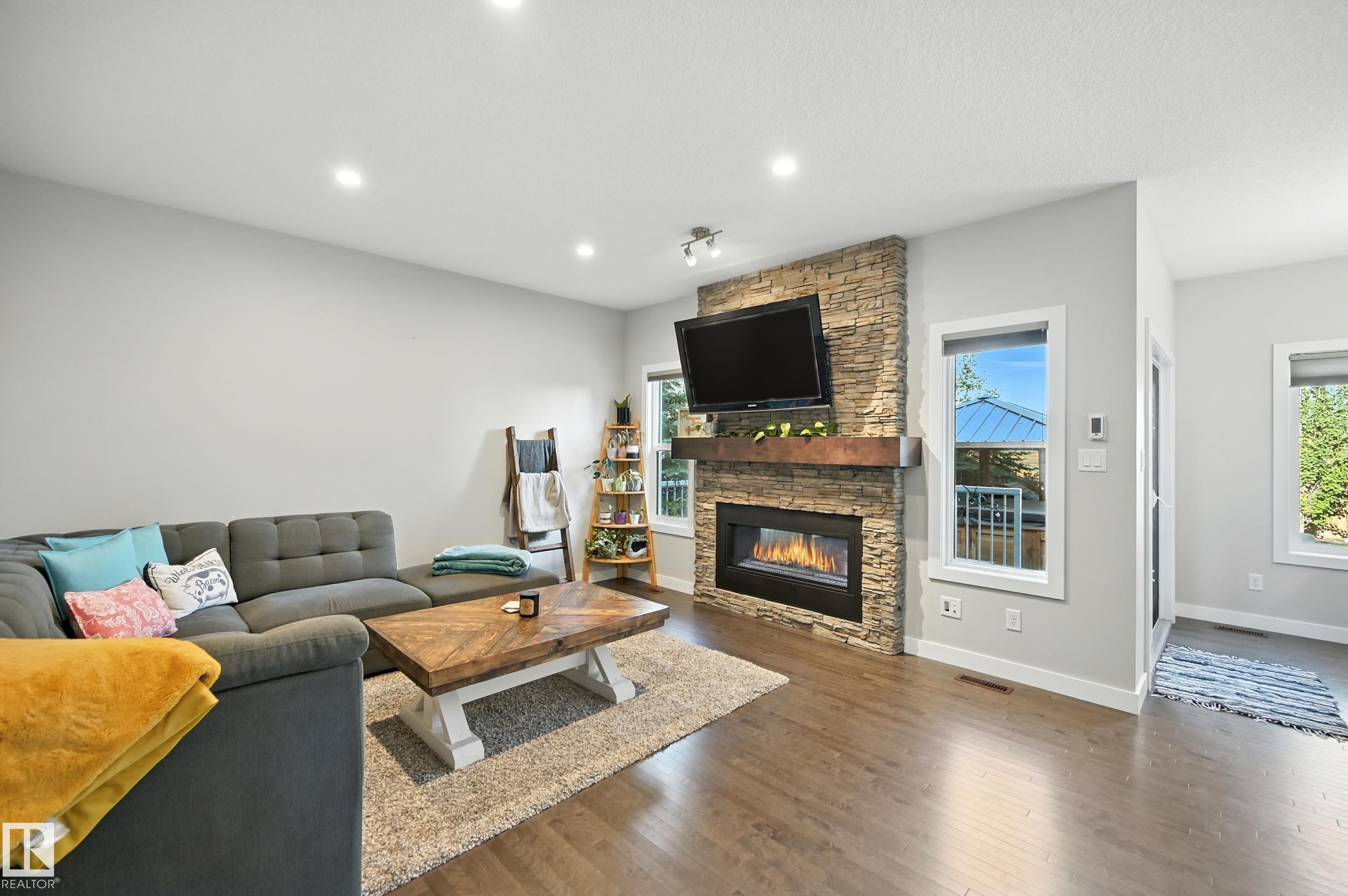 Discover this stunning home in desirable Glenridding, tucked away on a quiet cul-de-sac with a LARGE PIE-SHAPED yard and mature tree for added privacy. The TRIPLE ATTACHED GARAGE with tandem bay provides exceptional space. Inside, 9-ft ceilings and hardwood floors highlight the open main floor, featuring a double-sided fireplace, quartz countertops, large pantry, and central A/C. Upstairs offers a spacious bonus room, three bedrooms with a luxurious primary suite with 5-pc ensuite and walk-in closet. The basement impresses with 9-ft ceilings, a quartz wet bar, and plenty of room to entertain. Access to the garage through a large mudroom. Step outside to a composite deck, pergola, and hot tub (as-is), ideal for summer relaxation. Additional highlights include on-demand hot water, upgraded finishes, and excellent curb appeal. Conveniently close to schools, shopping, and restaurants, with quick access to Anthony Henday--this home blends comfort, style, and location.