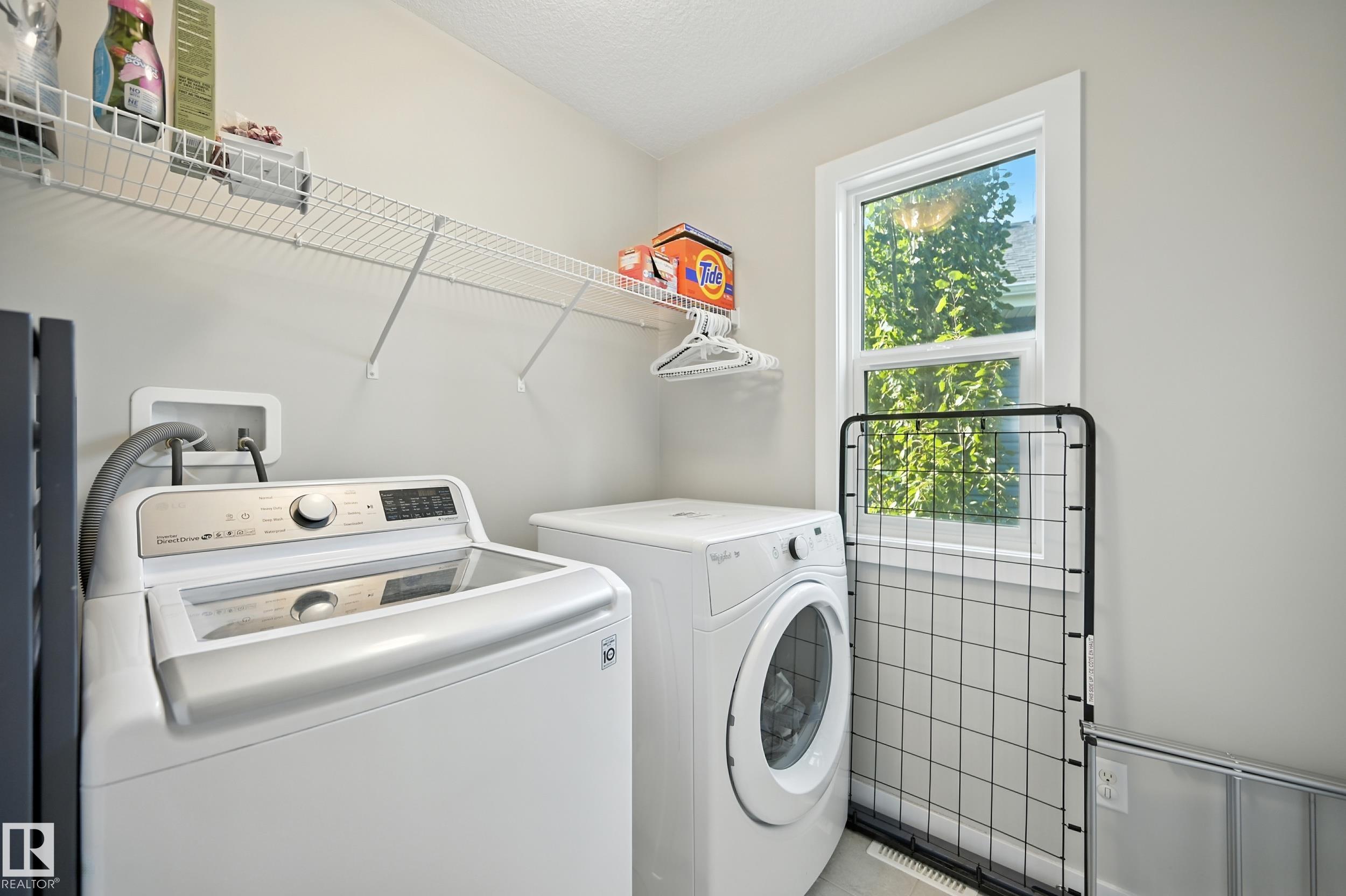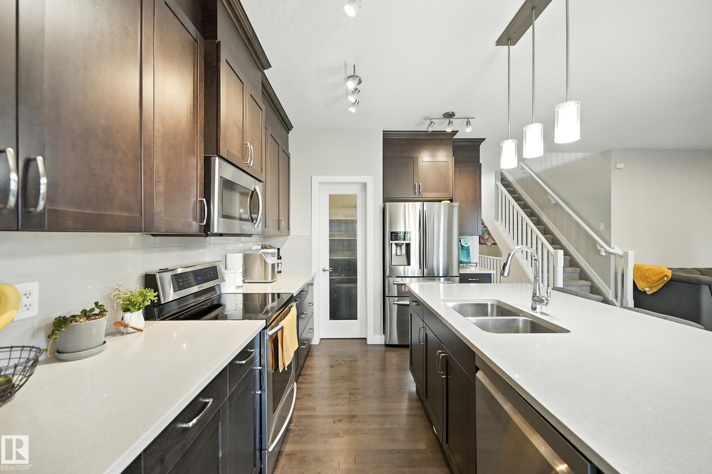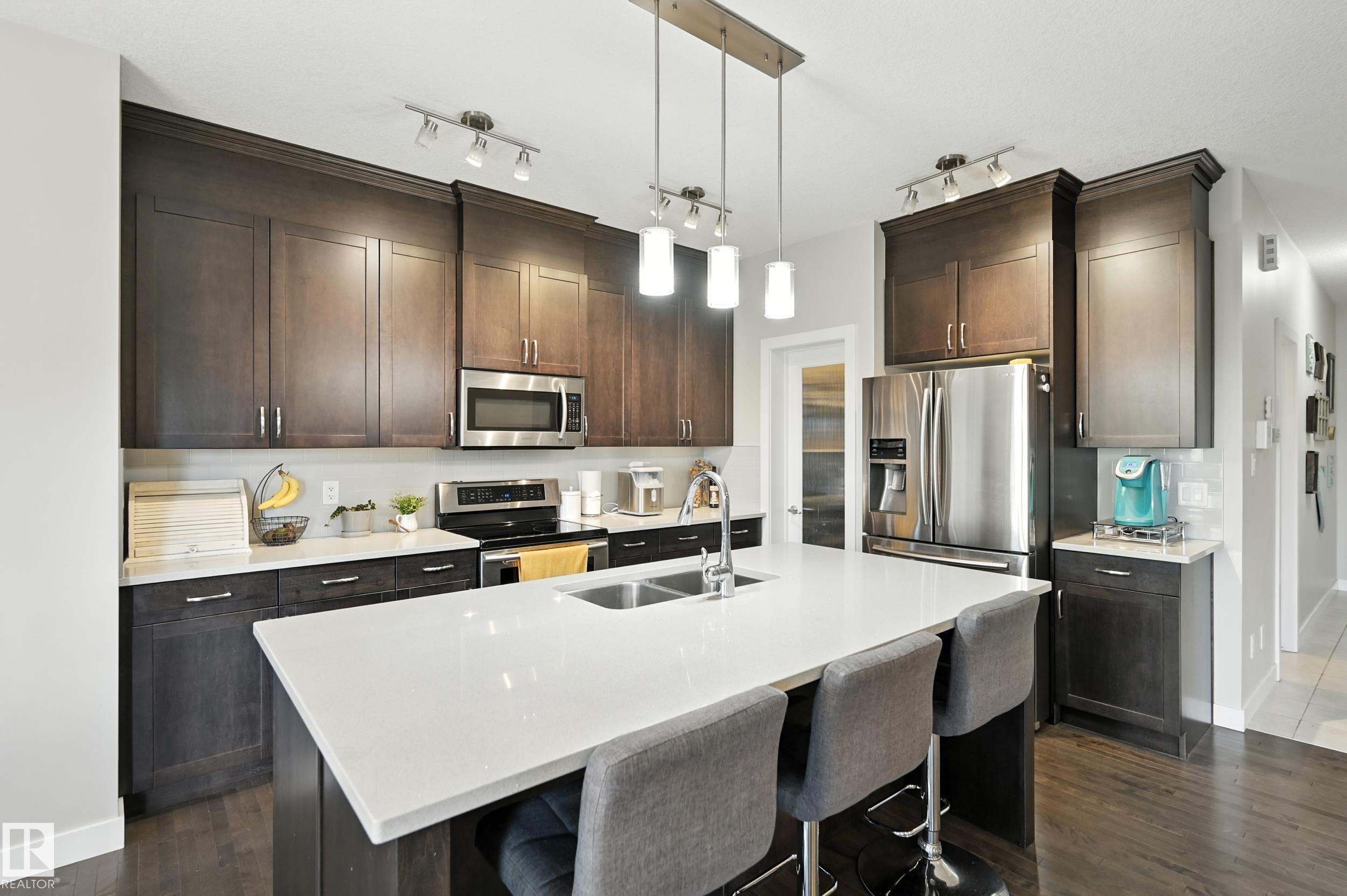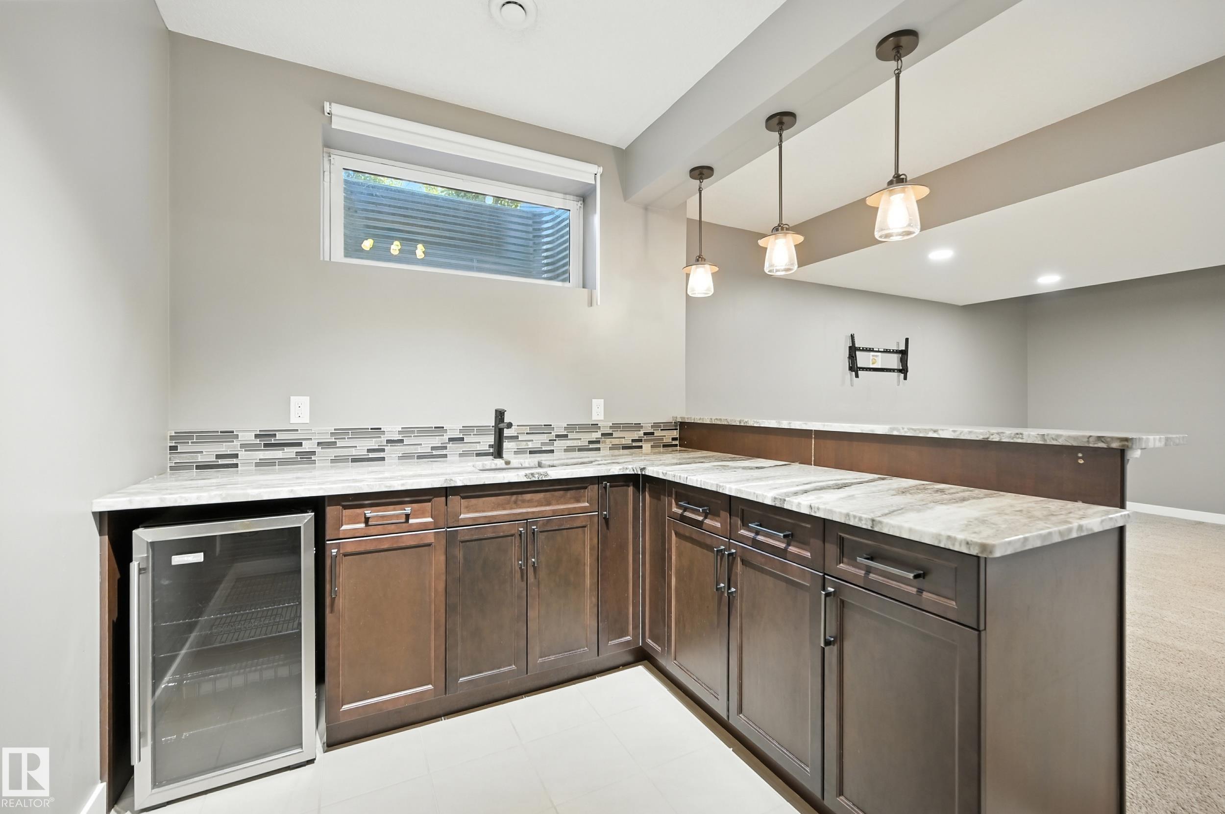 Discover this stunning home in desirable Glenridding, tucked away on a quiet cul-de-sac with a LARGE PIE-SHAPED yard and mature tree for added privacy. The TRIPLE ATTACHED GARAGE with tandem bay provides exceptional space. Inside, 9-ft ceilings and hardwood floors highlight the open main floor, featuring a double-sided fireplace, quartz countertops, large pantry, and central A/C. Upstairs offers a spacious bonus room, three bedrooms with a luxurious primary suite with 5-pc ensuite and walk-in closet. The basement impresses with 9-ft ceilings, a quartz wet bar, and plenty of room to entertain. Access to the garage through a large mudroom. Step outside to a composite deck, pergola, and hot tub (as-is), ideal for summer relaxation. Additional highlights include on-demand hot water, upgraded finishes, and excellent curb appeal. Conveniently close to schools, shopping, and restaurants, with quick access to Anthony Henday--this home blends comfort, style, and location.