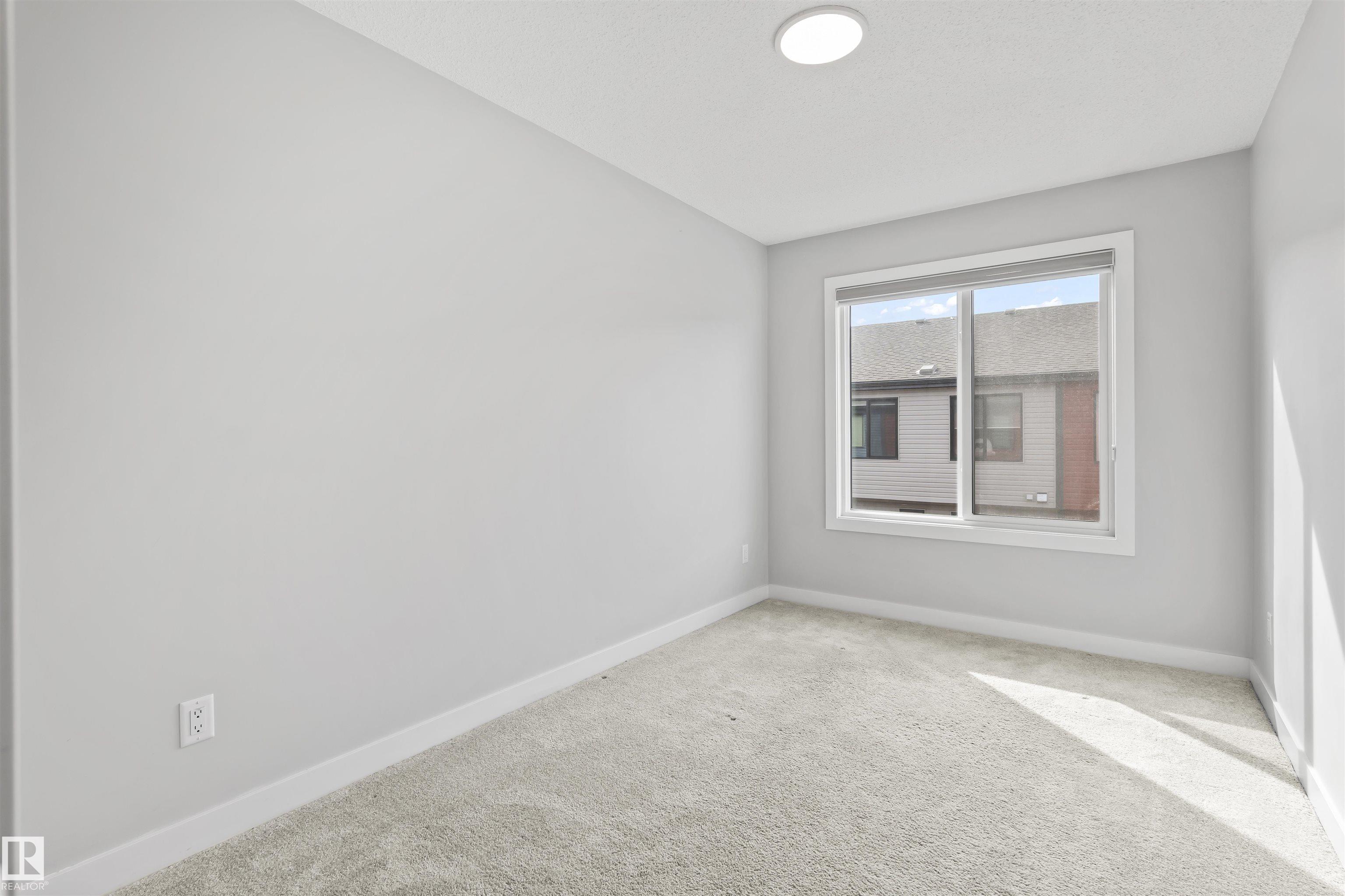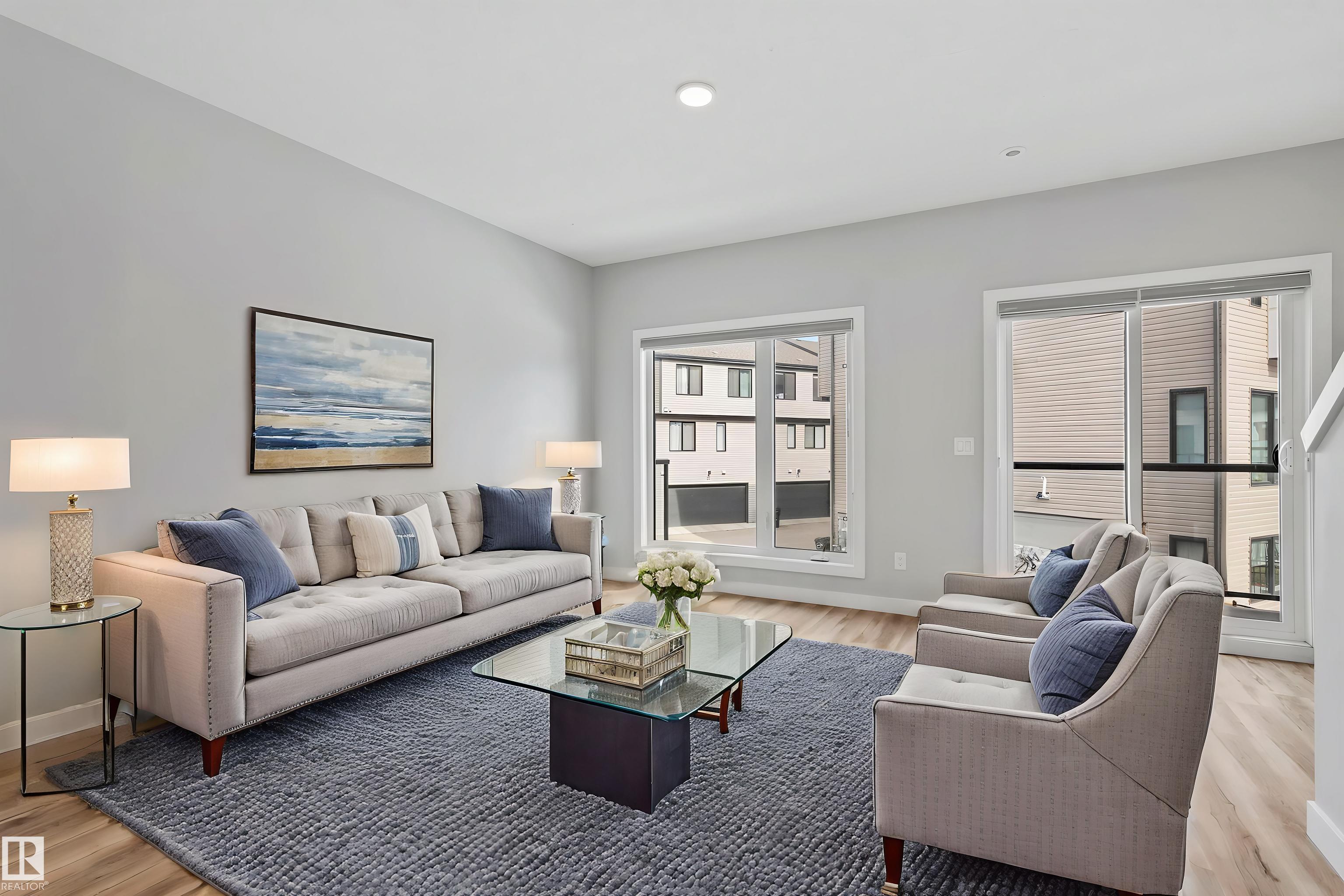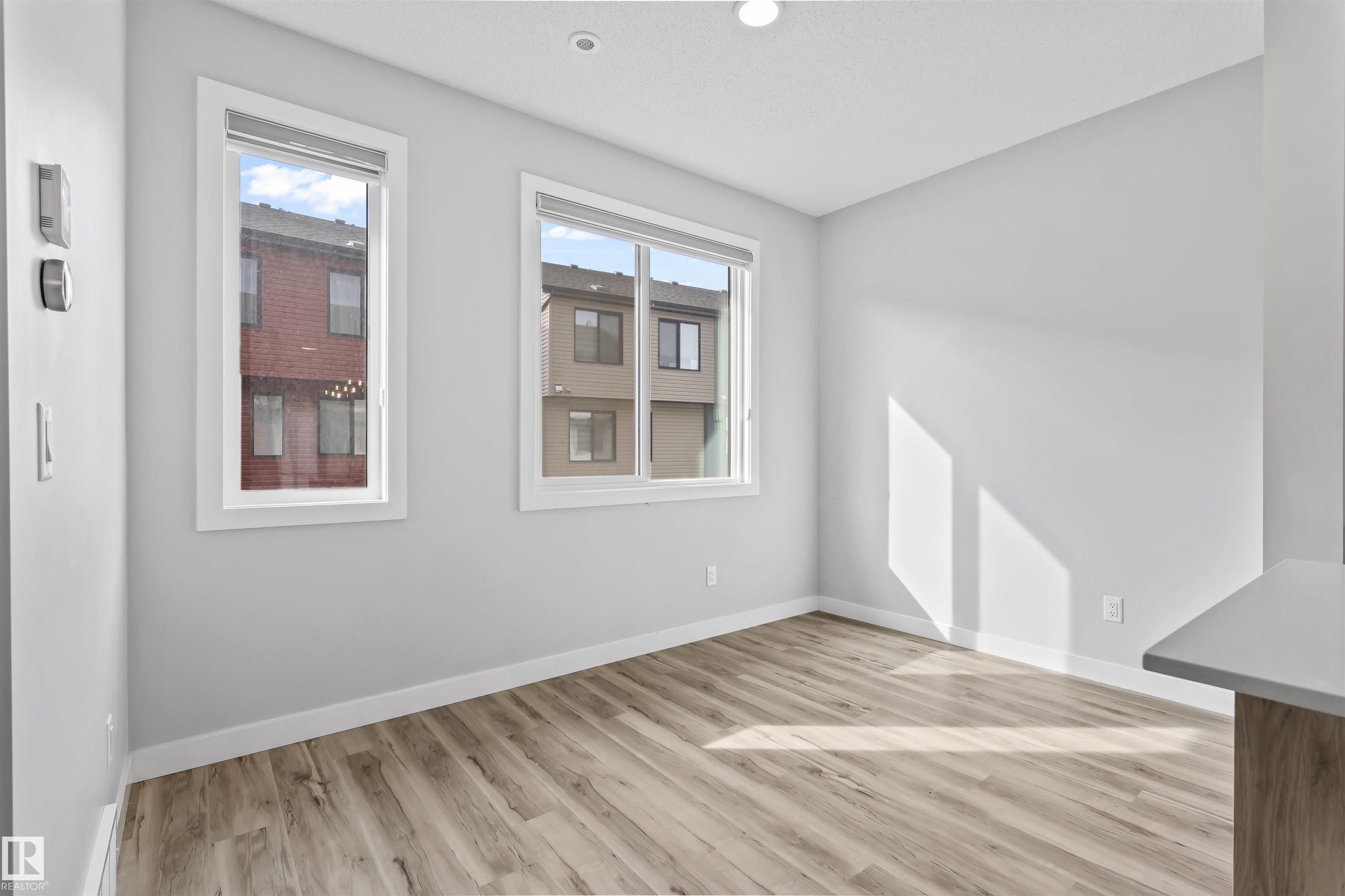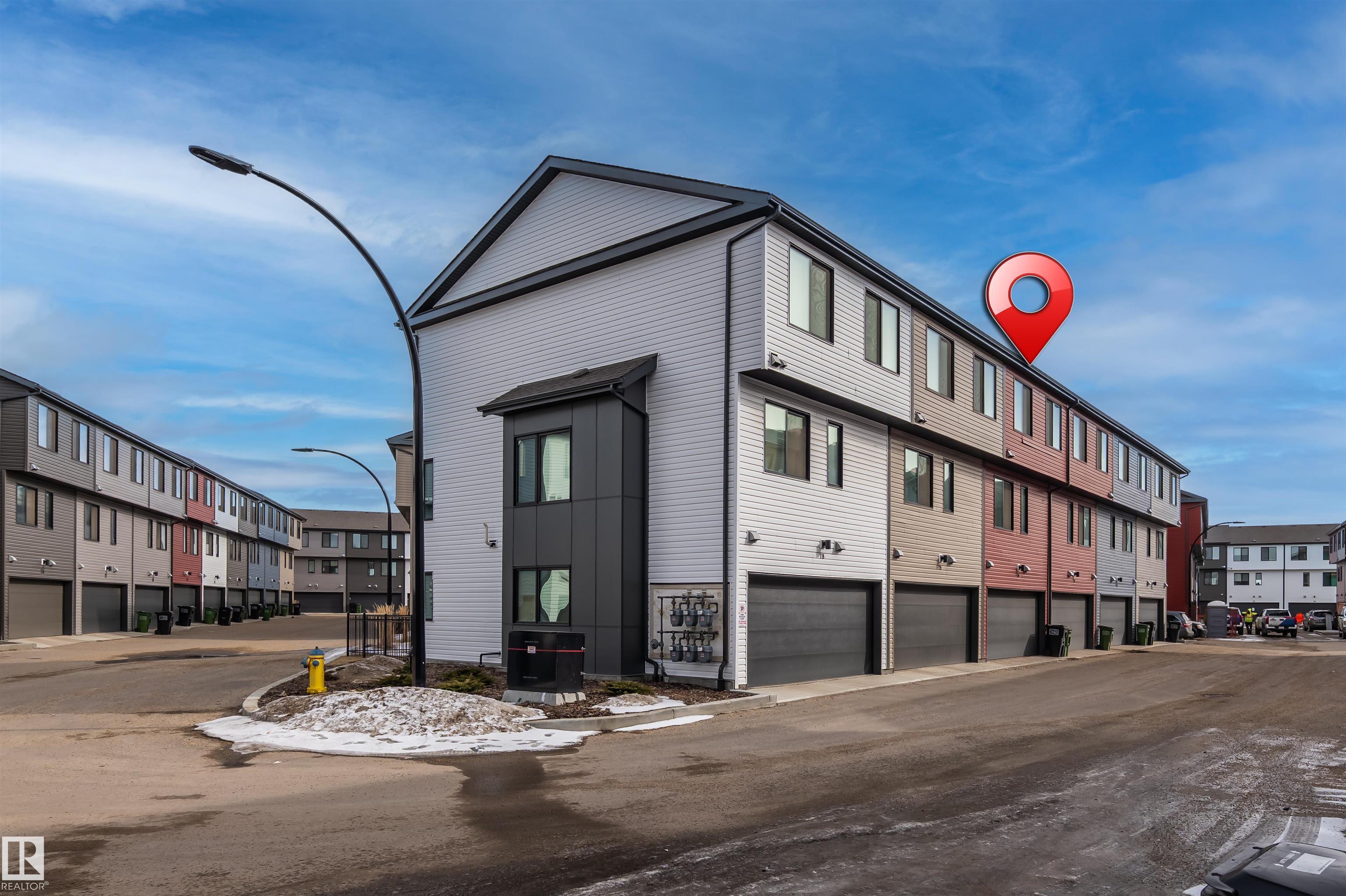 Move-in-ready townhome offering modern comfort and exceptional value. Featuring over 1500 sq ft, 3 bedrooms, 2.5 bathrooms, and a versatile main-floor den. The bright, open-concept main floor is the heart of the home, showcasing a huge island, quartz countertops, and stainless steel appliances. The seamless flow between the dining and living areas creates an inviting atmosphere, while the private balcony is ideal for summer days. Upstairs, the spacious primary bedroom offers a private retreat with its own ensuite and walk-in closet. Two additional bedrooms, a linen closet, and convenient upstairs laundry add to the home's functional design.Enjoy the added benefits of a double-attached garage and a low condo fee. Location is unbeatable, within walking distance of Dr. Anne Anderson High School and just seconds from Heritage Valley shopping center and other amenities. With easy access to major highways and the airport, commuting is easy. IMMEDIATE POSSESSION, some images are virtually staged. PRICED TO SELL!