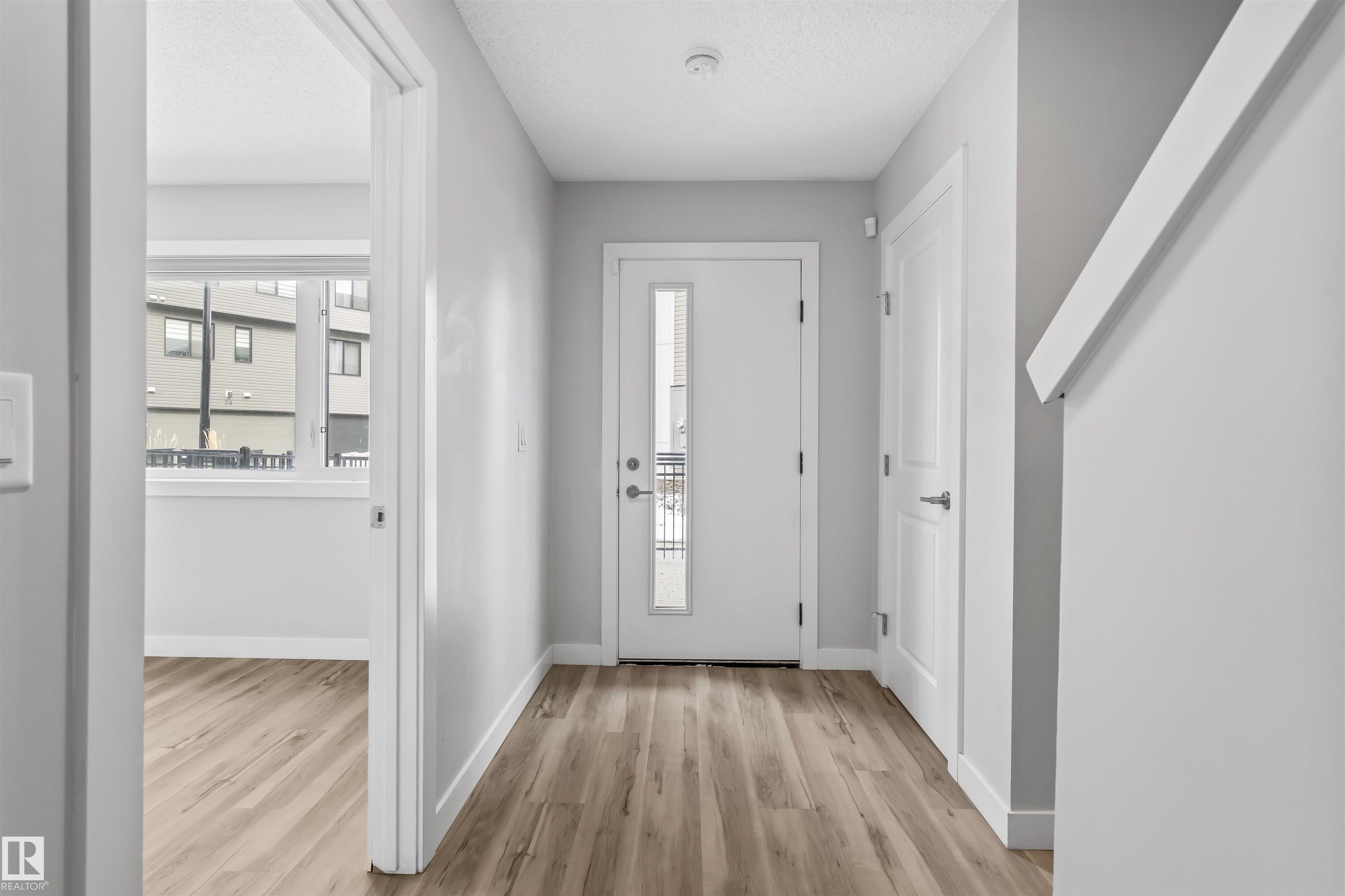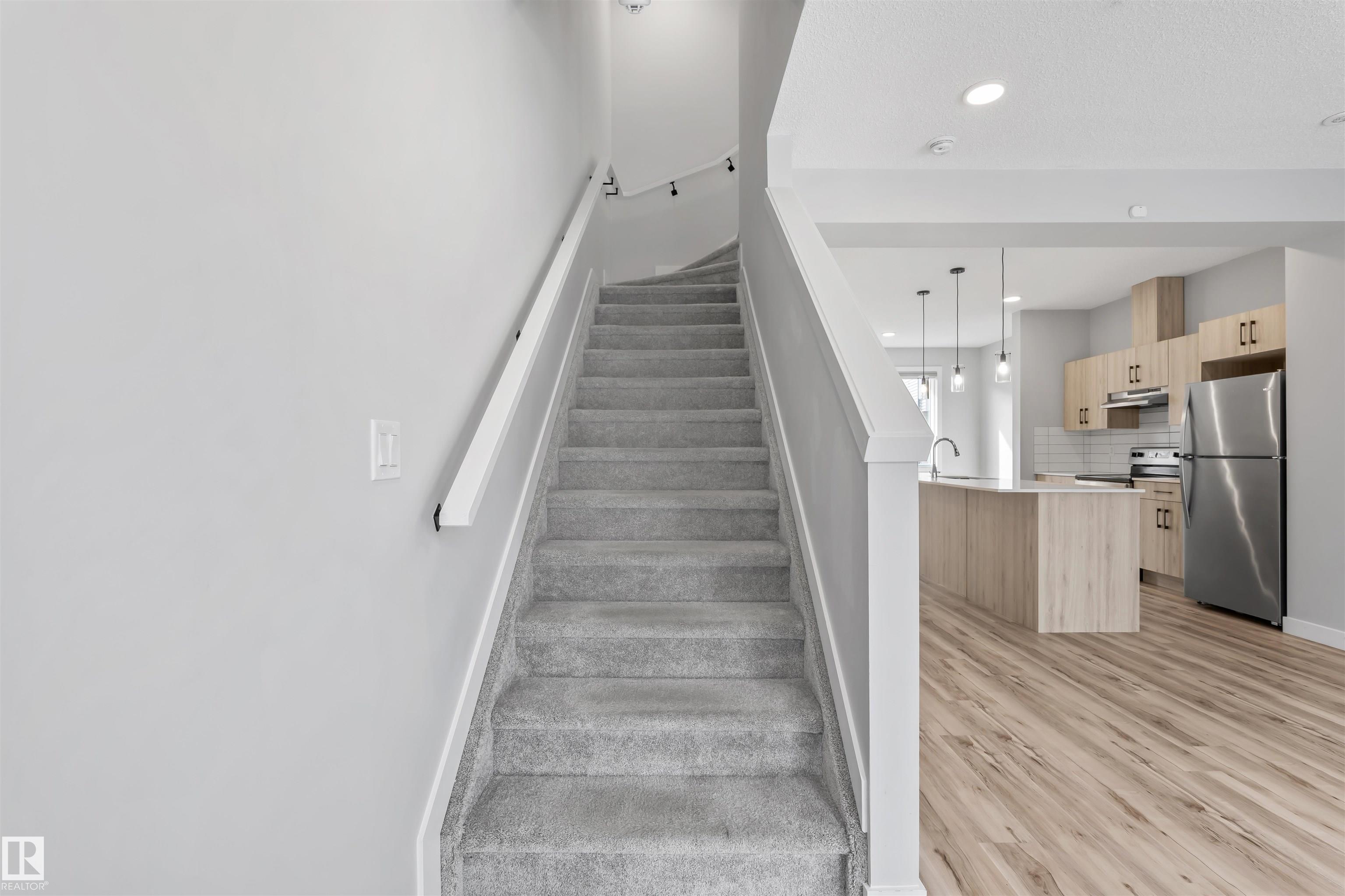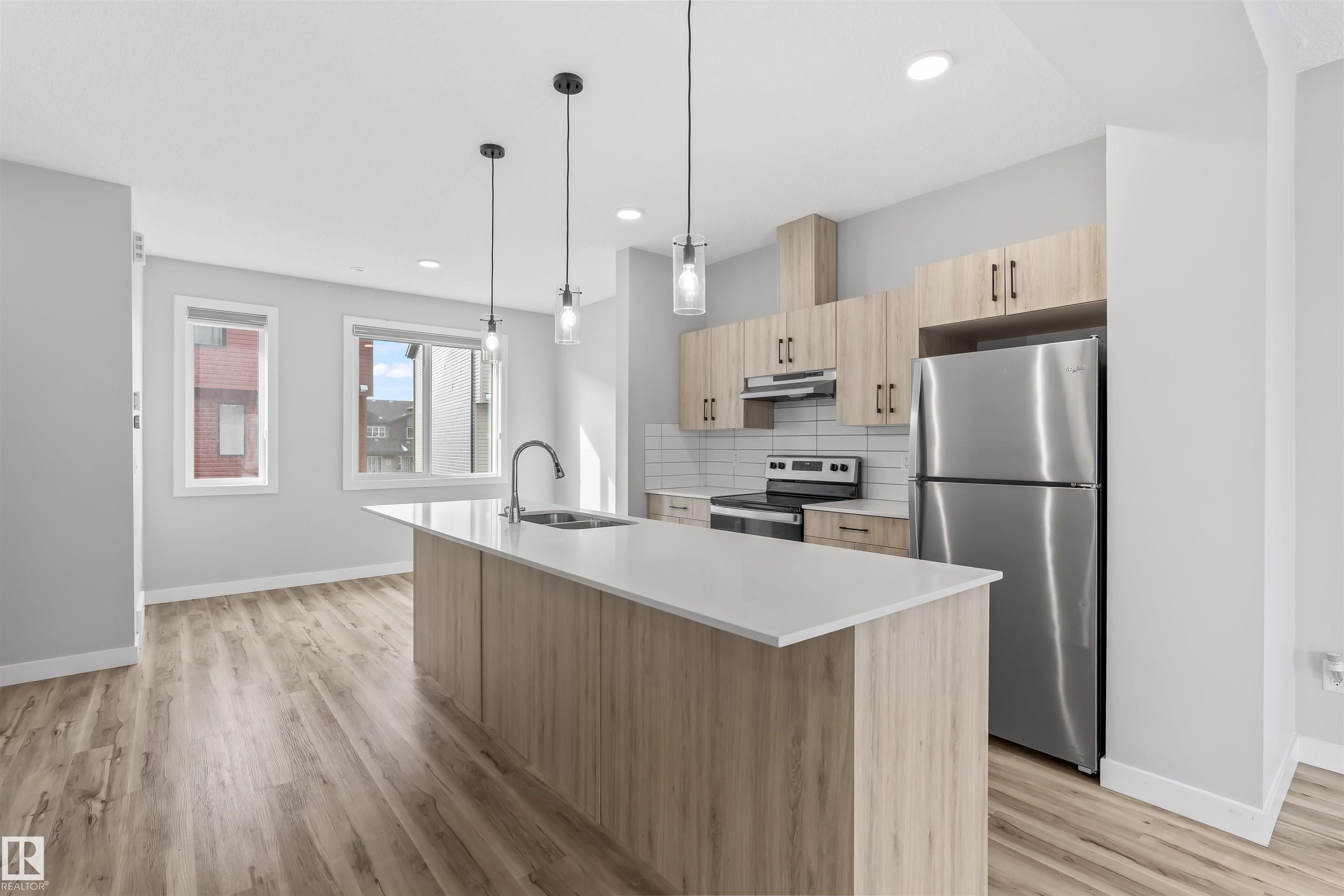 Move-in-ready townhome offering modern comfort and exceptional value. Featuring over 1500 sq ft, 3 bedrooms, 2.5 bathrooms, and a versatile main-floor den. The bright, open-concept main floor is the heart of the home, showcasing a huge island, quartz countertops, and stainless steel appliances. The seamless flow between the dining and living areas creates an inviting atmosphere, while the private balcony is ideal for summer days. Upstairs, the spacious primary bedroom offers a private retreat with its own ensuite and walk-in closet. Two additional bedrooms, a linen closet, and convenient upstairs laundry add to the home's functional design.Enjoy the added benefits of a double-attached garage and a low condo fee. Location is unbeatable, within walking distance of Dr. Anne Anderson High School and just seconds from Heritage Valley shopping center and other amenities. With easy access to major highways and the airport, commuting is easy. IMMEDIATE POSSESSION, some images are virtually staged. PRICED TO SELL!