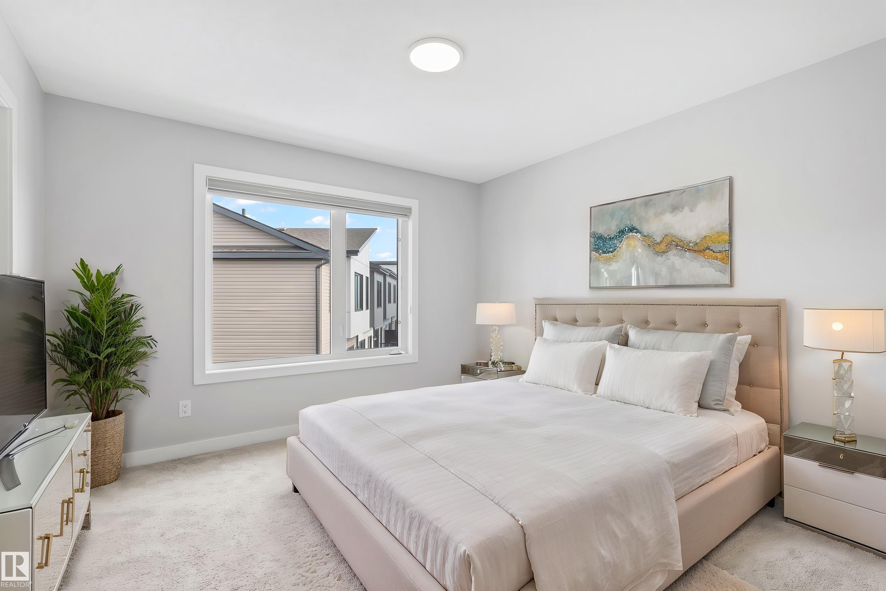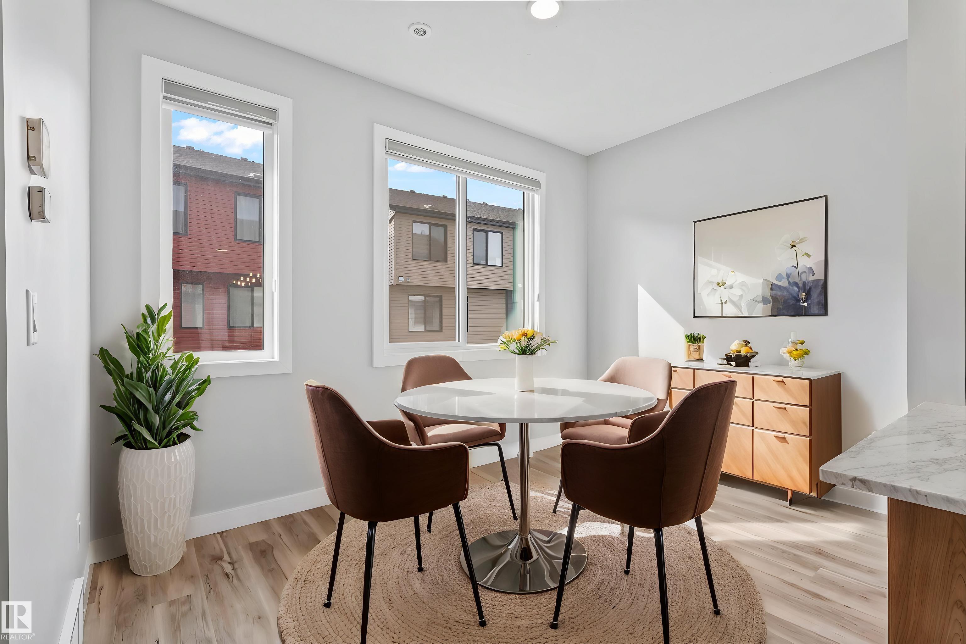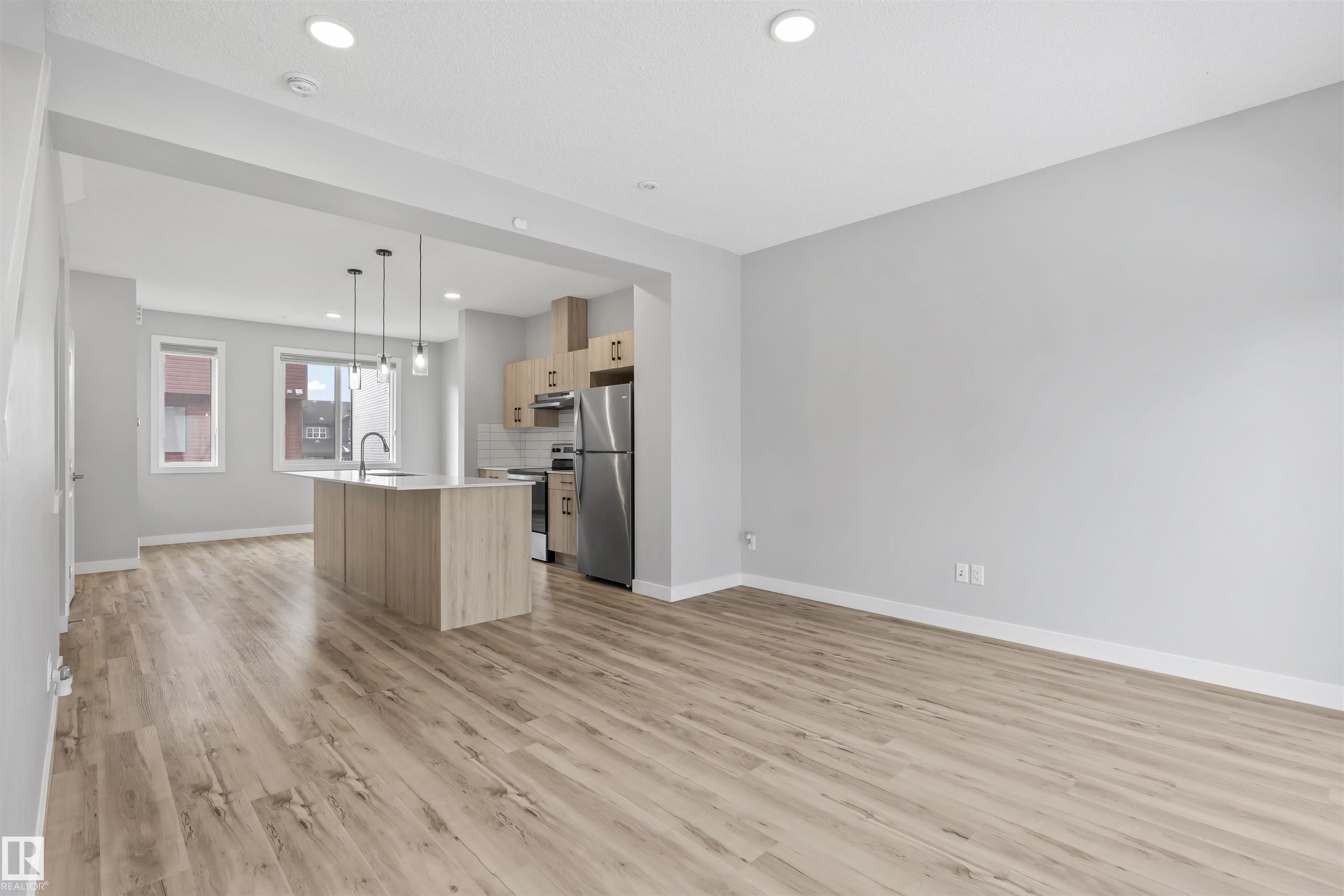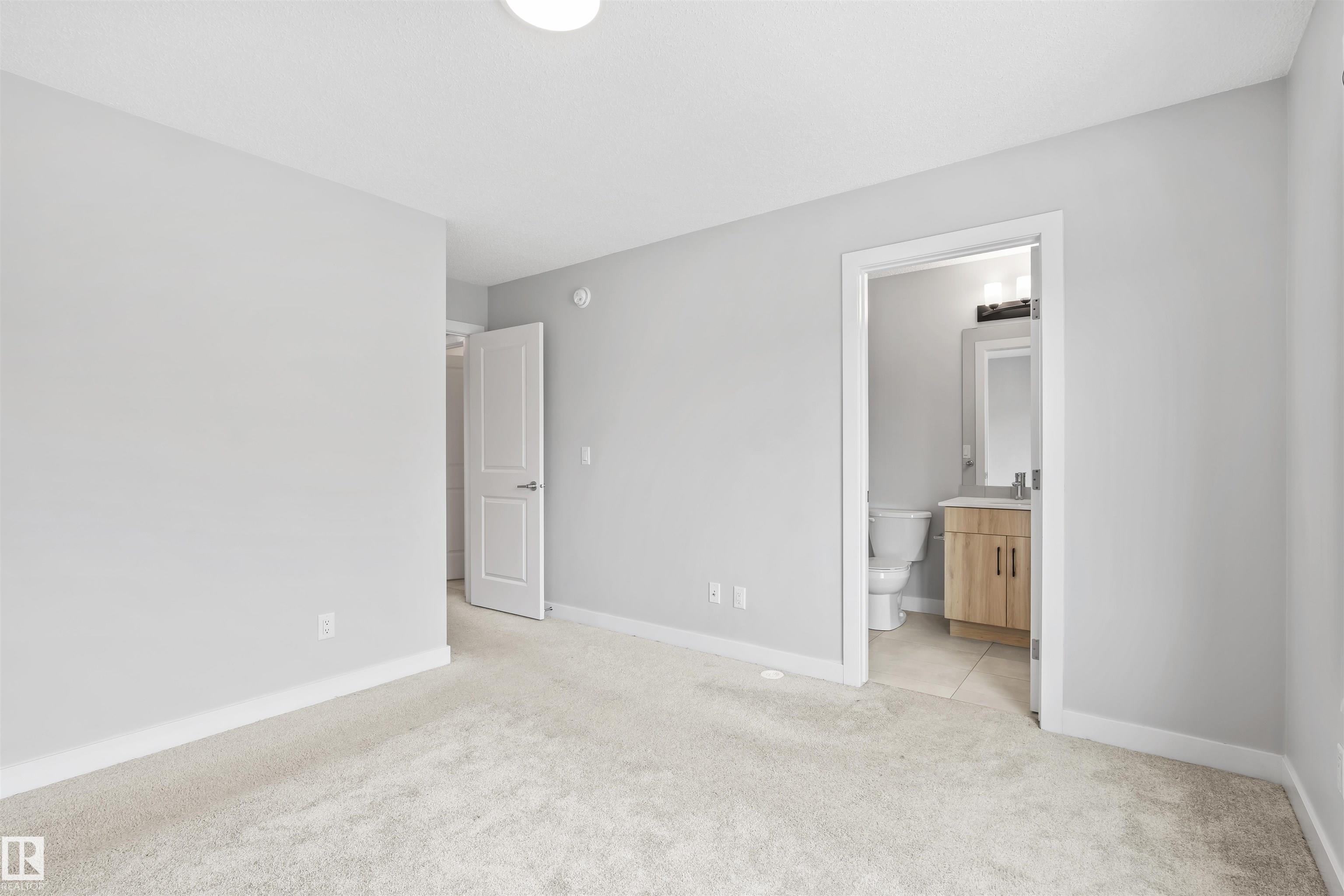 Move-in-ready townhome offering modern comfort and exceptional value. Featuring over 1500 sq ft, 3 bedrooms, 2.5 bathrooms, and a versatile main-floor den. The bright, open-concept main floor is the heart of the home, showcasing a huge island, quartz countertops, and stainless steel appliances. The seamless flow between the dining and living areas creates an inviting atmosphere, while the private balcony is ideal for summer days. Upstairs, the spacious primary bedroom offers a private retreat with its own ensuite and walk-in closet. Two additional bedrooms, a linen closet, and convenient upstairs laundry add to the home's functional design.Enjoy the added benefits of a double-attached garage and a low condo fee. Location is unbeatable, within walking distance of Dr. Anne Anderson High School and just seconds from Heritage Valley shopping center and other amenities. With easy access to major highways and the airport, commuting is easy. IMMEDIATE POSSESSION, some images are virtually staged. PRICED TO SELL!