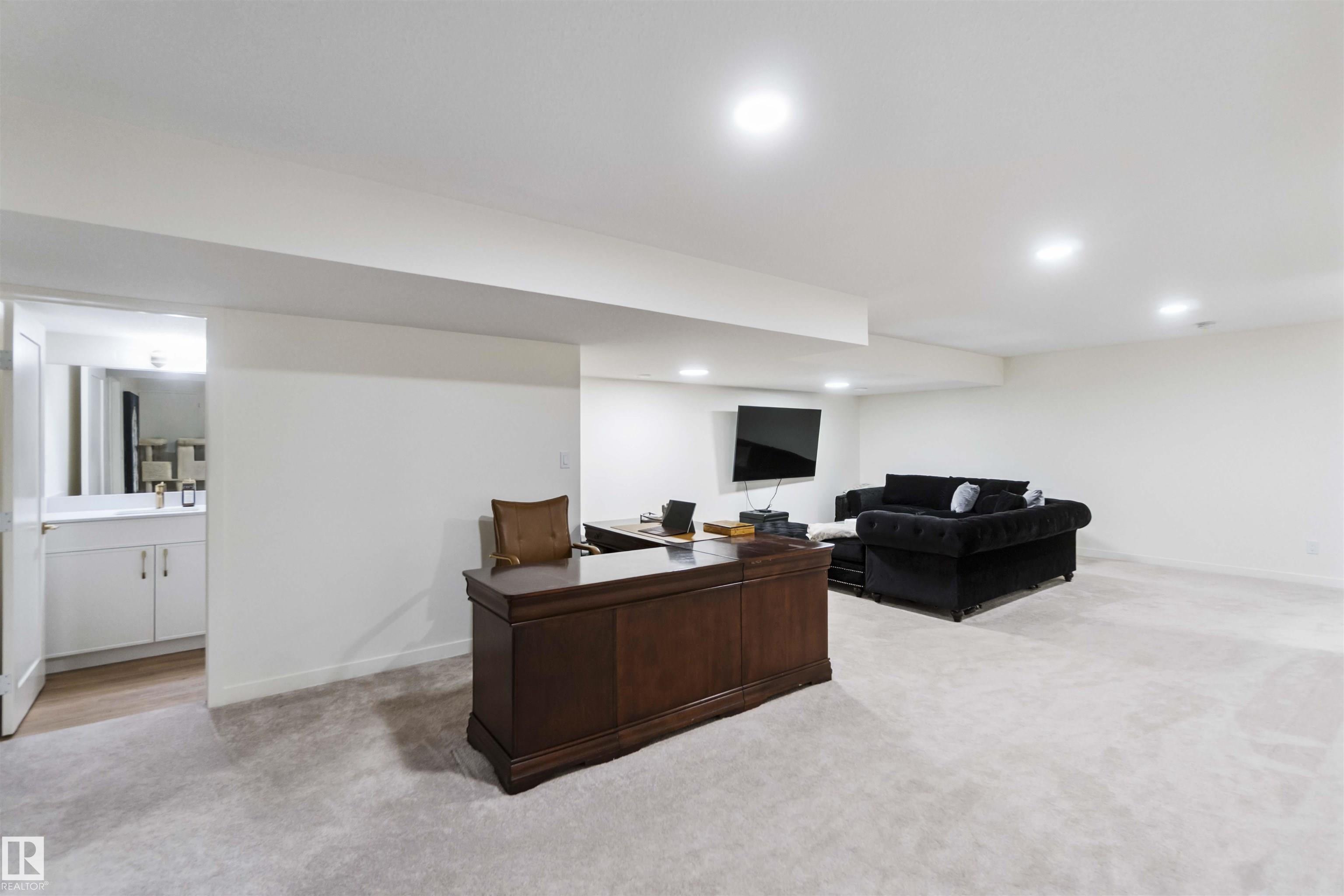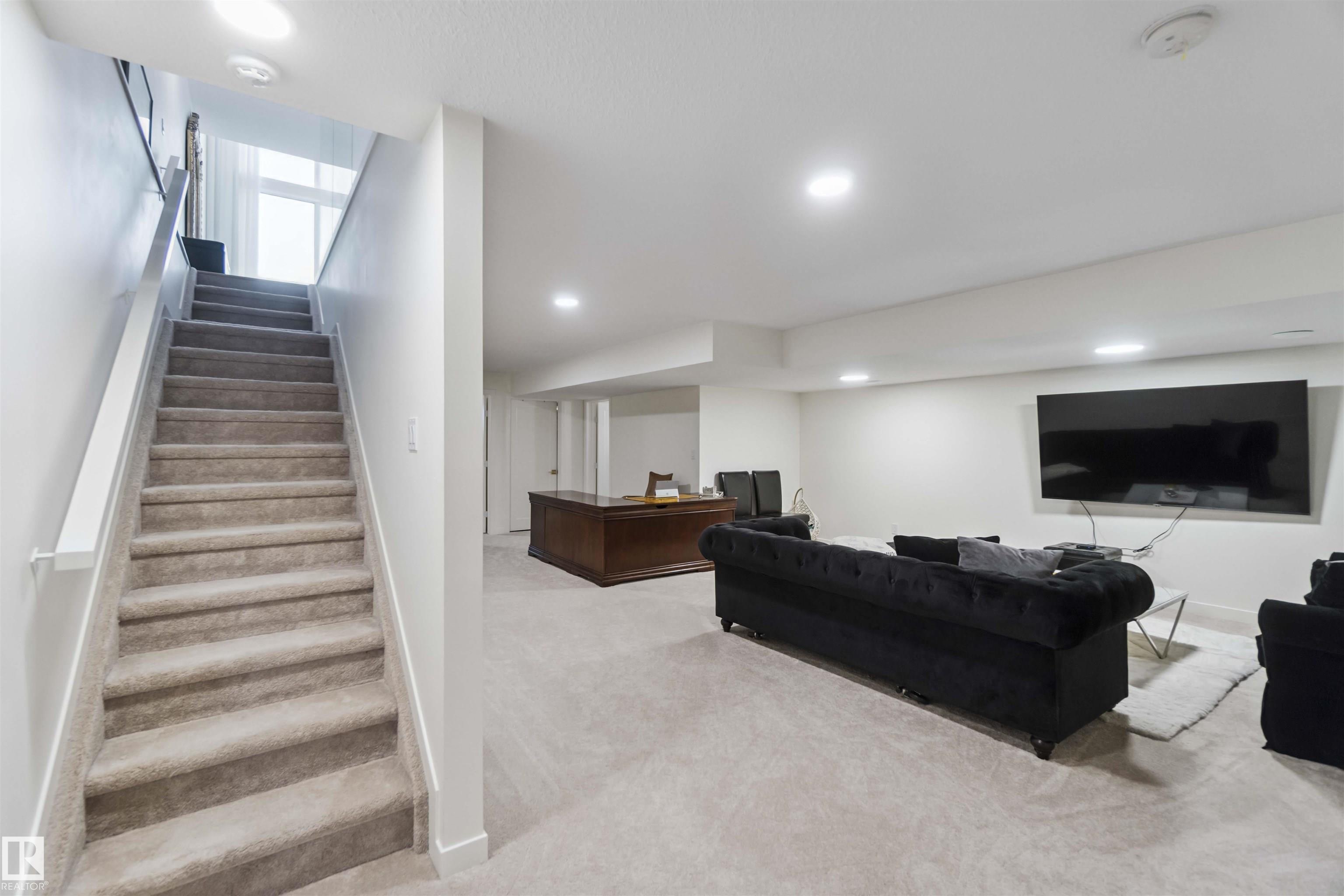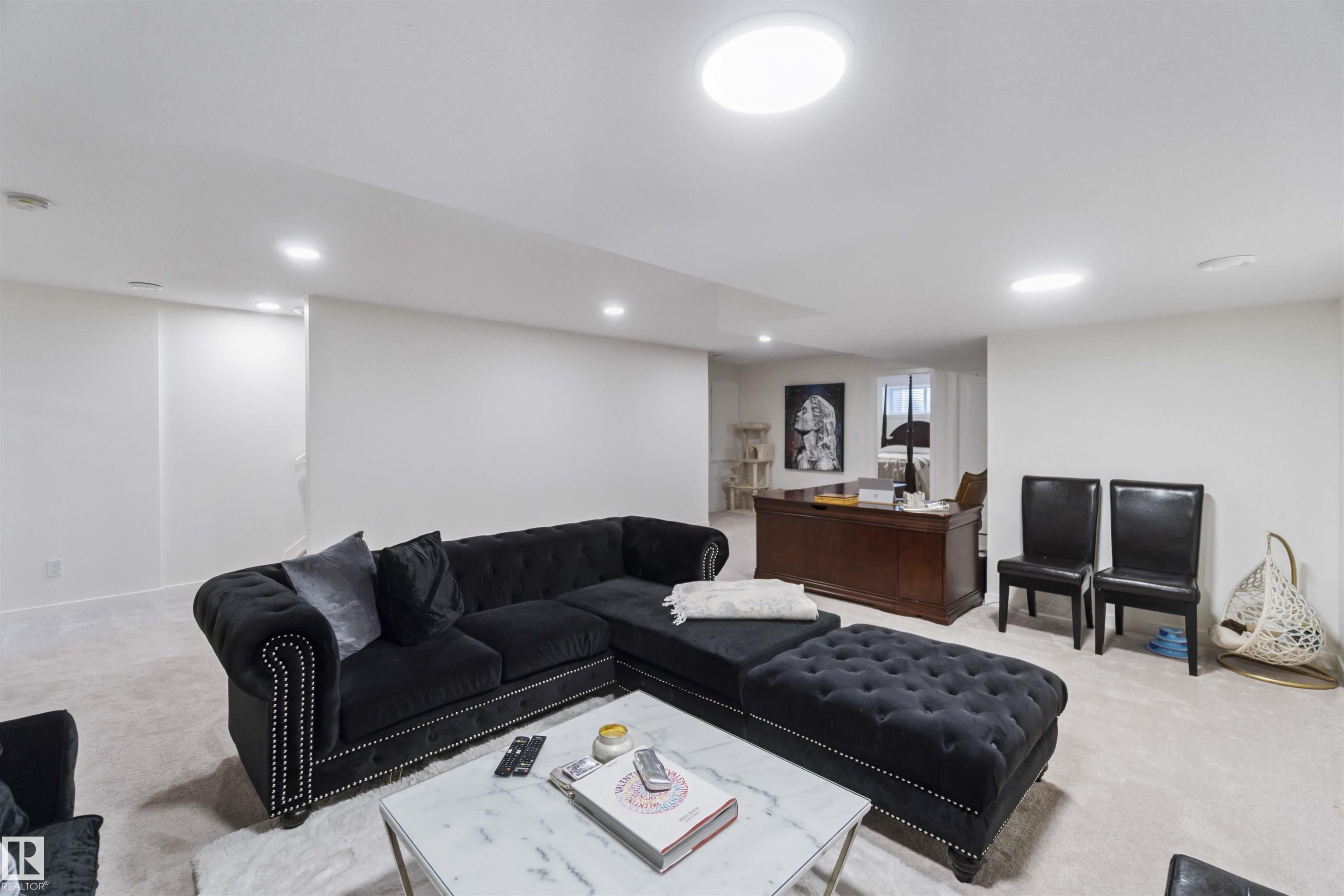 FULLY FINISHED BASEMENT! This modern 2-storey home by Cantiro is located in the sought-after community of Keswick! Offering 4 beds, 3.5 baths & over 3400 sqft of finished living space, this home is built for ENTERTAINING. The main level features a spacious dining area, a large pantry with built-in coffee bar, & a chef's DREAM kitchen equipped with stainless steel appliances, granite counters & crisp white cabinetry. Stylish LVP flooring & a soft neutral colour scheme enhance the design. A bright loft with open-to-below adds volume upstairs, along with 3 bedrooms including a spa-like 5pc ensuite & an additional full 4pc bath. Stay comfortable year-round with CENTRAL A/C. The fully finished basement includes a 4th bedroom & a 4pc bath. Enjoy low-maintenance outdoor living with artificial turf landscaping. The double attached garage includes a 220V EV charger and a sleek textured ceiling. Close to schools, trails, shopping, and quick access to Anthony Henday & Terwillegar. All this home needs is YOU!