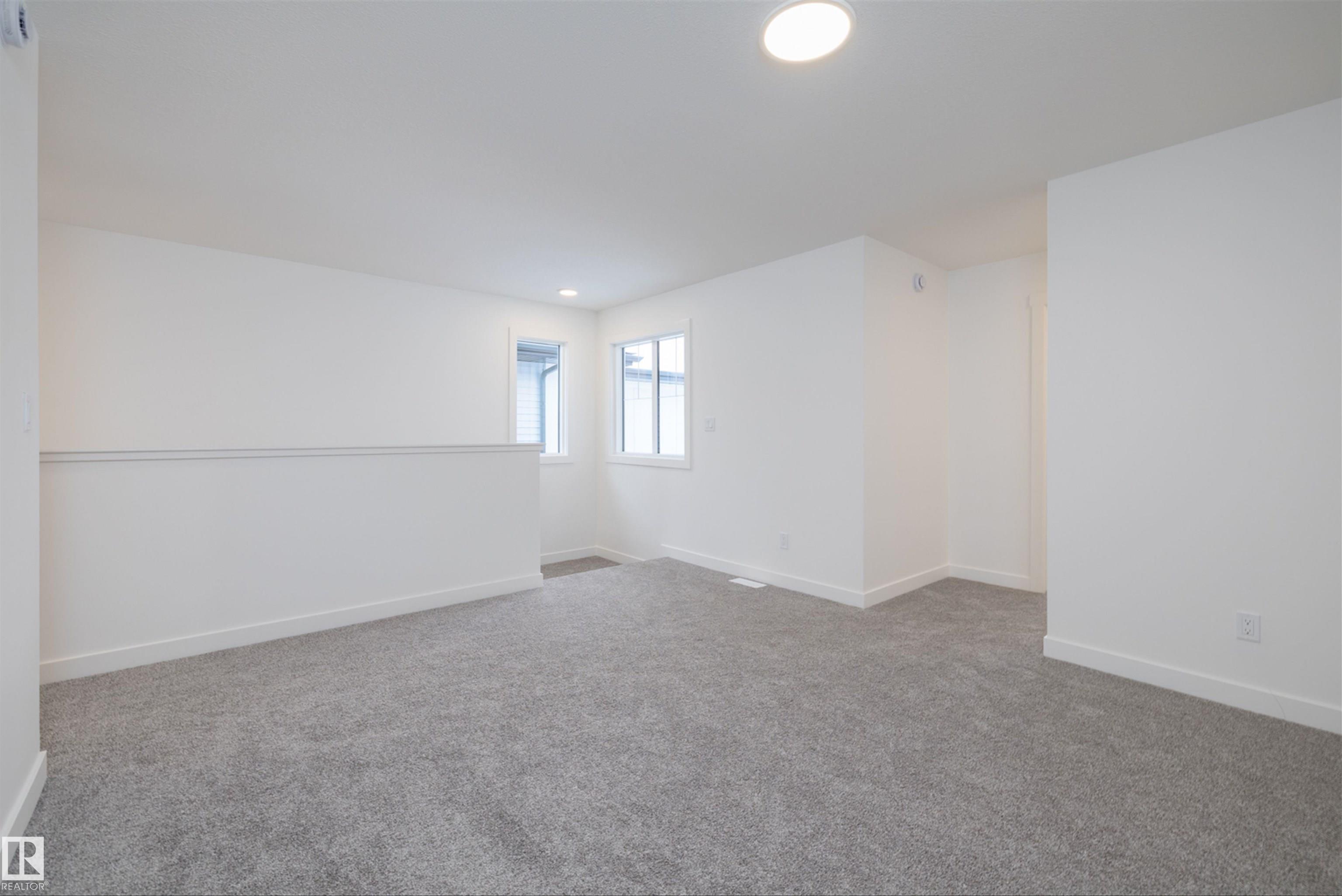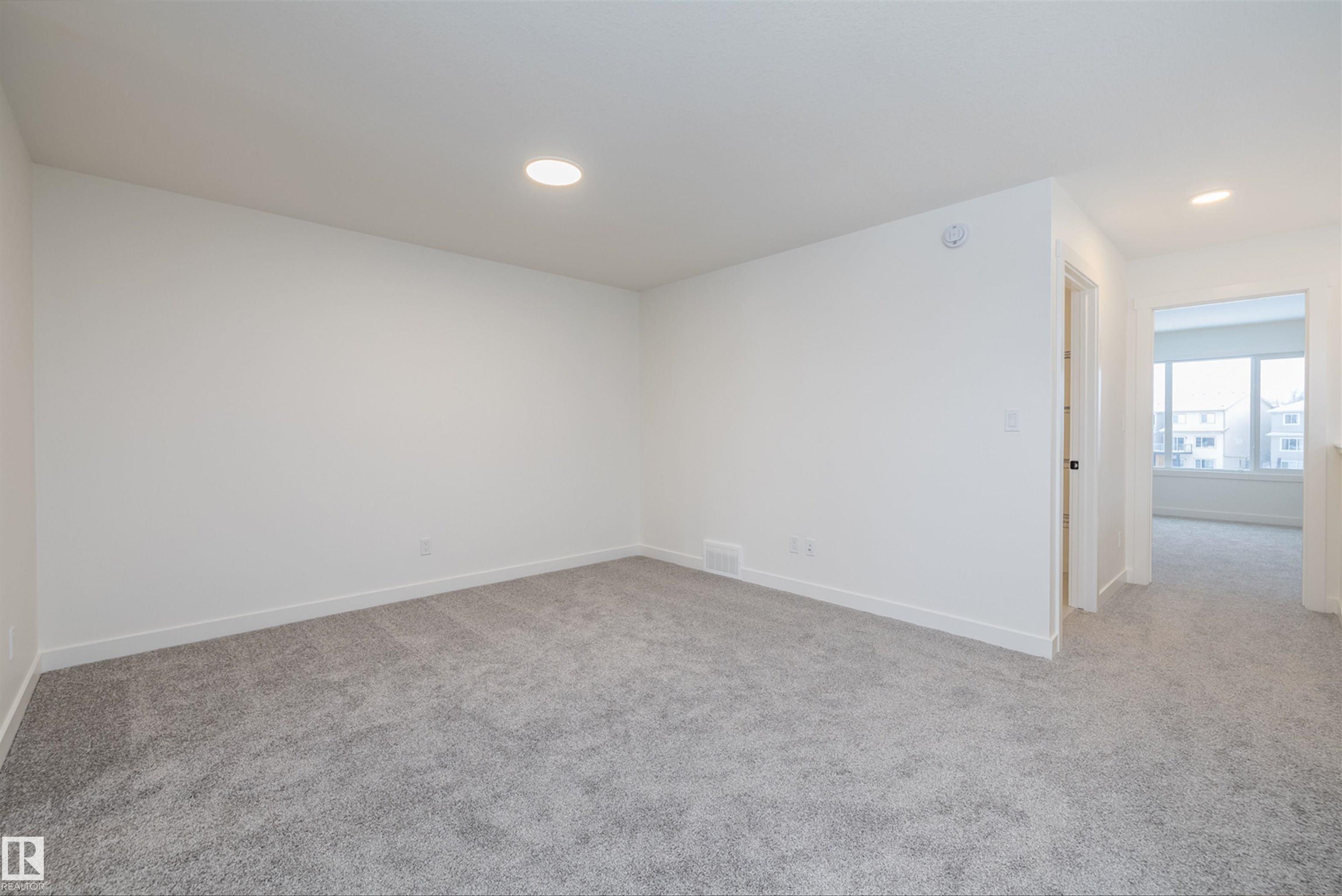 The Charleston offers 2,289 sq. ft. of refined family living, featuring 9' ceilings and Luxury Vinyl Plank flooring. This open-concept layout includes a separate side entrance and a striking kitchen equipped with a massive island, Quartz surfaces, and custom soft-close cabinetry. A standout feature is the oversized walk-in butler's pantry with a prep sink, seamlessly connecting the mudroom to the chef's space. The rear of the home is anchored by a fireplace with a custom surround and expansive windows that overlook the backyard. Upstairs, the primary retreat boasts a 5-piece ensuite with a soaking tub and a walk-in closet that connects directly to the laundry room. A central bonus room serves as a family hub, flanked by two additional bedrooms with private walk-in closets. Finished with matte black plumbing and lighting fixtures, this home combines practical storage with high-end style.
