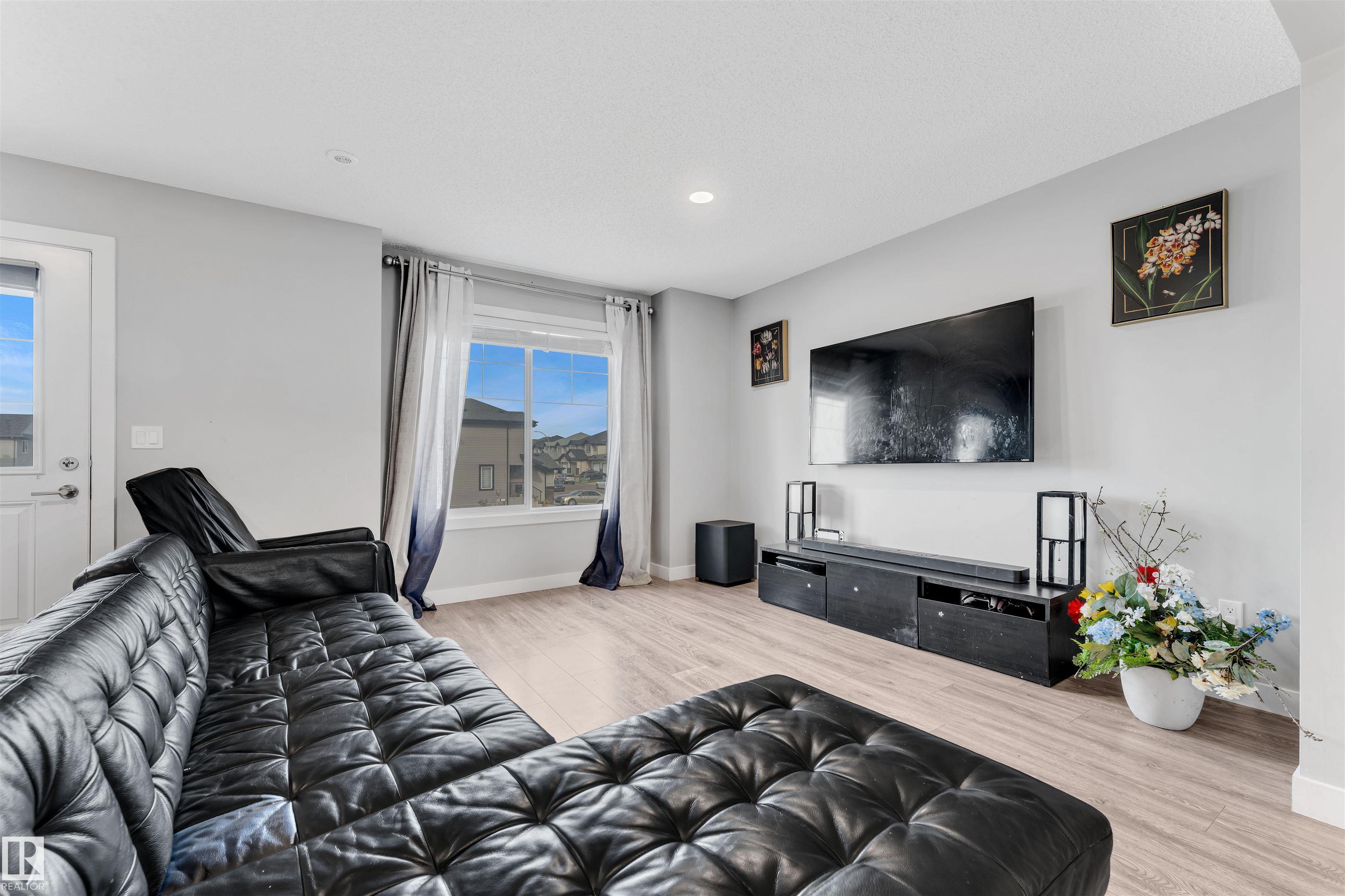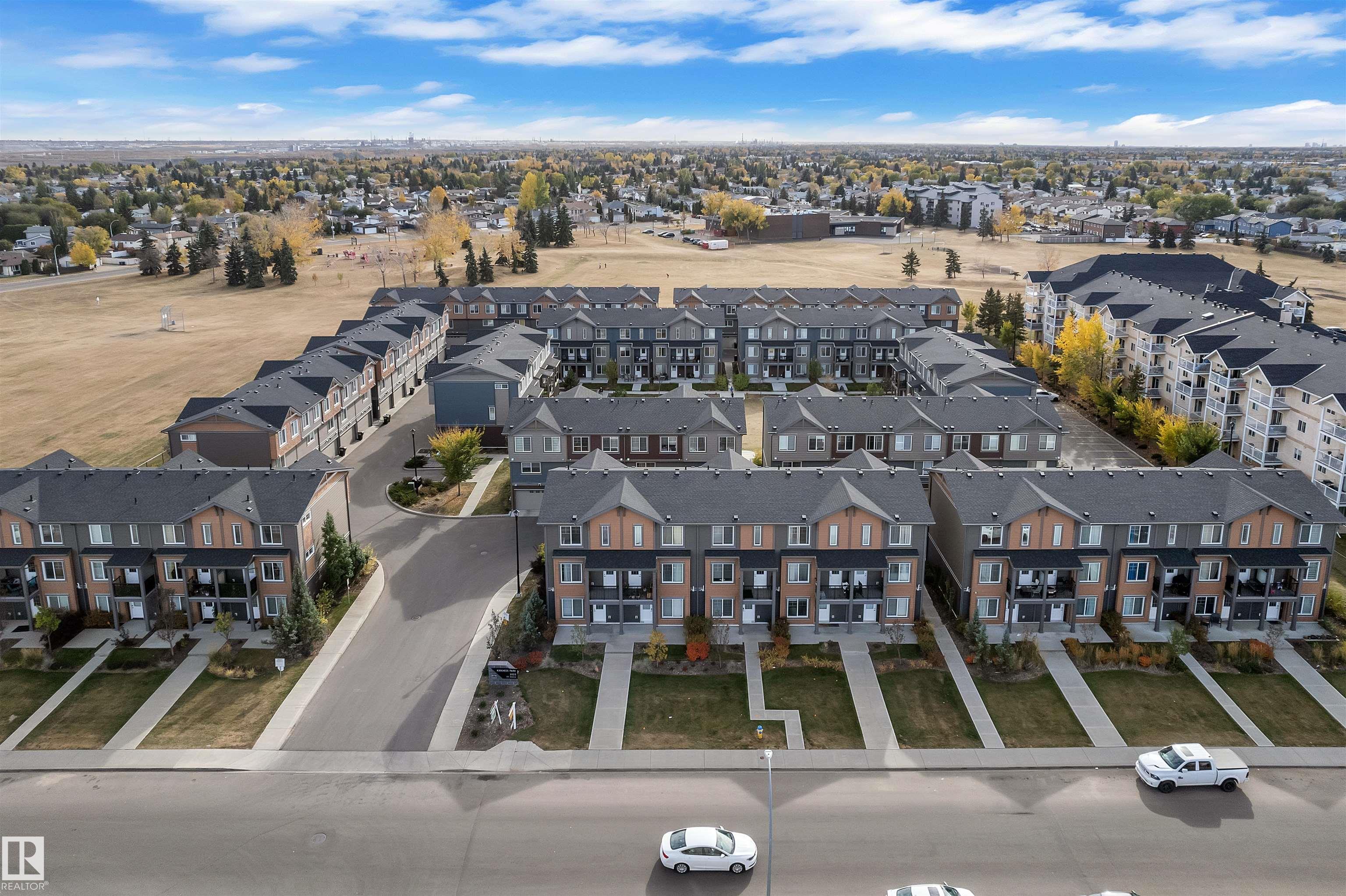 Discover this Landmark Master Builder Home on the Park -- a beautifully designed residence that blends comfort, convenience, and modern luxury. Featuring a double attached garage, 3 spacious bedrooms plus a versatile den, and 2.5 bathrooms including a private ensuite, this home offers the perfect layout for both families and professionals. The gourmet chef's kitchen is a showstopper, complete with quartz countertops and premium finishes, while the look-out balcony provides a serene outdoor retreat. Set in a prime location, you'll enjoy easy access to transit and major highways leading to Fort Saskatchewan, Sherwood Park, and St. Albert. A short drive south connects you to Hwy 216 and scenic routes, while the nearby Fraser Ravine, River Valley, and Manning Town Centre bring nature, shopping, and entertainment to your doorstep. Immerse yourself in the lifestyle of the North, surrounded by lush natural beauty, Raven Crest Golf & Country Club, and Edmonton's premier swimming facilities, all just minutes away.