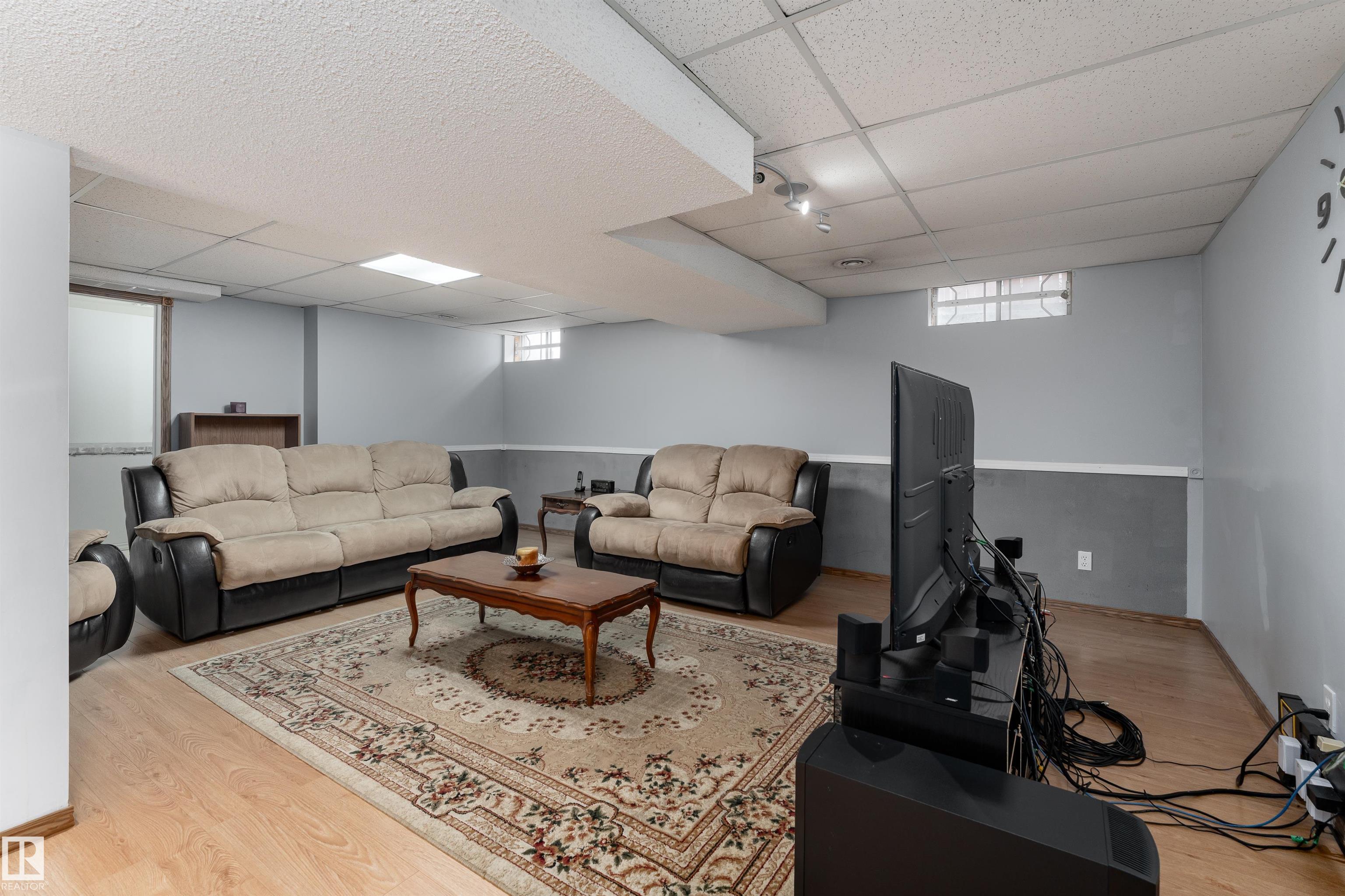 Step into this beautifully cared-for home, where a charming covered front porch offers a warm welcome. The front entrance impresses with an open-to-below design, creating a bright and spacious feel. Inside, you'll find laminate flooring throughout, a cozy wood-burning fireplace, and a large kitchen featuring upgraded quartz countertops, a garbage disposal, and all included appliances. This home offers 4 bedrooms and 3.5 bathrooms, including one with a relaxing jetted tub, plus the convenience of main-floor laundry. Enjoy the oversized insulated garage, a generous deck, and a firepit--perfect for outdoor living--along with well-maintained front and back yards. The fully finished basement adds even more space, complete with a wet bar, a 4-piece bathroom, a bedroom, and ample storage. Ideally located within walking distance to public transportation and just minutes from schools, the LRT station, and shopping. The sellers have clearly taken pride in keeping this property in excellent condition.