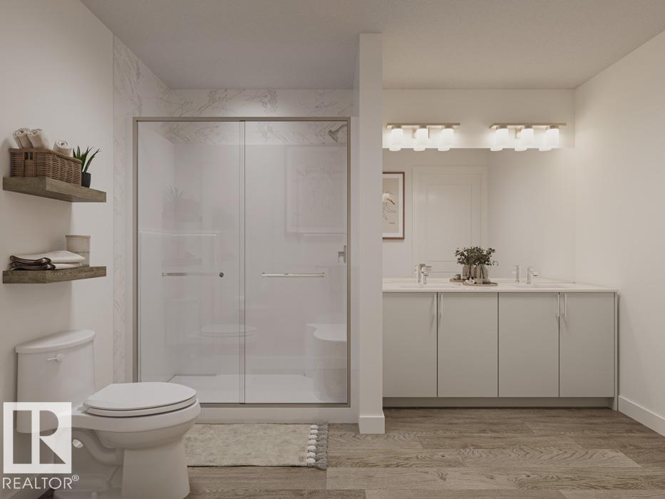 Built by Sterling Homes, this front-attached home in College Woods at Lakeview blends modern design with a serene, tree-lined setting. Triple-pane windows and 9' ceilings brighten the open main floor. The kitchen features quartz countertops, island seating, upgraded cabinetry, chimney hood fan, tile backsplash, and corner pantry. The great room with electric fireplace opens to the backyard. Upstairs, the primary suite offers two walk-in closets and a 4-piece ensuite with double sinks and glass shower, plus a loft, two bedrooms, laundry, side entrance, double garage, and basement rough-ins.