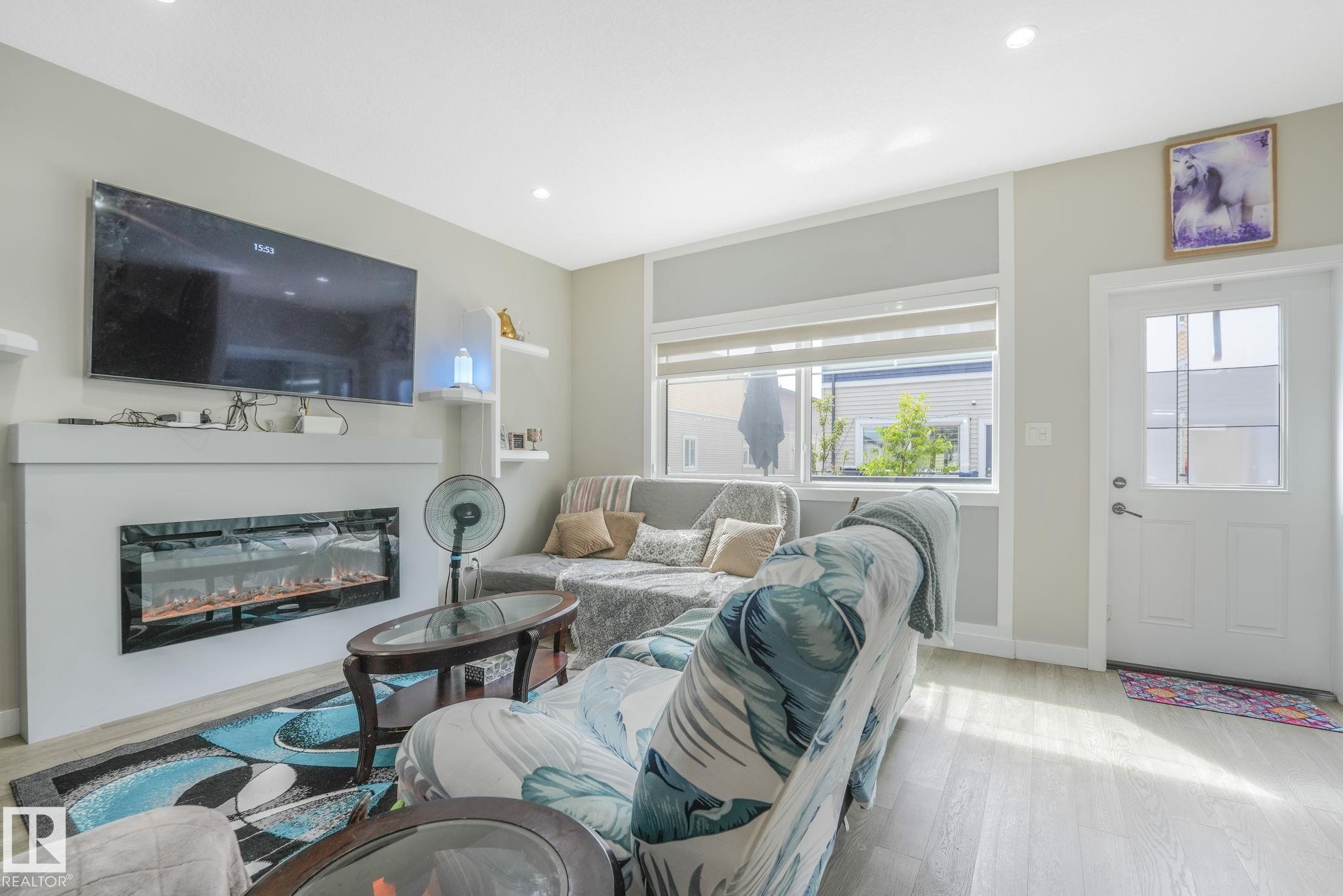 Welcome to Landara in Laurel! This 1,463 + sqft CORNER UNIT townhome offers a bright open floor concept with the living room featuring a modern tile surround fireplace, big windows, a spacious dining area, a contemporary island kitchen w/ lots of cabinetry for storage and stainless steel appliances, a 2-pc bath and office/den in the partial basement that can be used a s a bedroom! The upper floor offers 3 huge bdrms including the Primary bdrm w/ a 4-pc ensuite w/ a soaker tub. The laundry area is conveniently located upstairs! Enjoy the GREEN VIEW from your front patio plus minutes walk to the park and man-made lake! Close to schools, shopping, transportation, parks and playground. This is the perfect home for first time home buyers and a sound investment for those wanting to build their real estate portfolio!