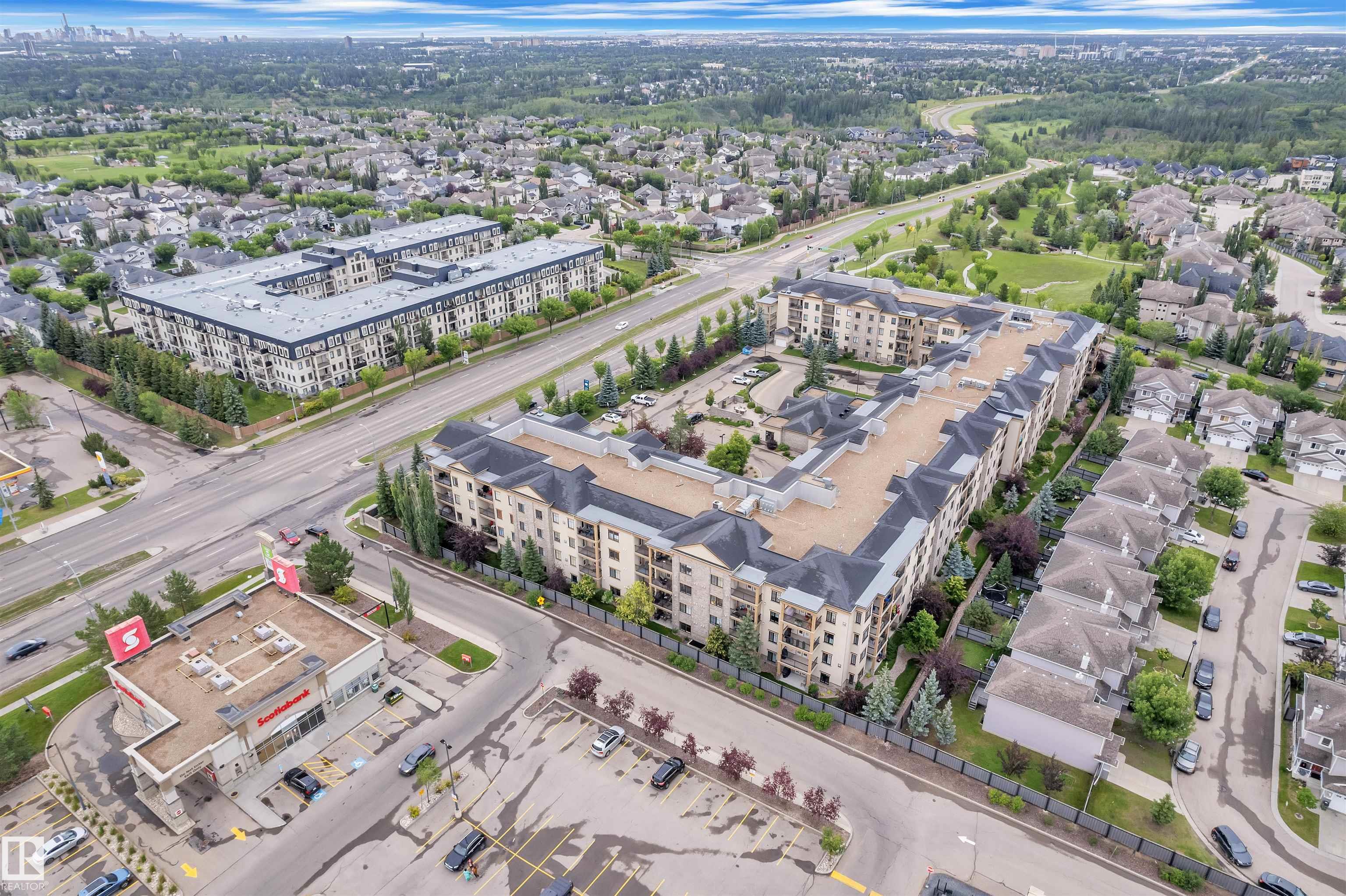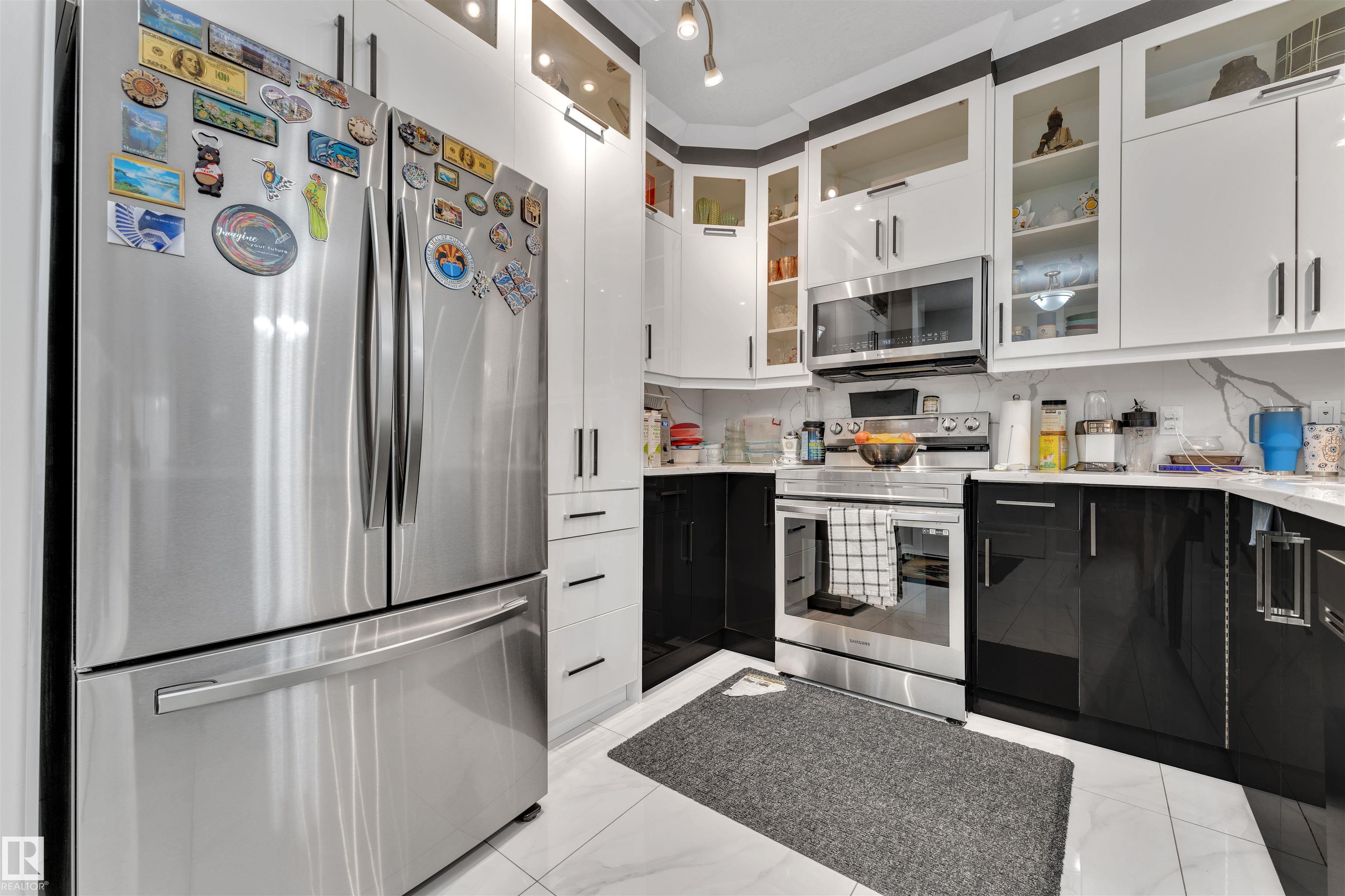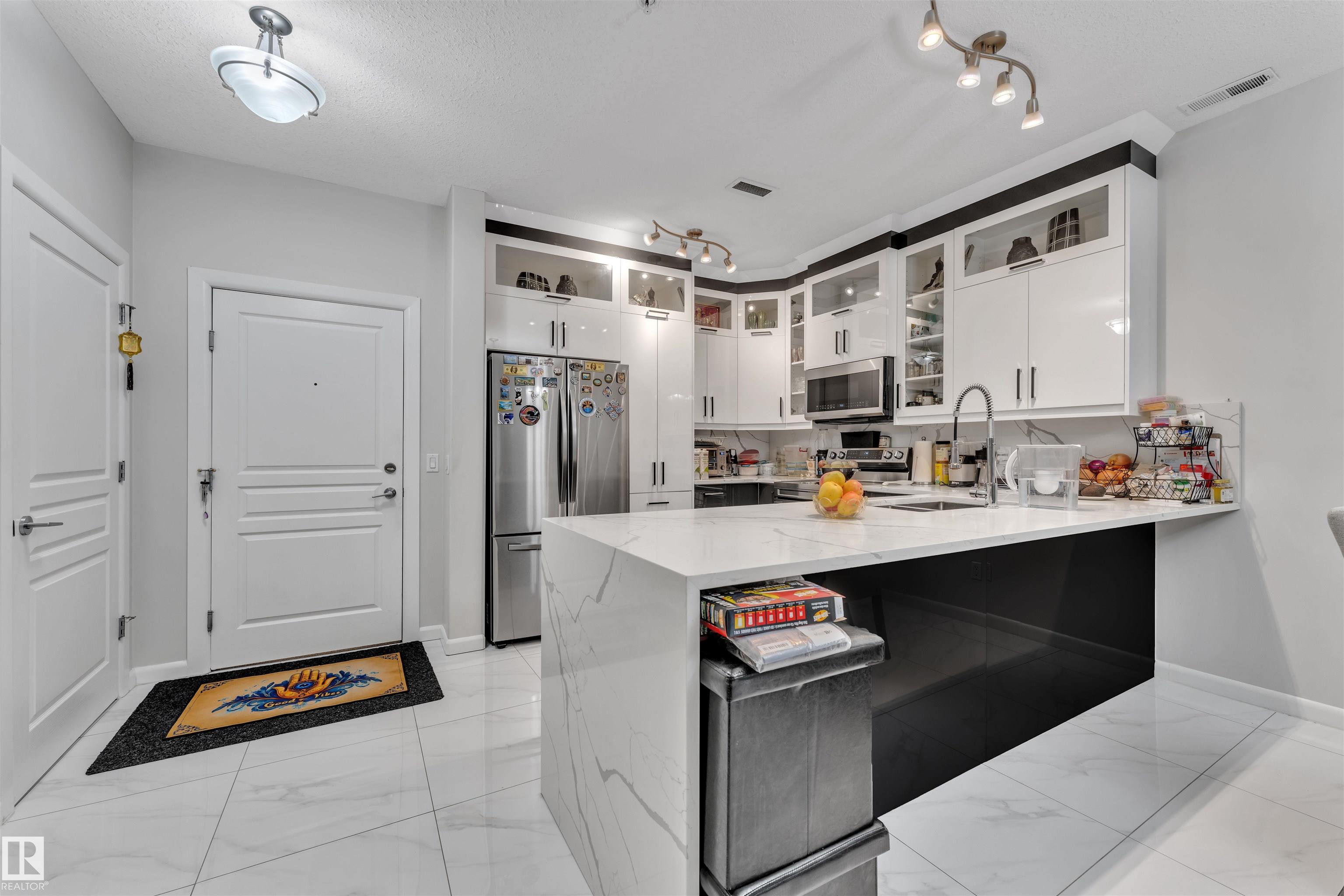 Enjoy your LUXURY LIVING IN MAGRATH MANSION! Located in one of Edmonton's most premium neighbourhoods, this fully renovated 1250+ sq.ft lower-level condo offers over $170,000 in modern upgrades, including elegant full-home tiling and designer wallpapers throughout. Featuring 2 bedrooms + den, 2 bathrooms, an open concept layout with 9 ft ceilings, a modern kitchen with stainless steel appliances, and a spacious primary suite with walk-in closet and stunning ensuite. Enjoy in-suite laundry, a private balcony, and 1 titled underground heated parking stall plus titled storage. This exclusive steel & concrete adult building (18+) features resort-style amenities:: Social/Recreation room with kitchen and book library, Theatre Room, gym with sauna, steam room & hot tub, car wash bay, and outdoor BBQ area. Walking distance to shopping mall (next door), parks, and ravine trails. Perfect for adult living or as an investment - you cannot get a better deal at this price