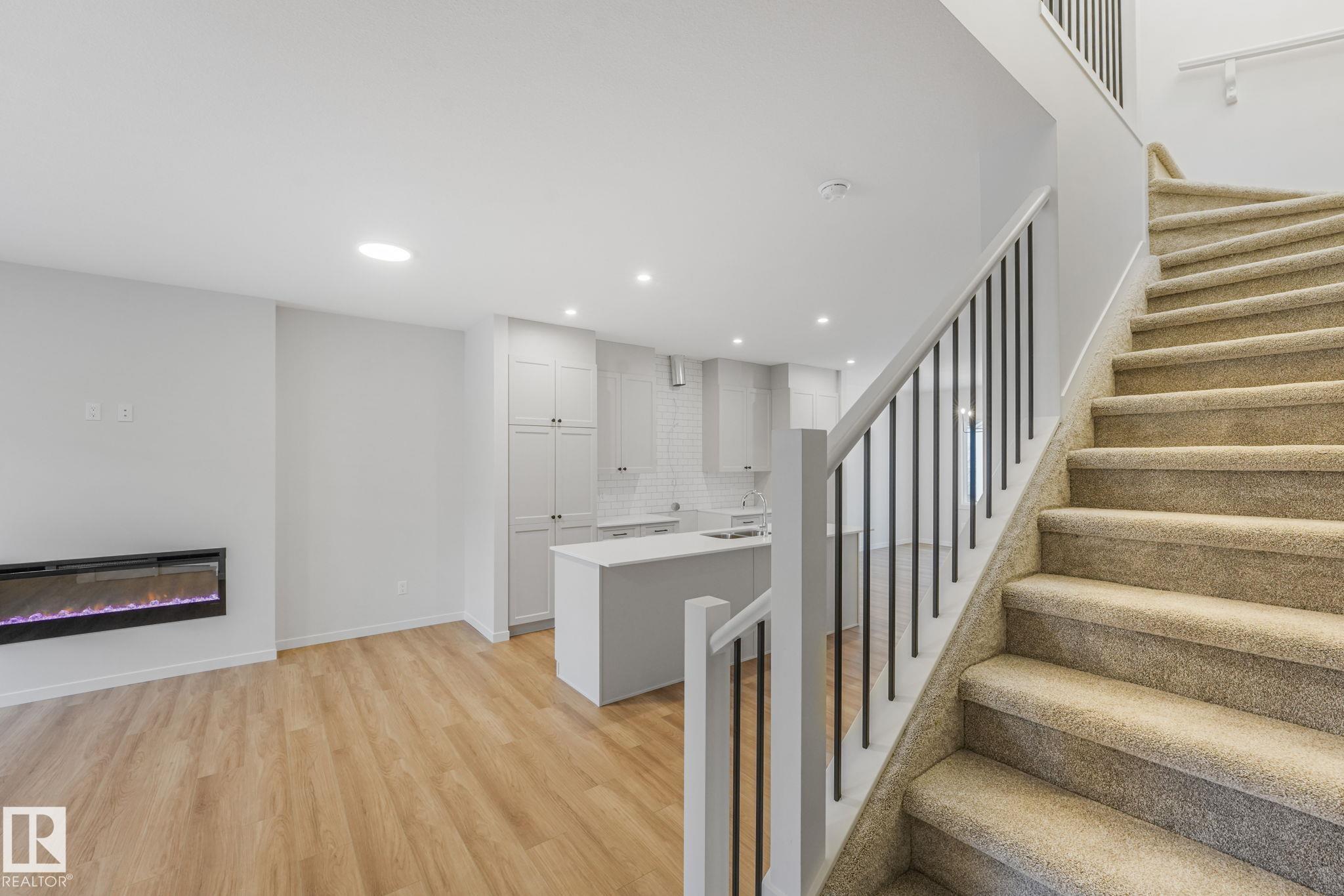 Offering 1,671 sq. ft. of thoughtfully designed living space, this home features 9-foot ceilings and a bright open-concept main floor. The modern kitchen showcases quartz countertops, a tiled backsplash, and a spacious island overlooking the living and dining areas, complete with an electric fireplace--perfect for everyday living and entertaining. Upstairs, you'll find a spacious primary suite with a walk-in closet and private ensuite, along with two additional bedrooms, a full bathroom, a versatile loft space, and convenient upper-floor laundry. The basement includes a separate side entrance and offers excellent future development potential.