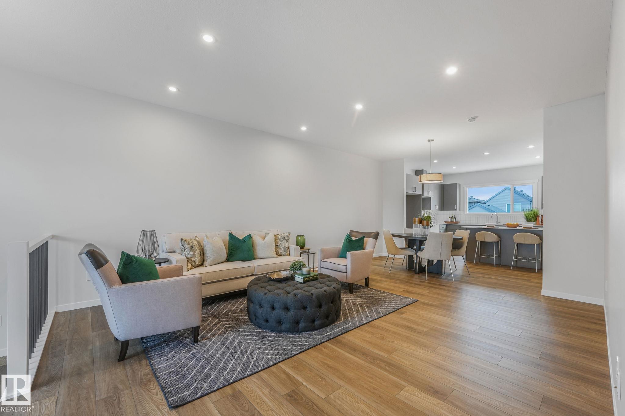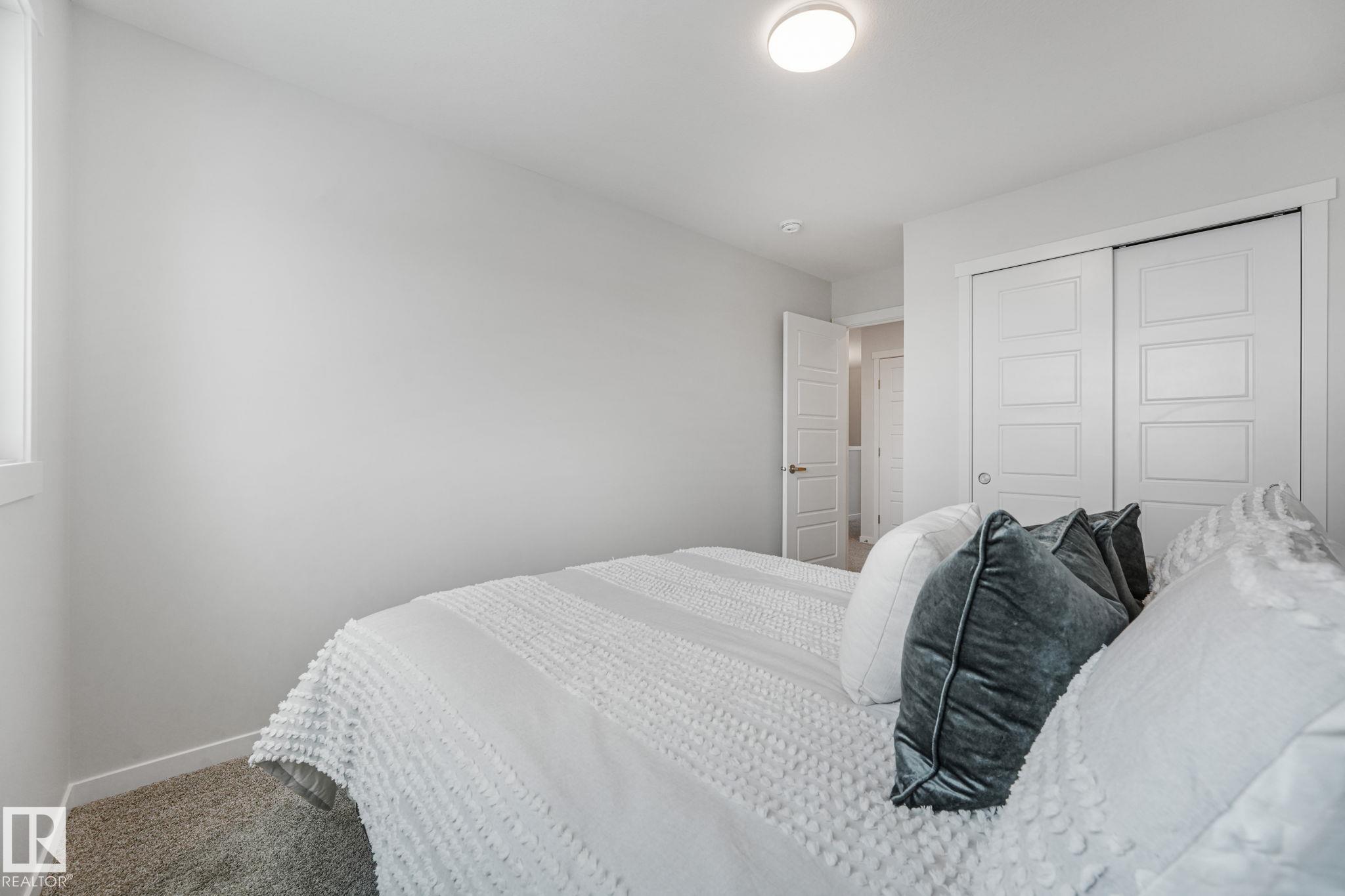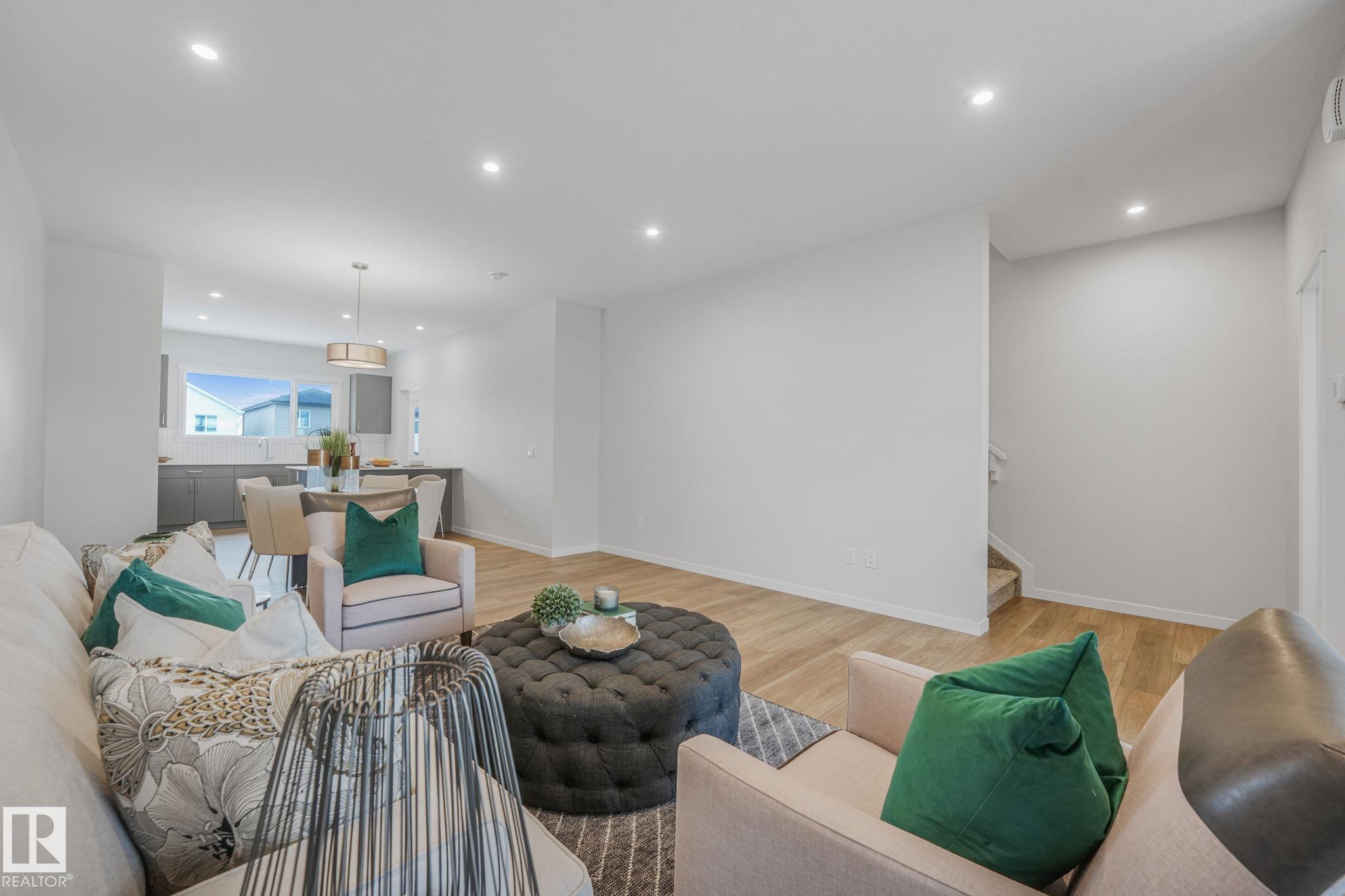 Beautifully designed modern farmhouse perfect for growing families. offering 1,632 sq. ft. of comfortable living space. The main floor features 9-foot ceilings and a bright open layout with a spacious living room, dining area, and functional kitchen with plenty of cabinets and an eating bar. Upstairs includes a large primary bedroom with walk-in closet and ensuite, plus two additional bedrooms, a full bathroom, and convenient upper-floor laundry. The unfinished basement with rough-in plumbing offers great future potential. Built with quality and backed by the Alberta New Home Warranty Program.