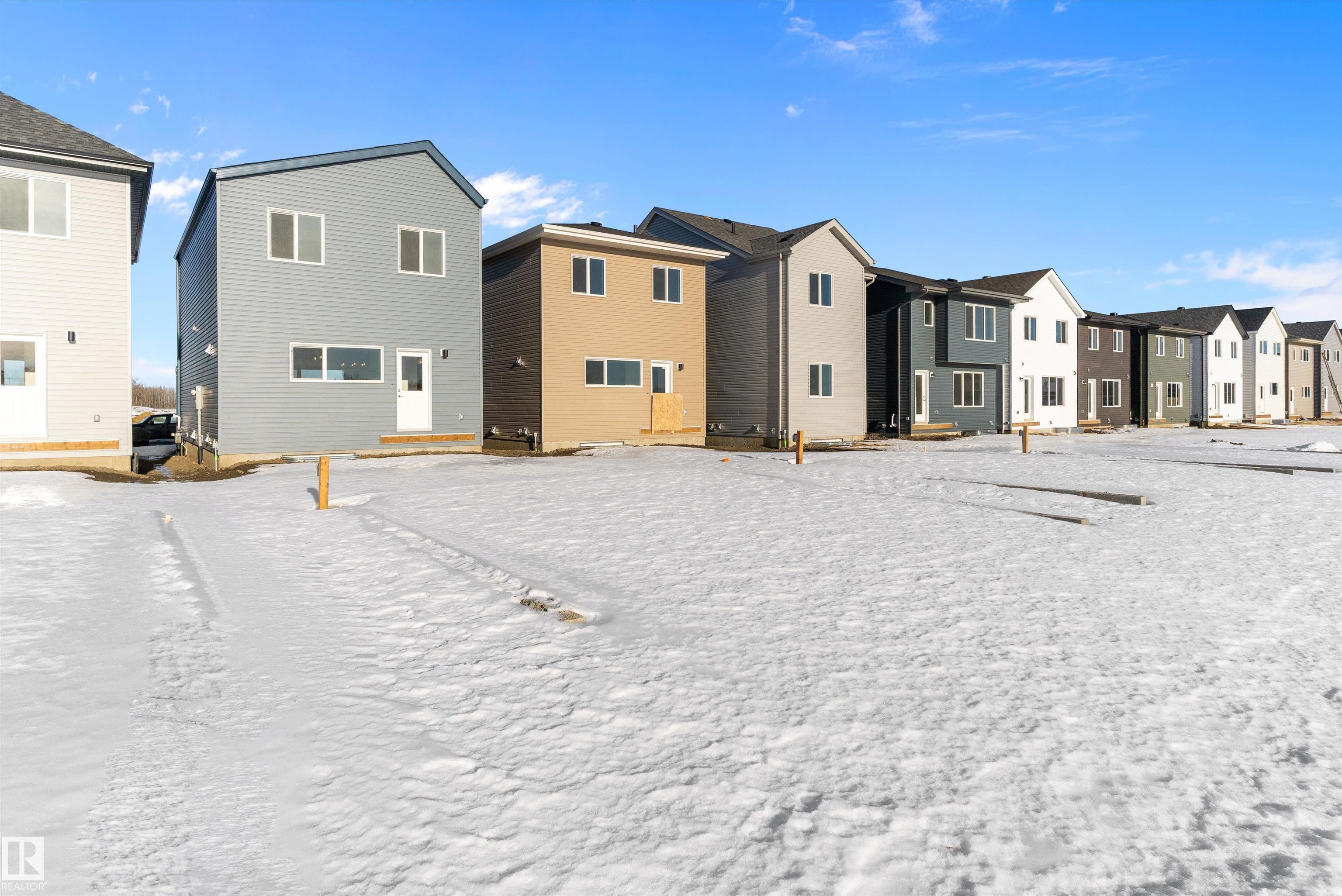 Built by Sterling Homes, this bright laned home in McConachie offers a warm, family-friendly layout with thoughtful spaces throughout. A sun-filled front living room creates an inviting start, leading into a rear kitchen with quartz counters, a Silgranit sink, upgraded cabinetry, and a pantry. The dining area overlooks the backyard, with a half bath and rear entry tucked conveniently nearby. Upstairs, an open loft adds flexible space for work or play. The primary suite features a walk-in closet and a 3-piece ensuite with a glass-door shower. Two additional bedrooms, a full bath, and upper-floor laundry complete the level. With luxury vinyl plank flooring, black fixtures, a separate side entrance, upgraded railings, a backyard parking pad, and basement rough-ins, this home delivers comfort and value in a growing northeast community.