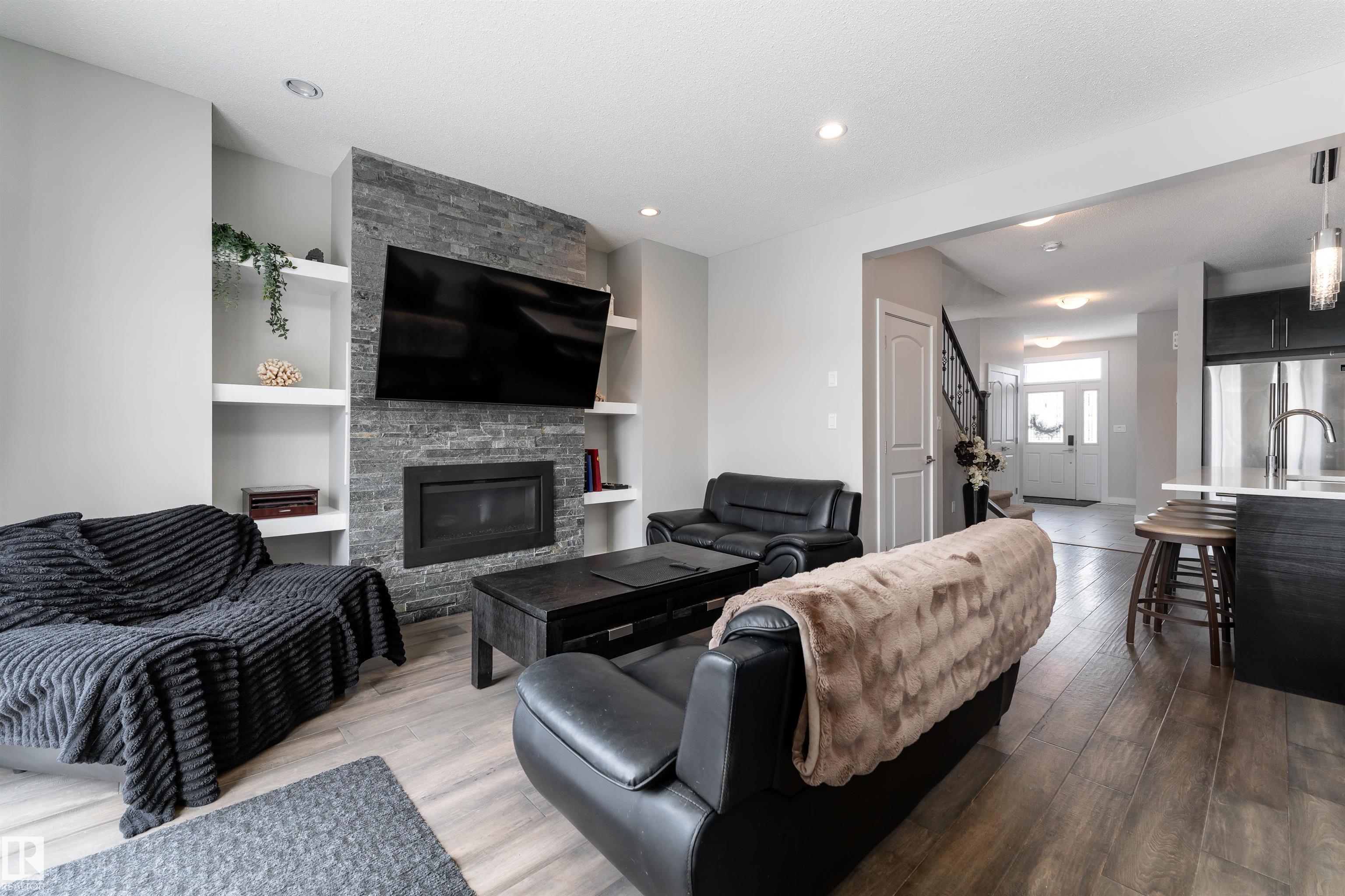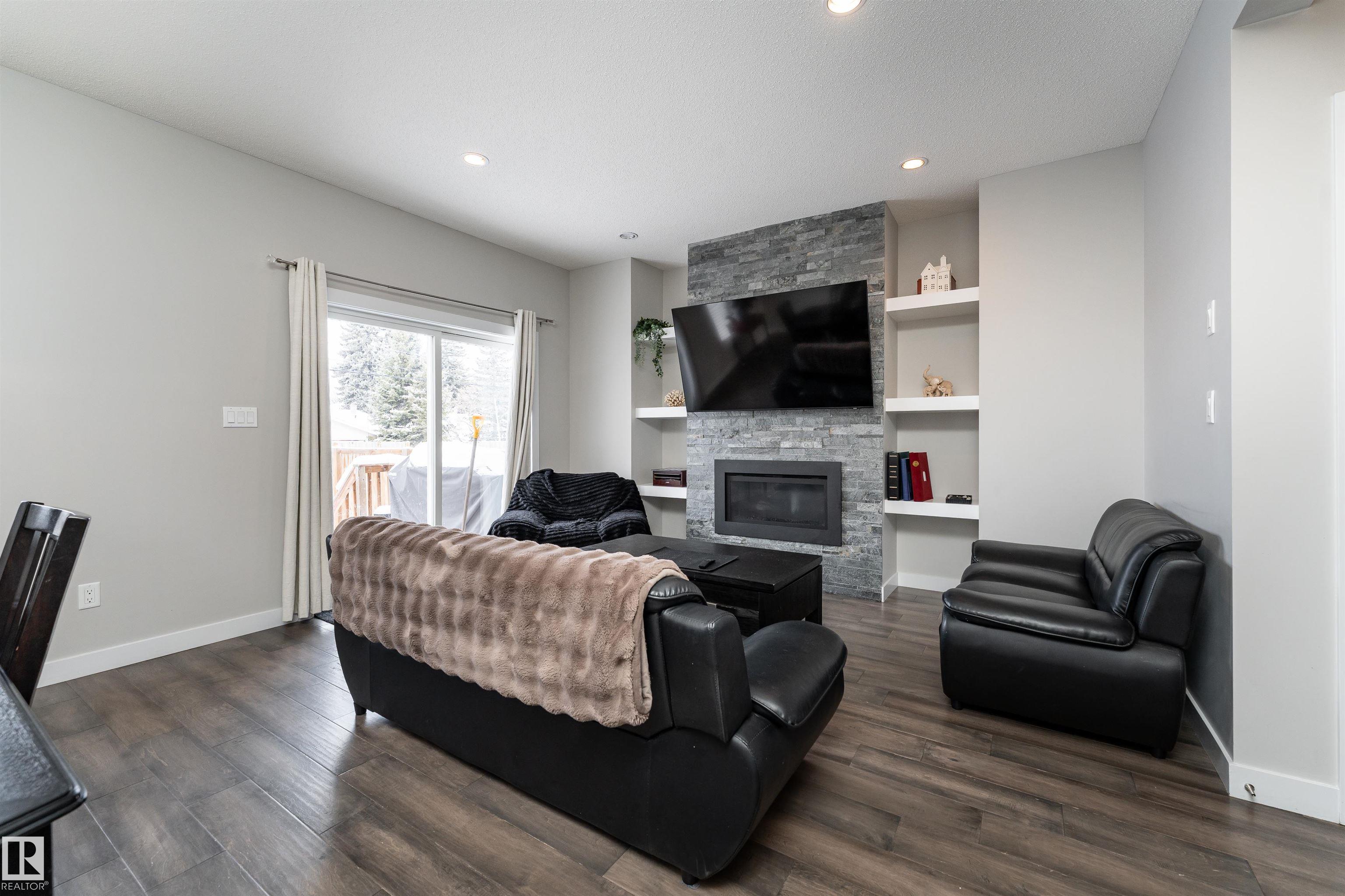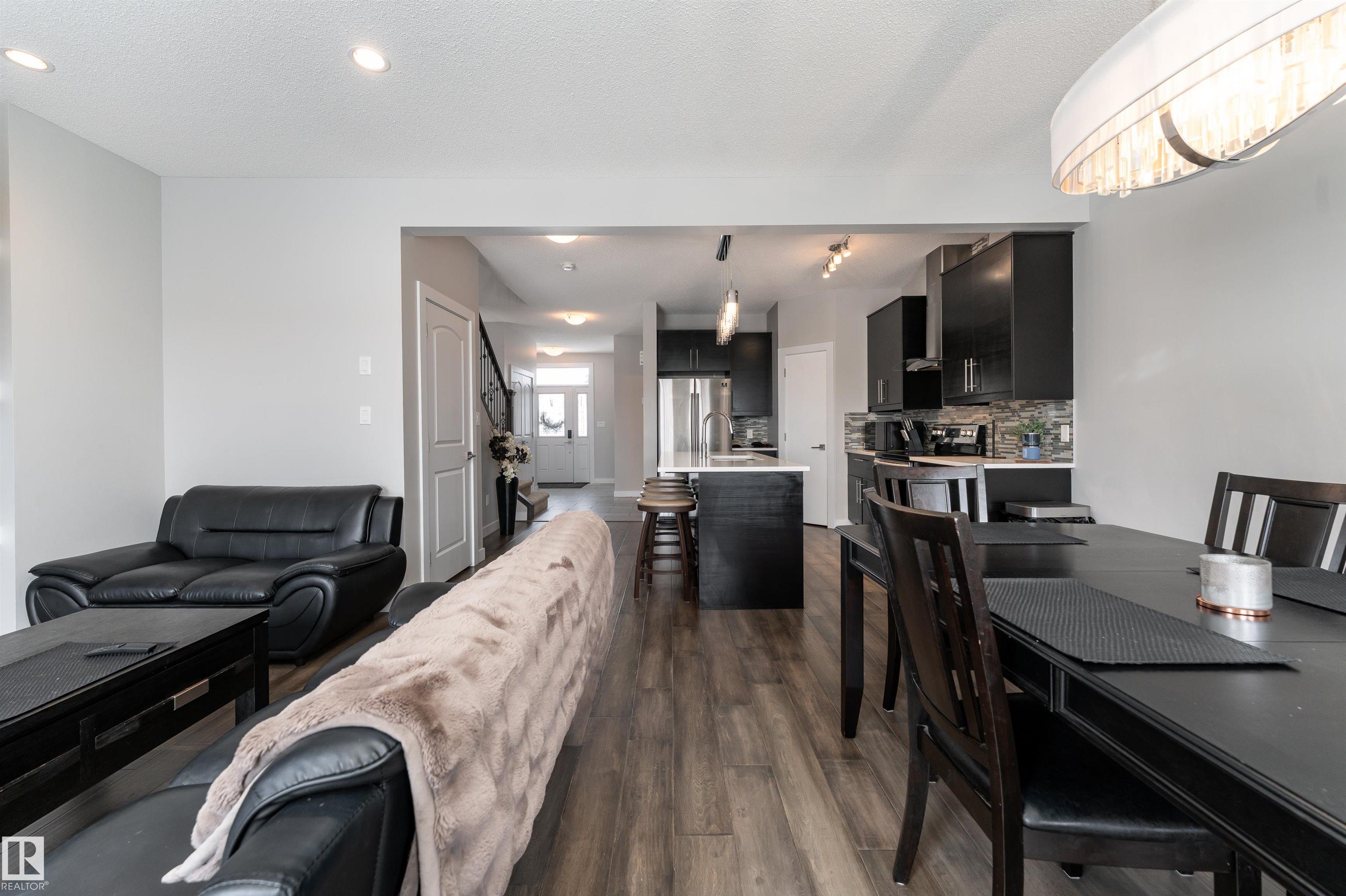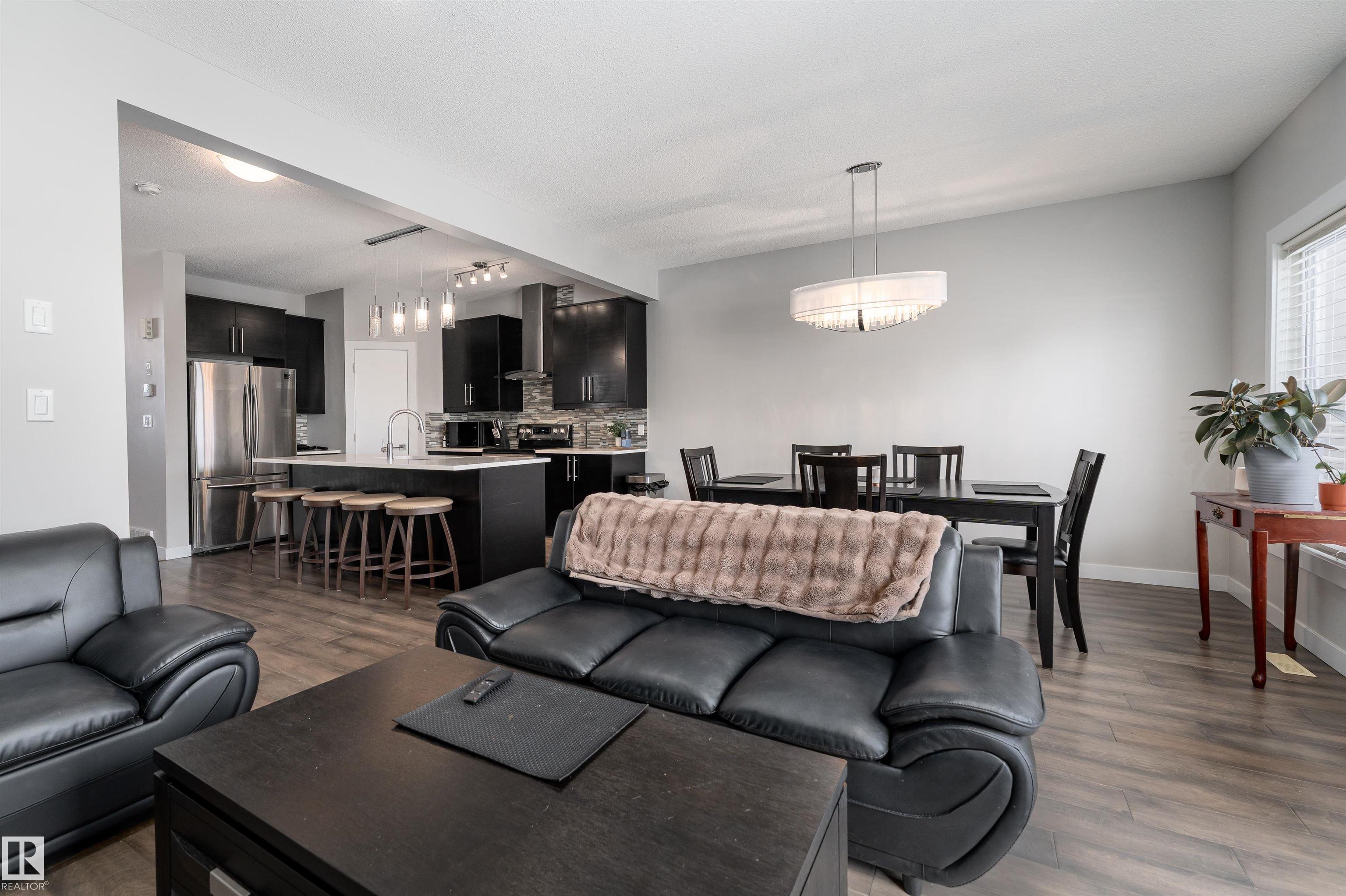 Discover this beautifully designed 2-storey half duplex in Prince Charles, offering a clean, sophisticated, and warm interior finished in timeless white and beige tones.The main floor welcomes you with a stunning kitchen featuring rich dark brown cabinetry, crisp white countertops, a center island with double sinks, stainless steel appliances, and a pantry for added storage. The living room is filled with natural light, highlighted by a cozy fireplace and direct access to the deck--perfect for indoor-outdoor living. The dining area also enjoys abundant sunlight and views of the yard. A main floor bedroom or office and a 4pc bathroom add flexibility and convenience. Upstairs, you'll find a spacious primary bedroom complete with a walk-in closet and a luxurious 5pc ensuite. Two additional bedrooms, another 4pc bathroom, and a dedicated laundry area complete the upper level. Step outside to enjoy the private yard and deck--ideal for summer gatherings--along with the convenience of a double detached garage